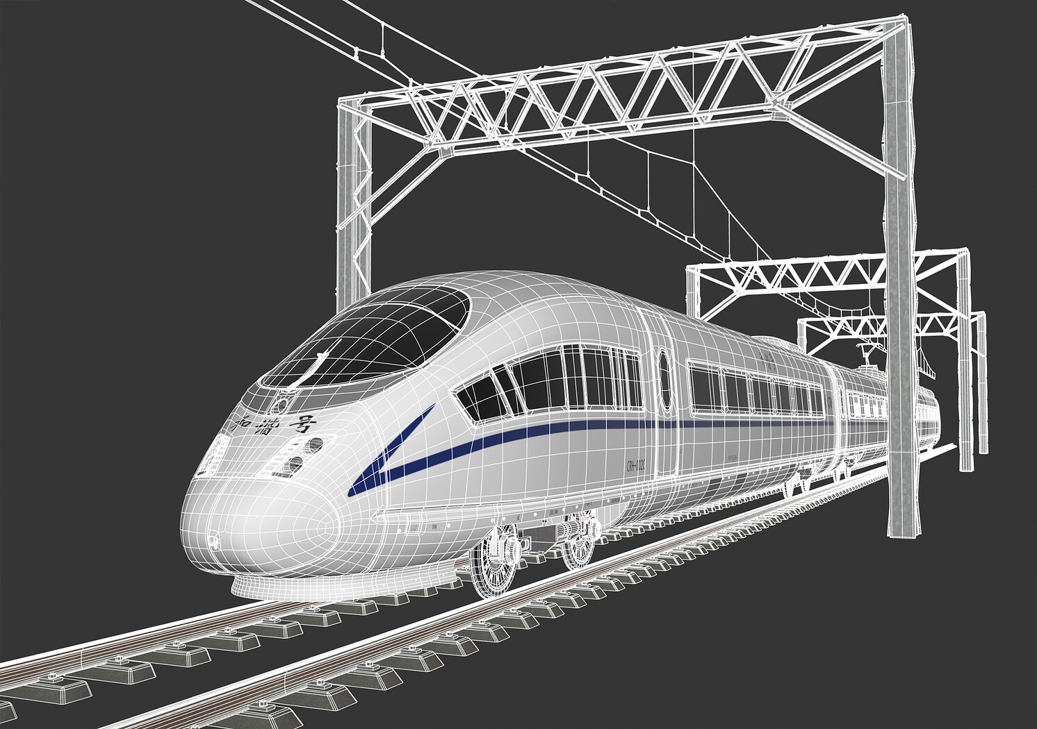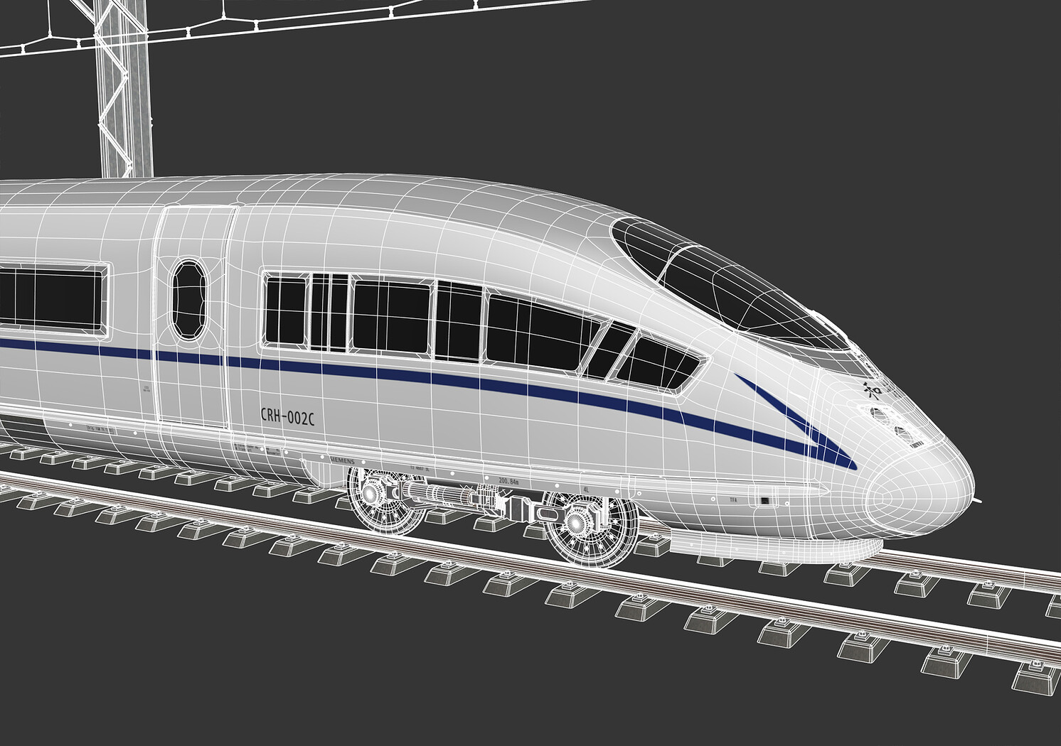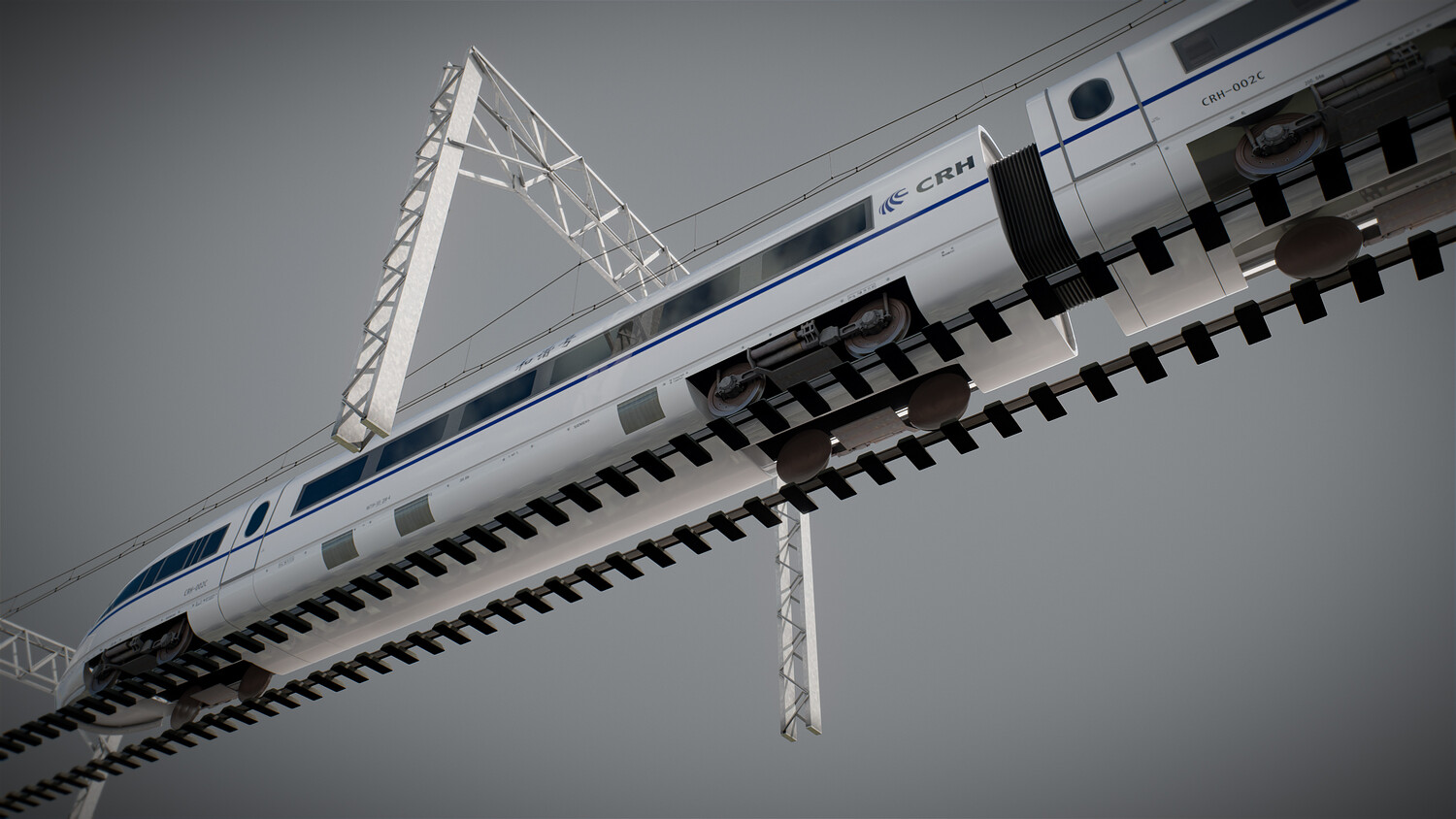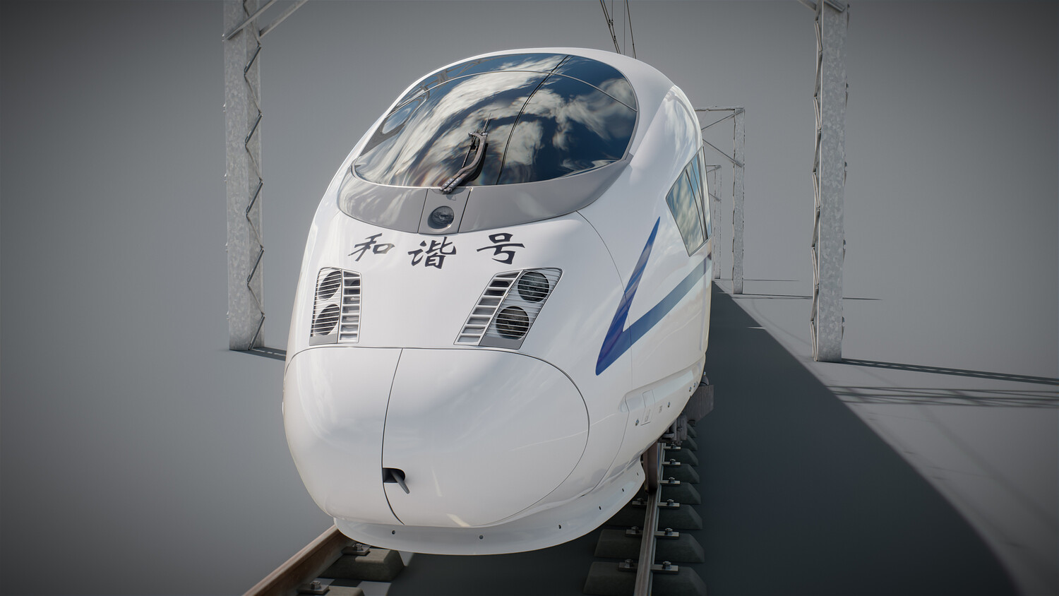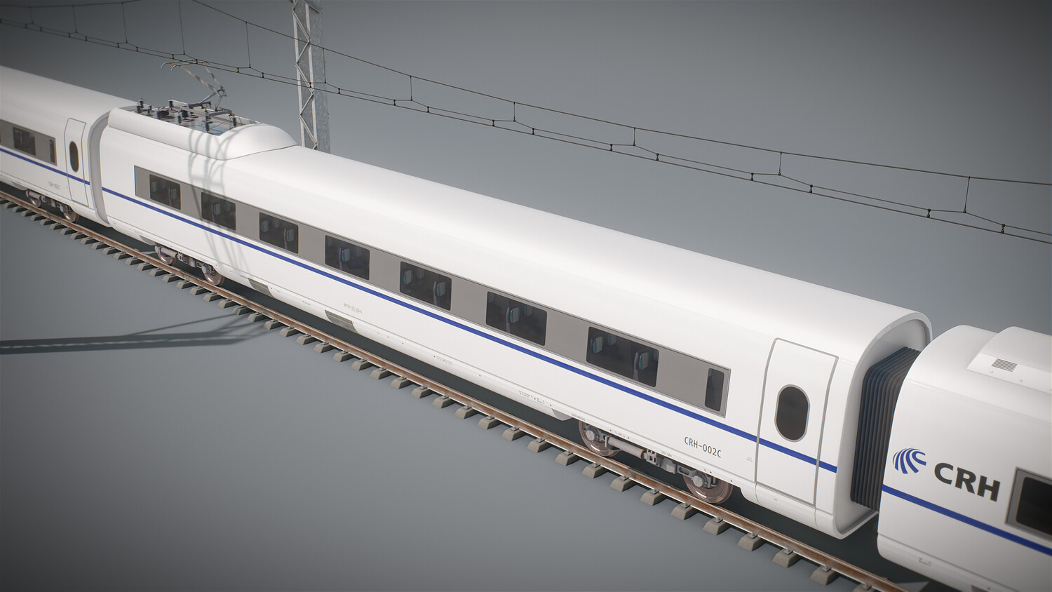 Realistic, detailed and textured Chinese CRH3 Siemens Velaro high speed trains with Interior, Railway Track and Catenary included in multiple 3D formats.