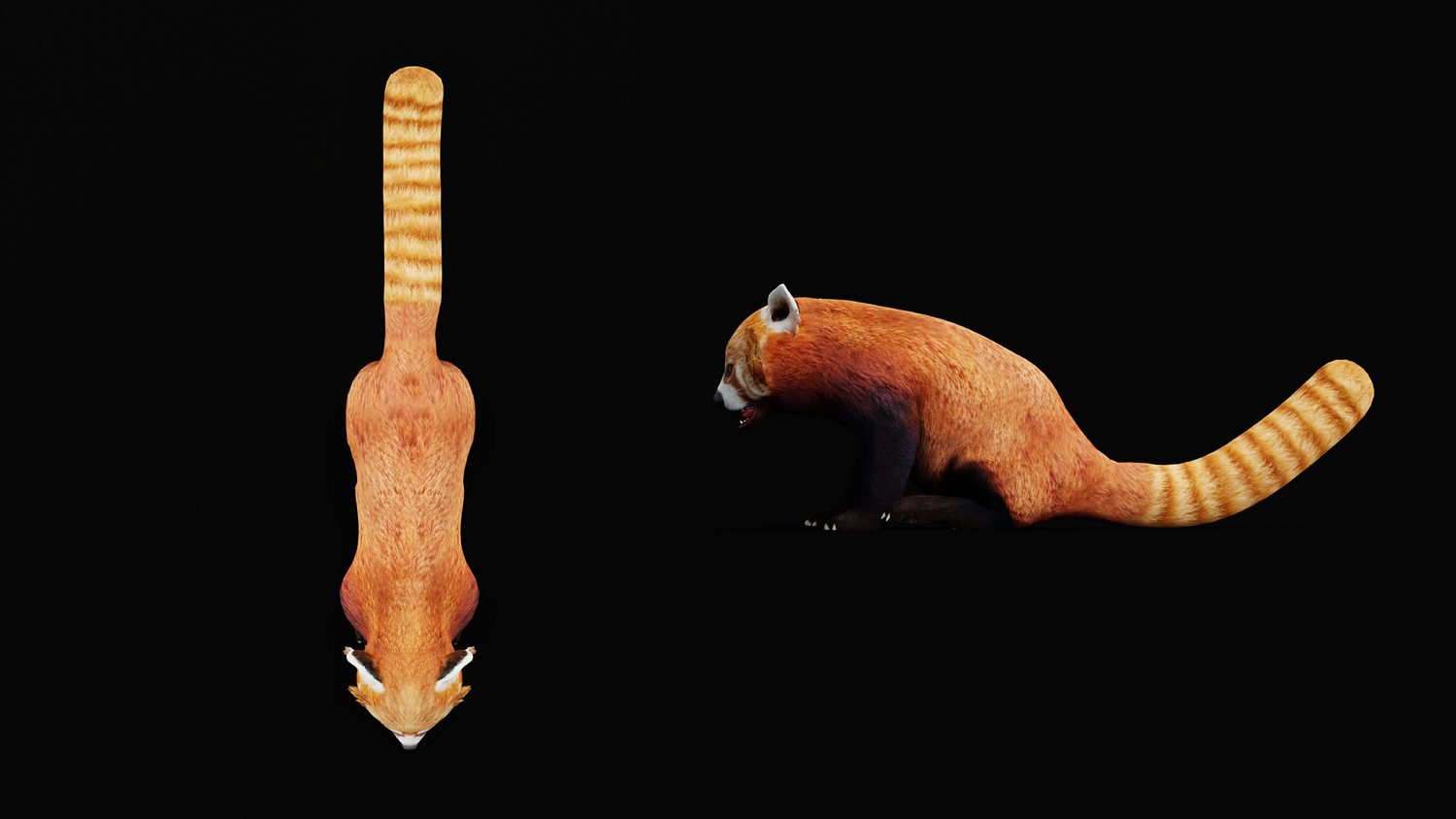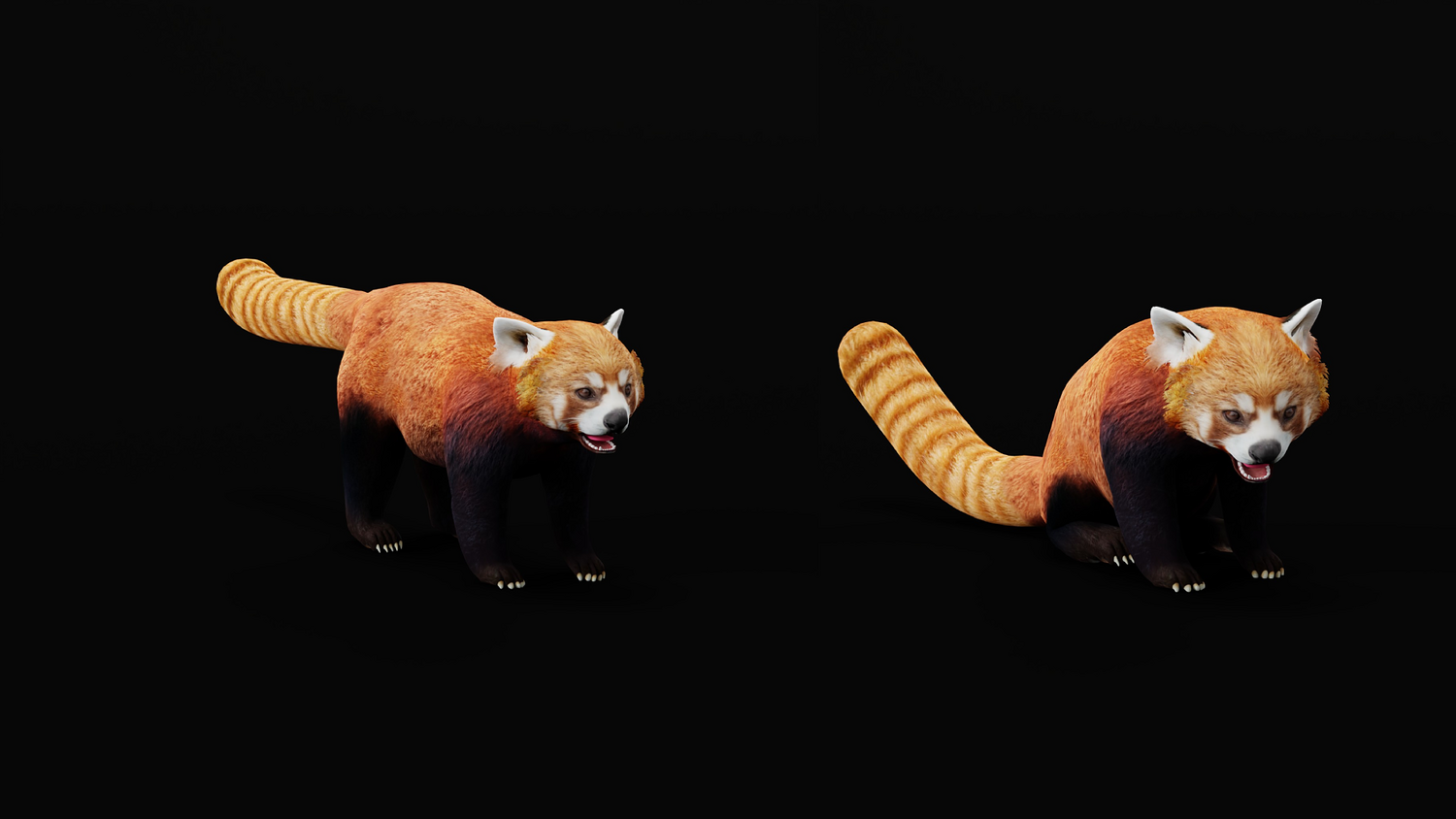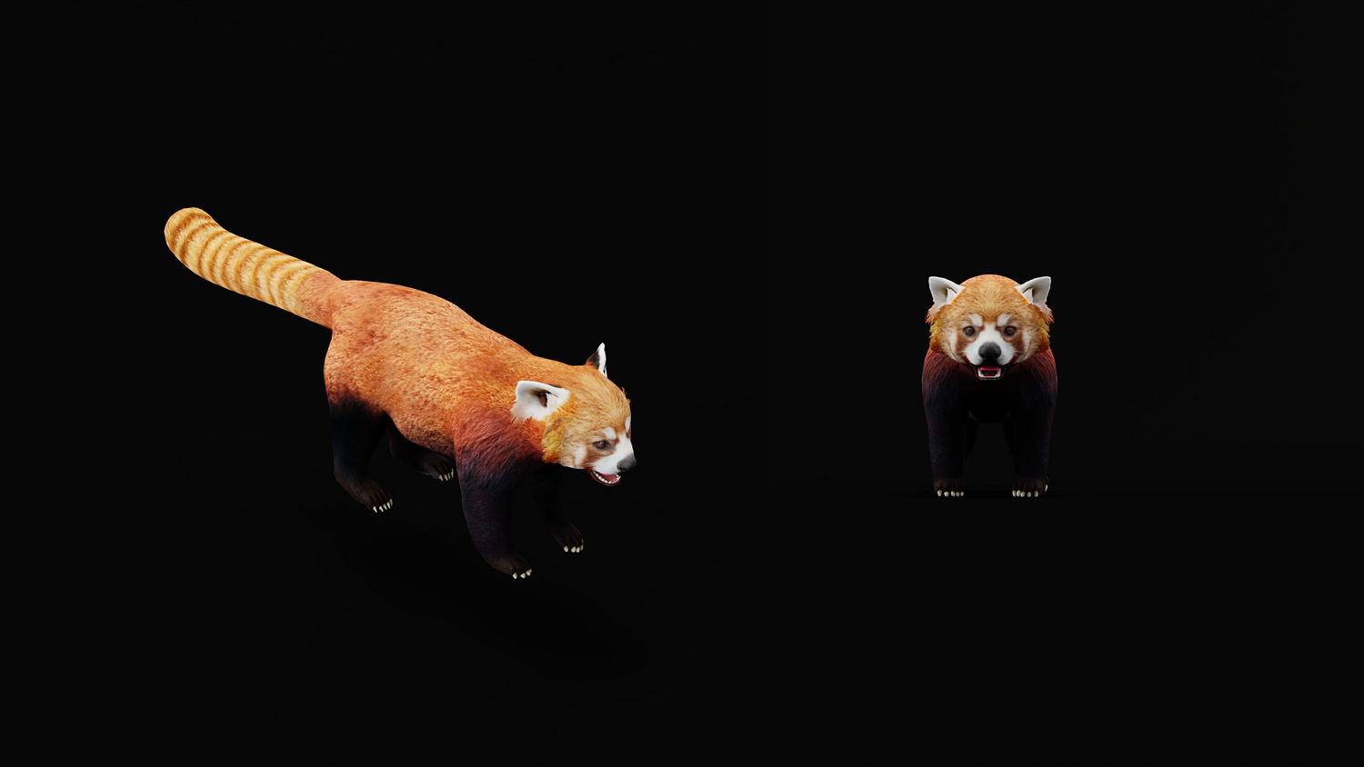 Vertices-18723 Faces-20320 Edges-38975 Triangles-34160 The red panda, also known as the lesser panda, is a small mammal native to the eastern Himalayas and southwestern China. It has dense reddish-brown fur with a black belly and legs, white-lined ears, a mostly white muzzle and a ringed tail. . .3D Red Panda Realistic Animal Model By Nyilonelycompany (nyc).Thank you.