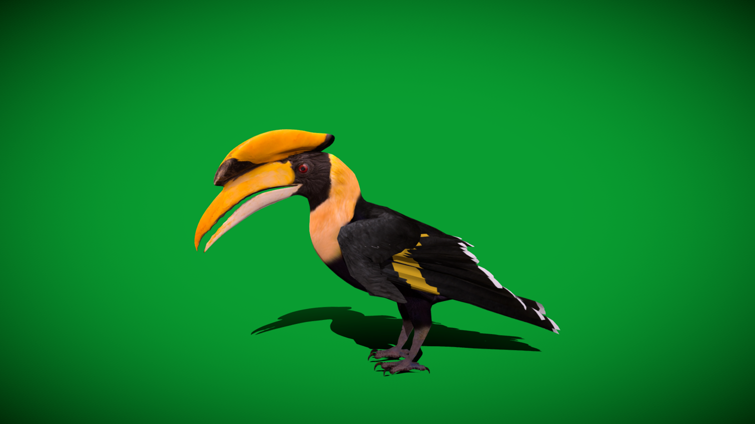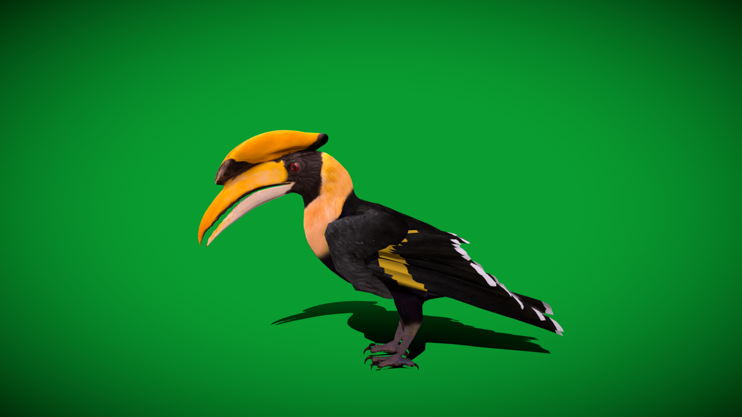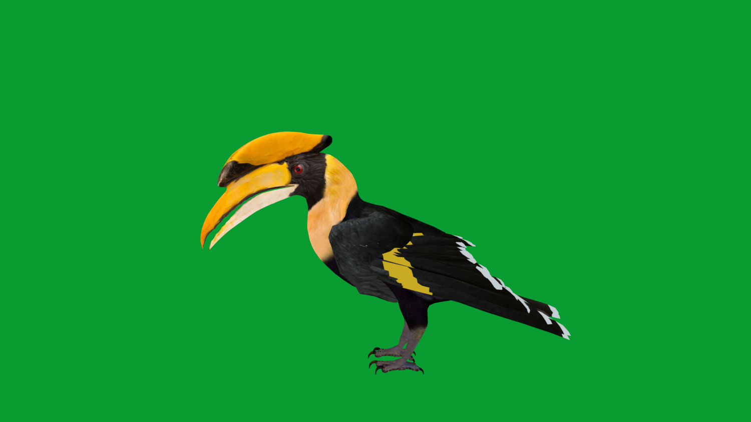 Vertices-13701 Faces-14859 Edges-28512 Triangles-26194 The great hornbill, also known as the concave-casqued hornbill, great Indian hornbill or great pied hornbill, is one of the larger members of the hornbill family. It occurs in the Indian subcontinent and Southeast Asia. It is predominantly frugivorous, but also preys on small mammals, reptiles, and birds... 3D Great Hornbill Bird Animal Model By Nyilonelycompany (nyc).Thank you.