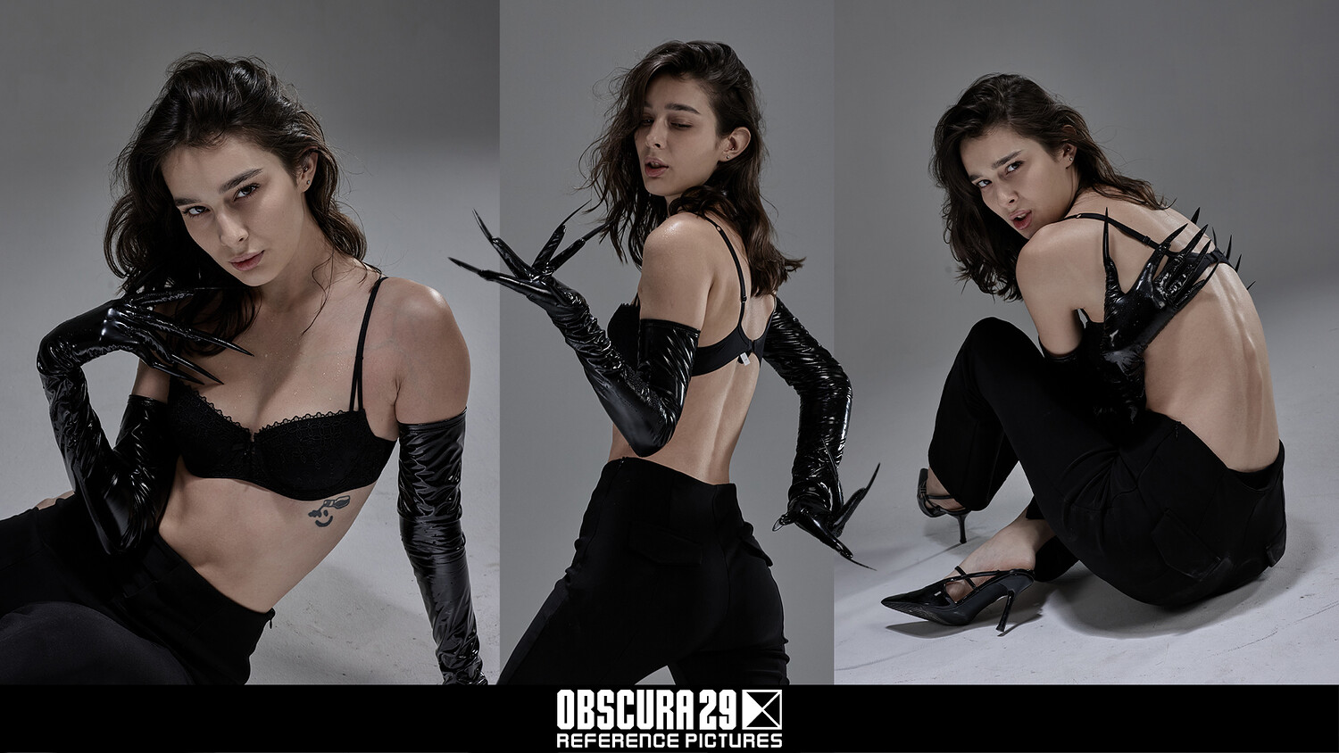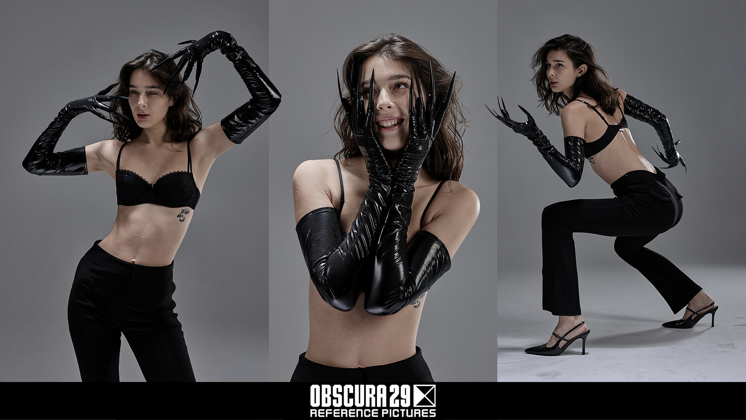 Dark Aesthetic Female – 500+ Portrait & Pose References is a unique collection featuring a beautiful female model dressed in a dark suit and clawed gloves. This set focuses on raw emotion, attitude, and a dark vibe.