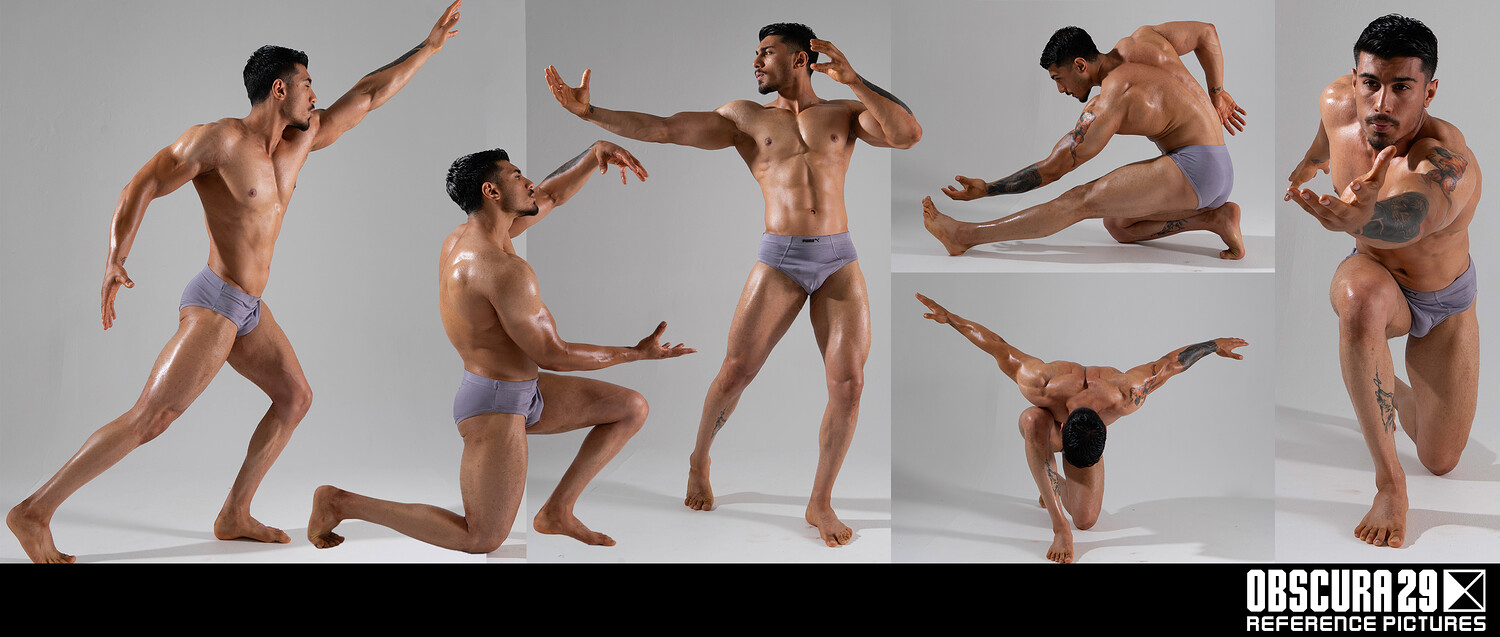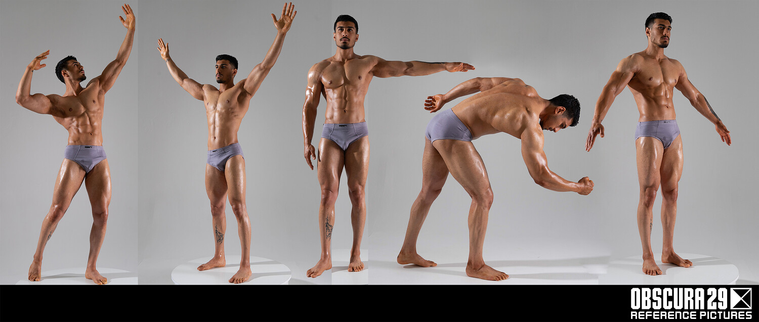 This reference pack features over 1200 photos of a muscular male model in a variety of dynamic and static poses. Inside, you'll find A- and T-poses, as well as punches, lunges, and athletic stretches. This collection is ideal for anatomy studies, gesture drawing, and character design. The pack is designed to help artists study muscle structure, body balance, and movement, making it a valuable resource for both quick sketches and detailed figure work.