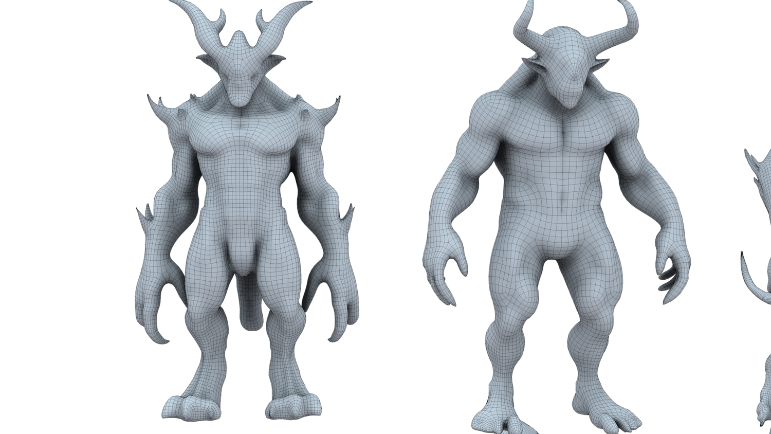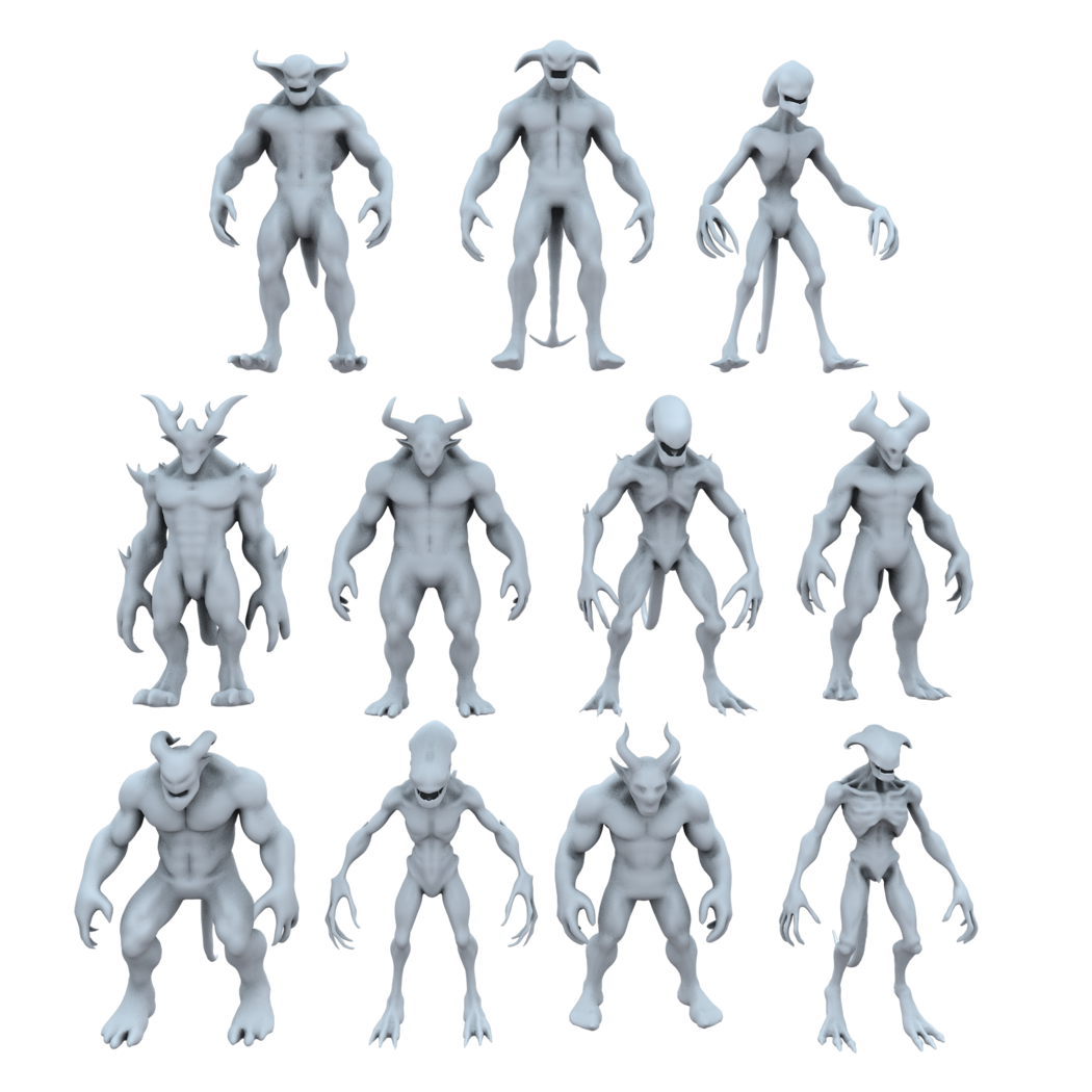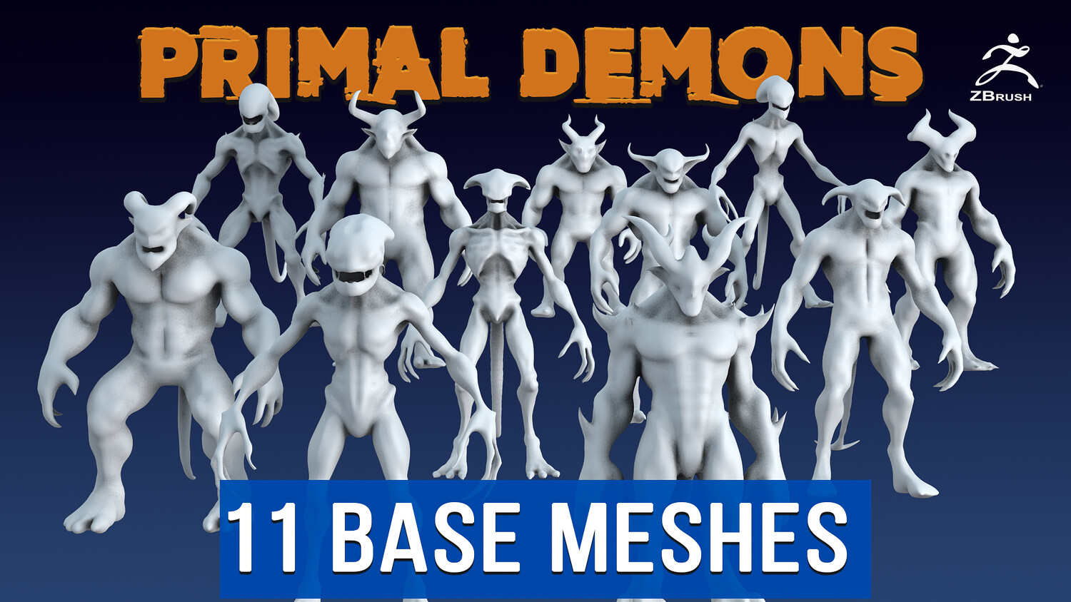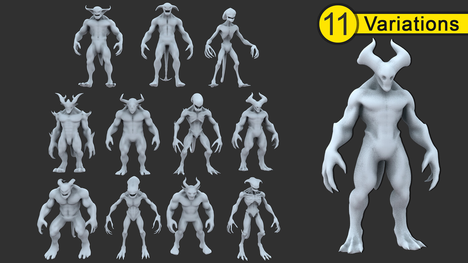 Pack Features: 11 diverse demon basemeshes.Optimized quad topology.Well-defined basic forms for sculpting.Compatible with ZBrush, Blender, C4D, 3DCoat, etc.Speeds up character creation.