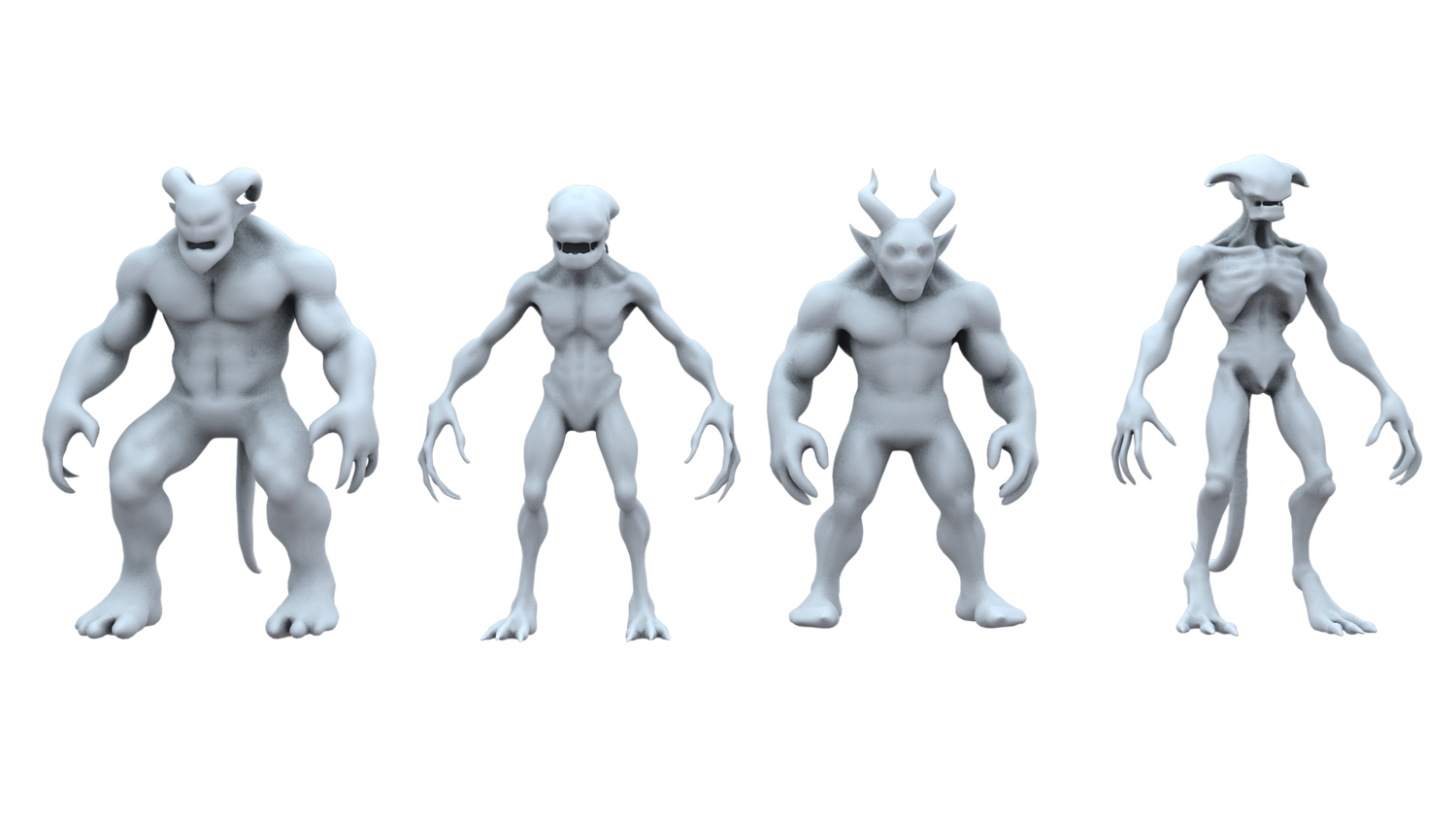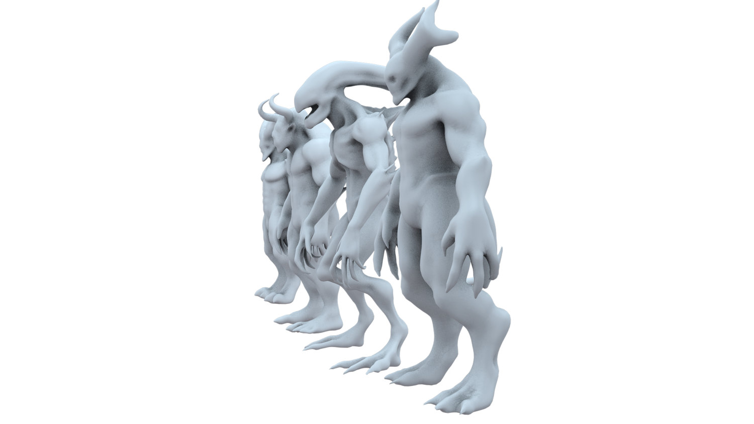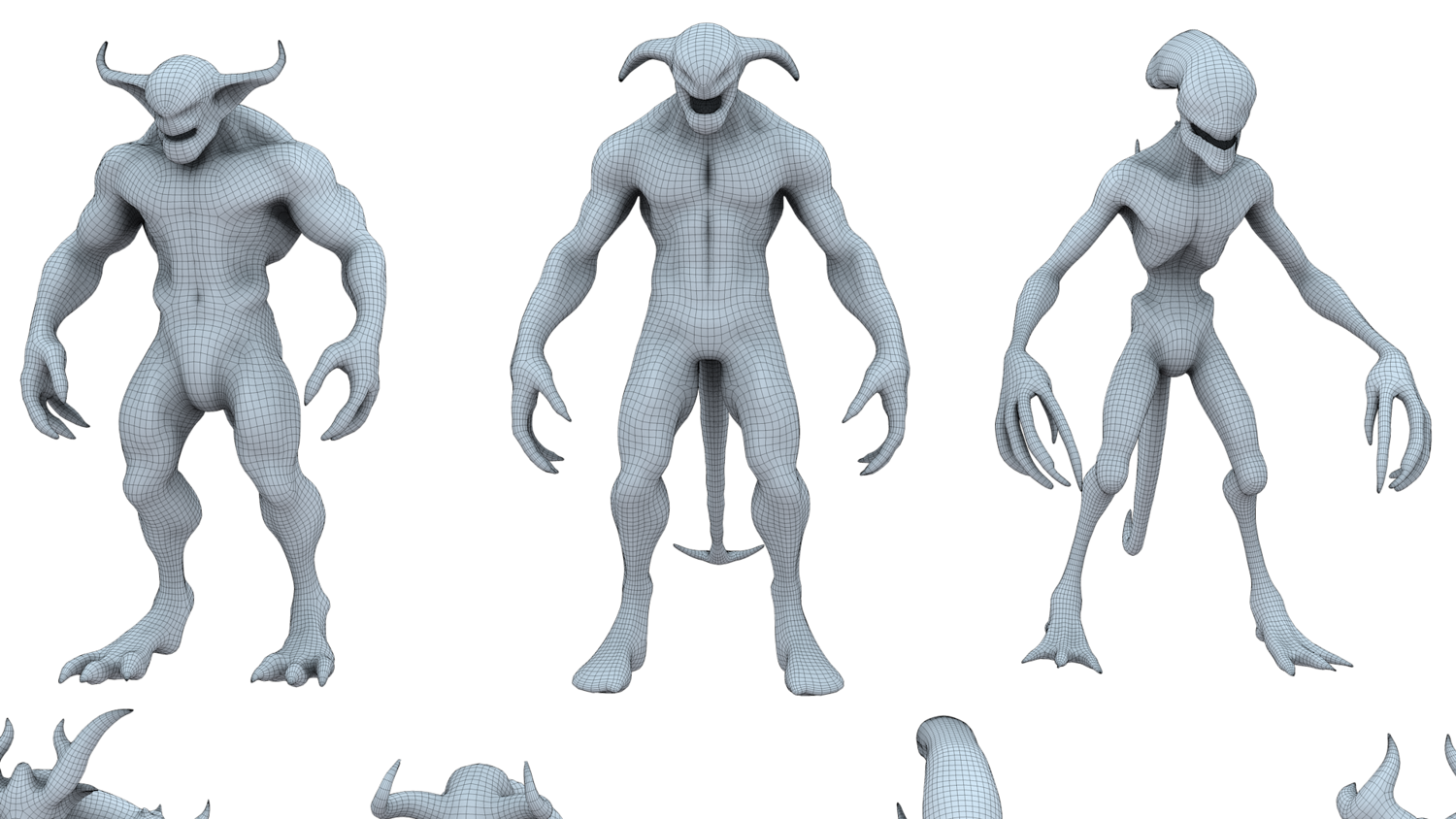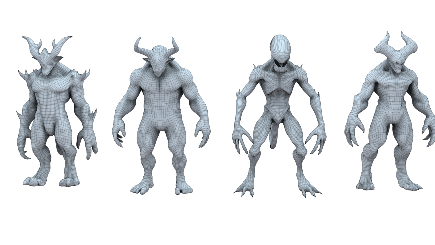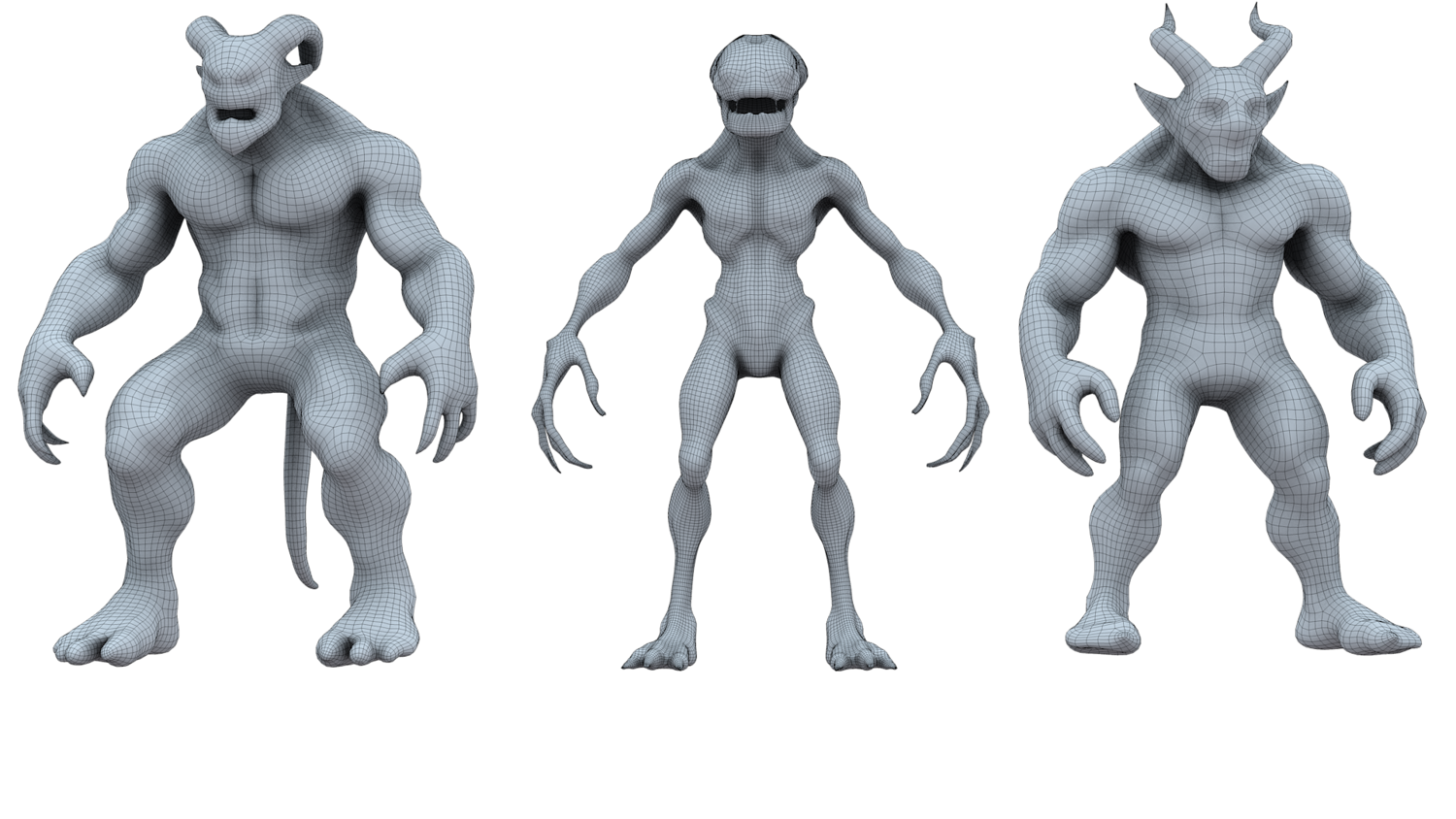 Pack Features: 11 diverse demon basemeshes.Optimized quad topology.Well-defined basic forms for sculpting.Compatible with ZBrush, Blender, C4D, 3DCoat, etc.Speeds up character creation.
