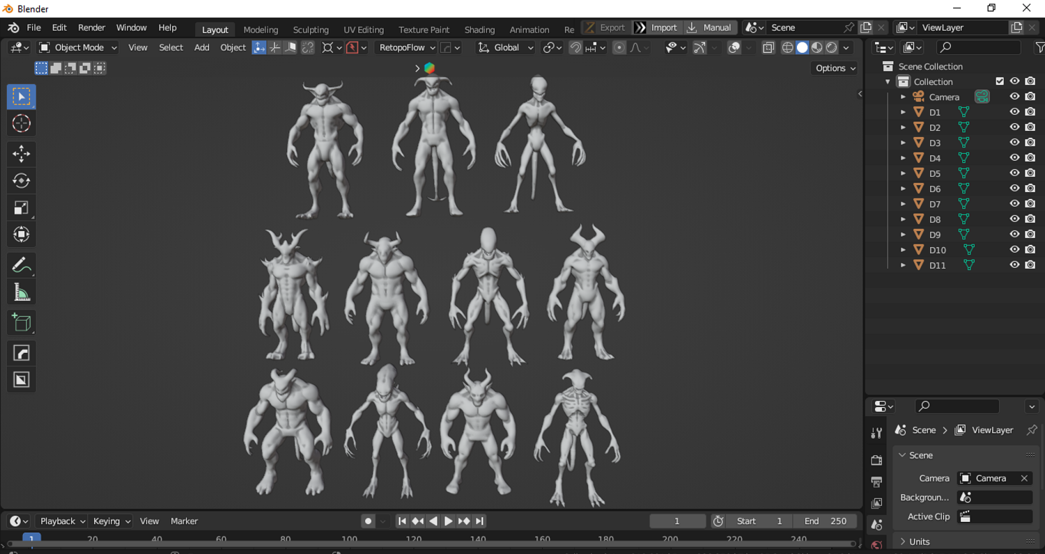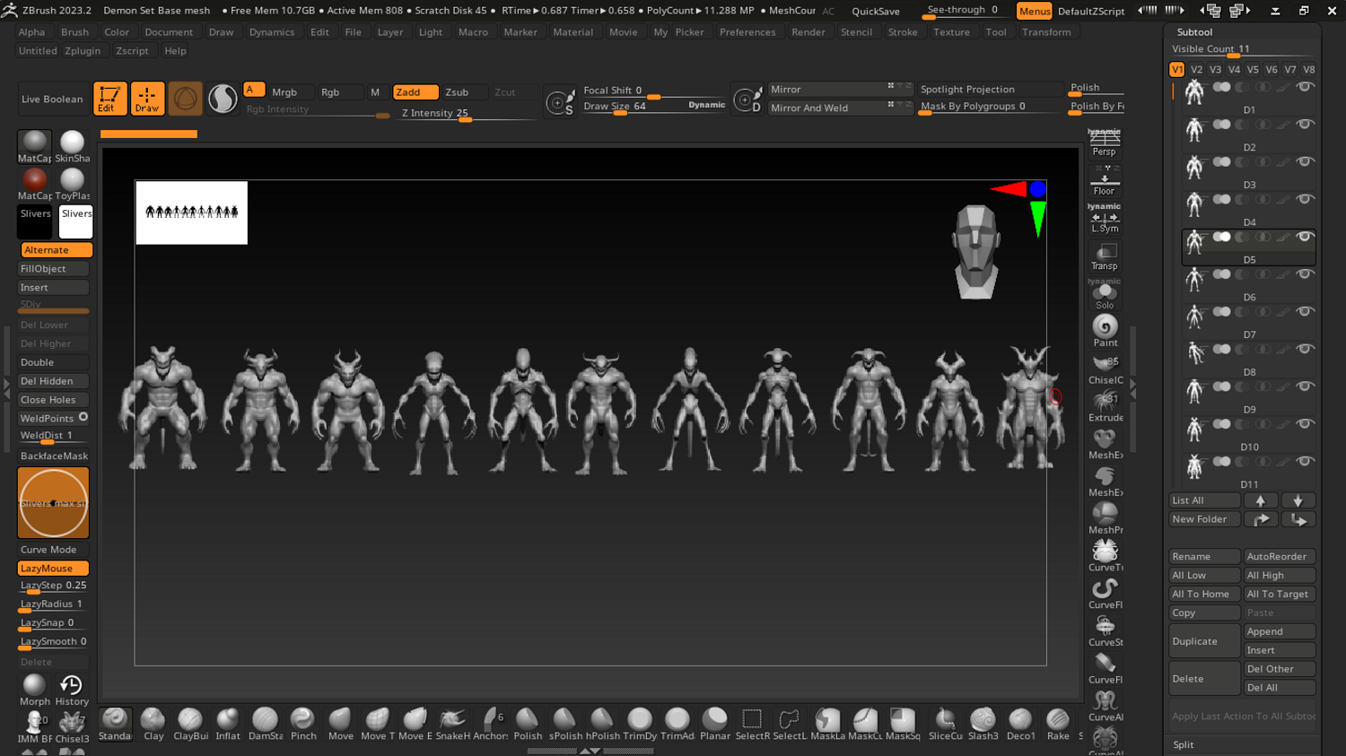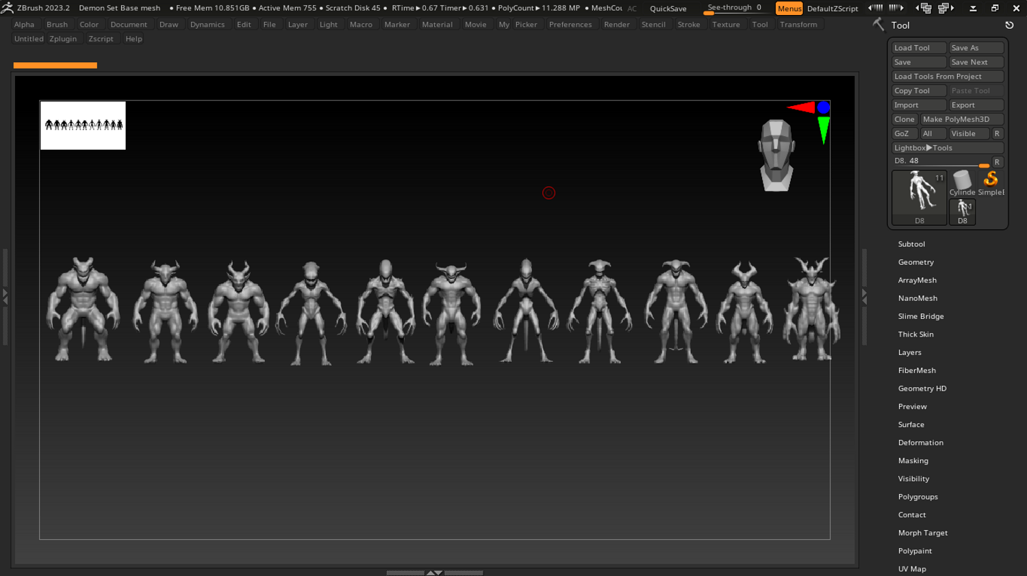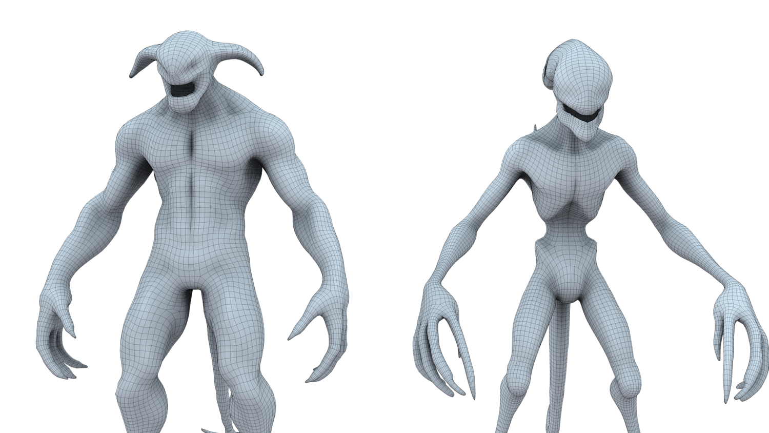 Pack Features: 11 diverse demon basemeshes.Optimized quad topology.Well-defined basic forms for sculpting.Compatible with ZBrush, Blender, C4D, 3DCoat, etc.Speeds up character creation.