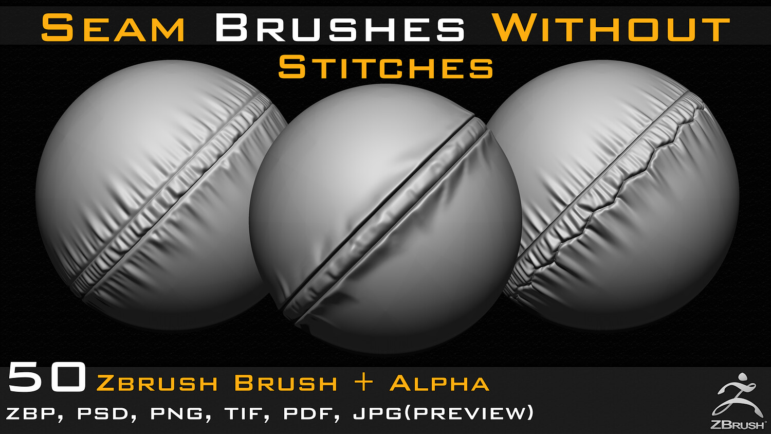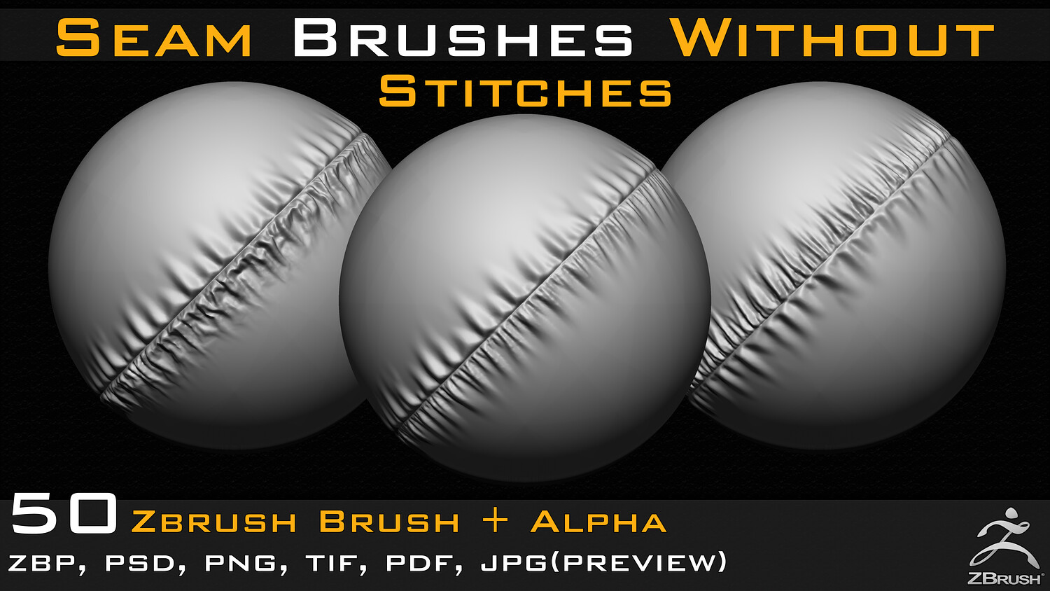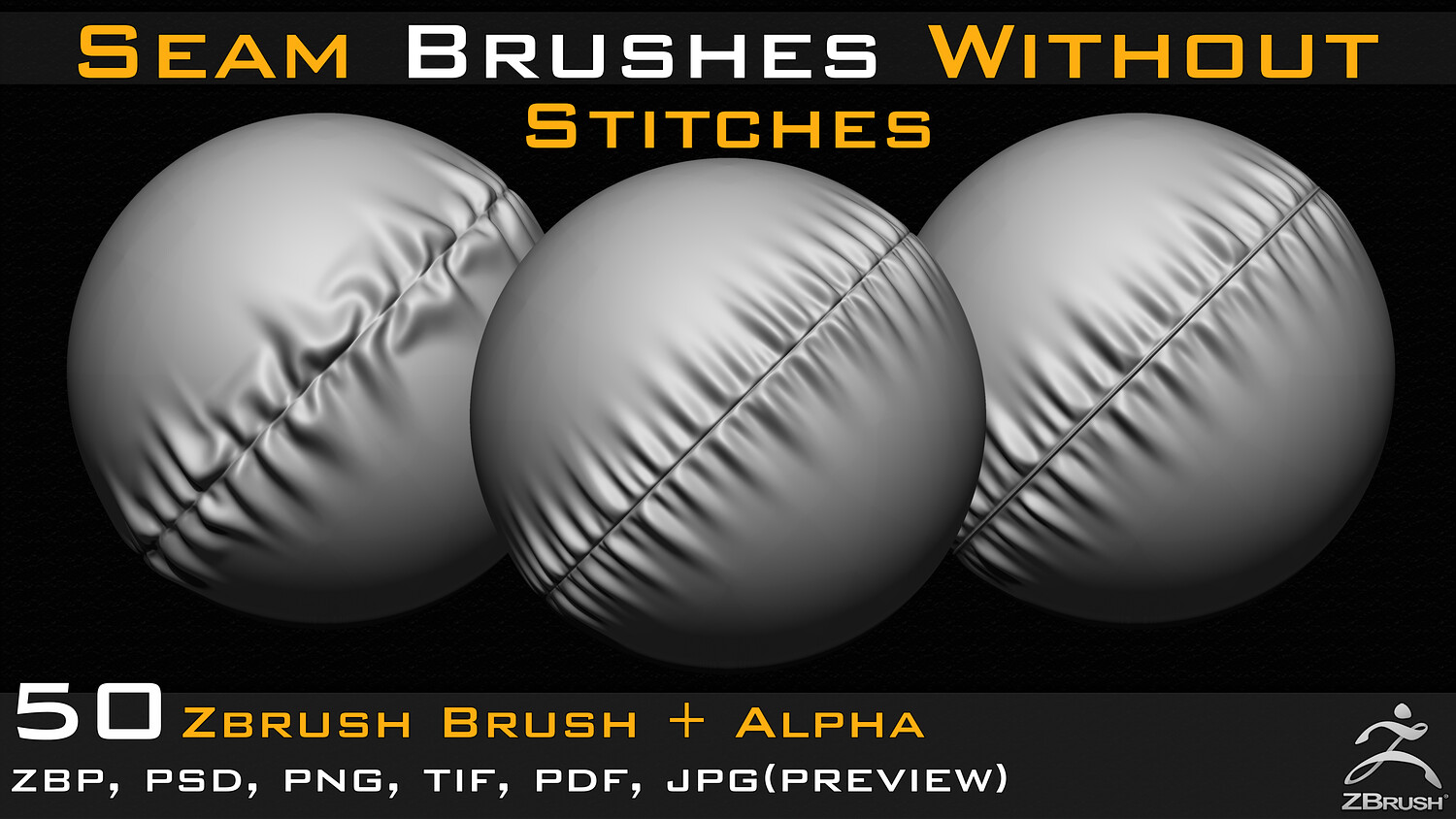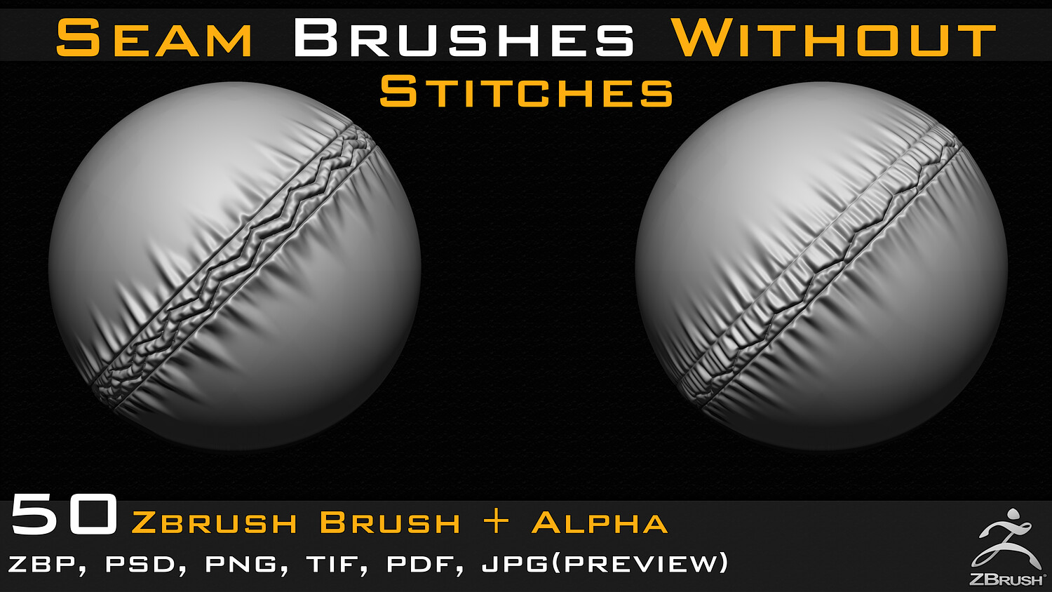 📦 What’s Included * 50 Seam Brushes (ZBR/ ZBrush ) * 50 4K Alphas (PNG + TIFF + PSD ) * Organized folders for quick workflow * ReadMe / Install Guide -Help Text File (Txt) * JPG+ PDF (Catalog) * PSD, PNG, PDF, TIF, ZBP, JPG ( preview ), Txt