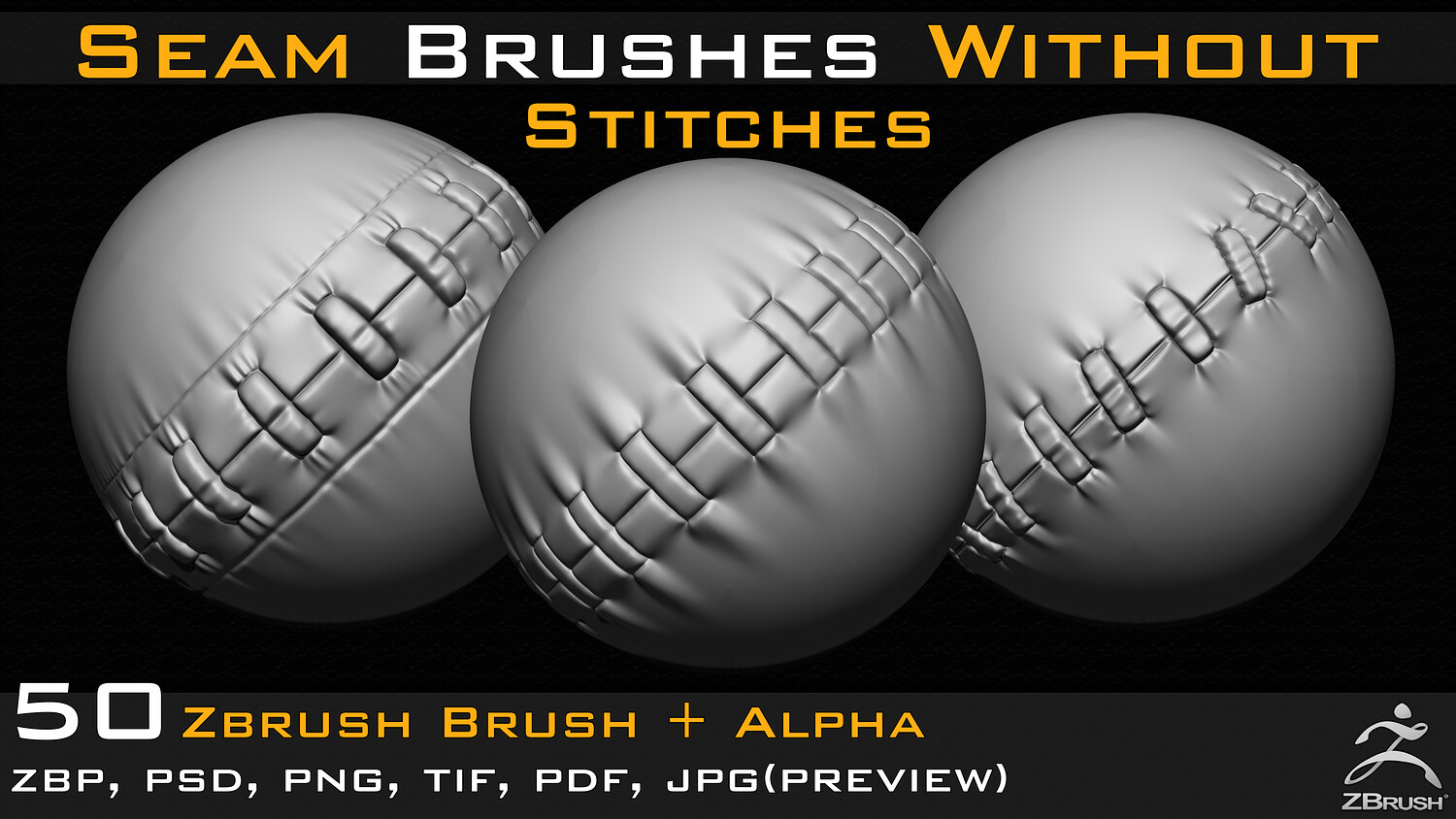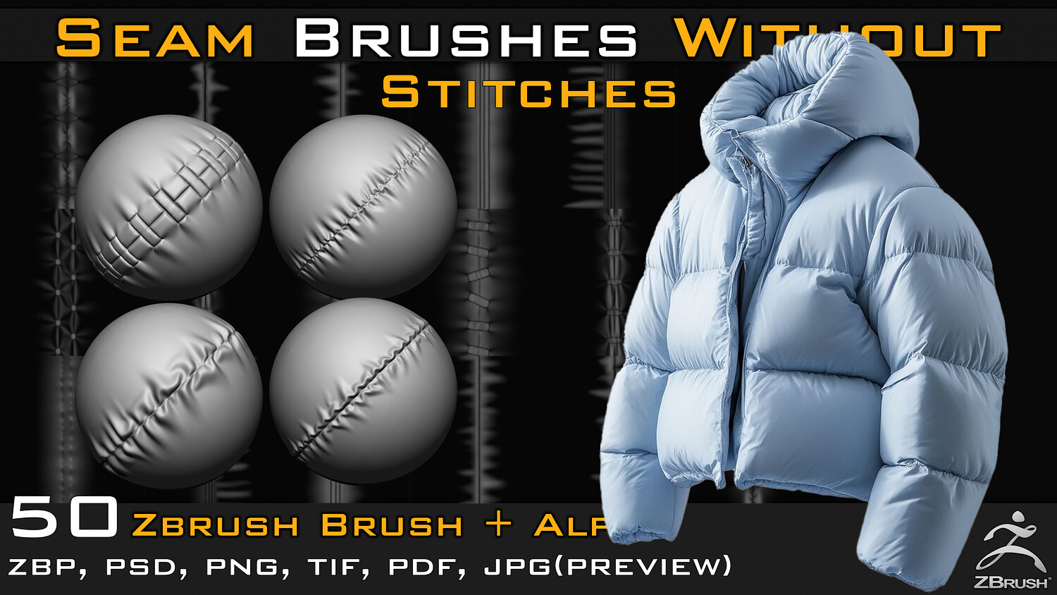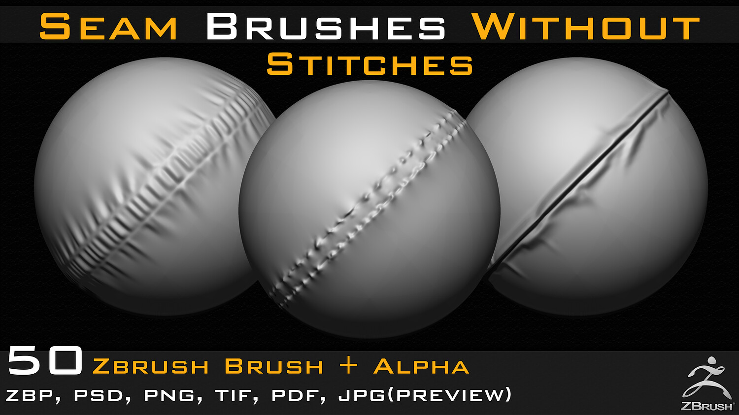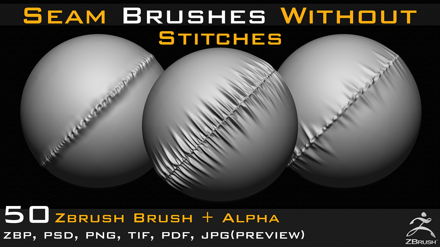 📦 What’s Included * 50 Seam Brushes (ZBR/ ZBrush ) * 50 4K Alphas (PNG + TIFF + PSD ) * Organized folders for quick workflow * ReadMe / Install Guide -Help Text File (Txt) * JPG+ PDF (Catalog) * PSD, PNG, PDF, TIF, ZBP, JPG ( preview ), Txt