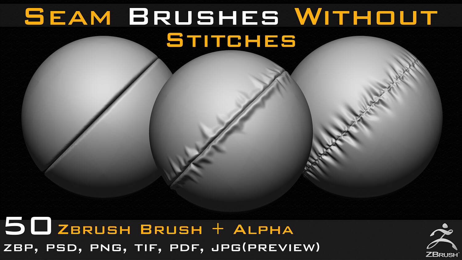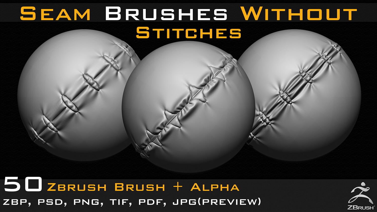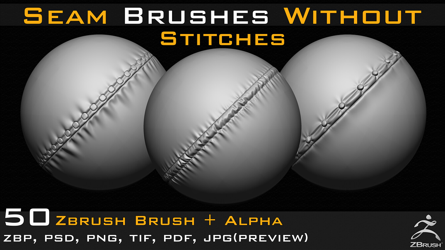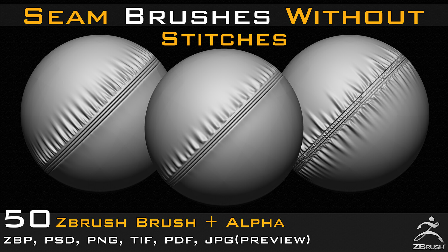 📦 What’s Included * 50 Seam Brushes (ZBR/ ZBrush ) * 50 4K Alphas (PNG + TIFF + PSD ) * Organized folders for quick workflow * ReadMe / Install Guide -Help Text File (Txt) * JPG+ PDF (Catalog) * PSD, PNG, PDF, TIF, ZBP, JPG ( preview ), Txt