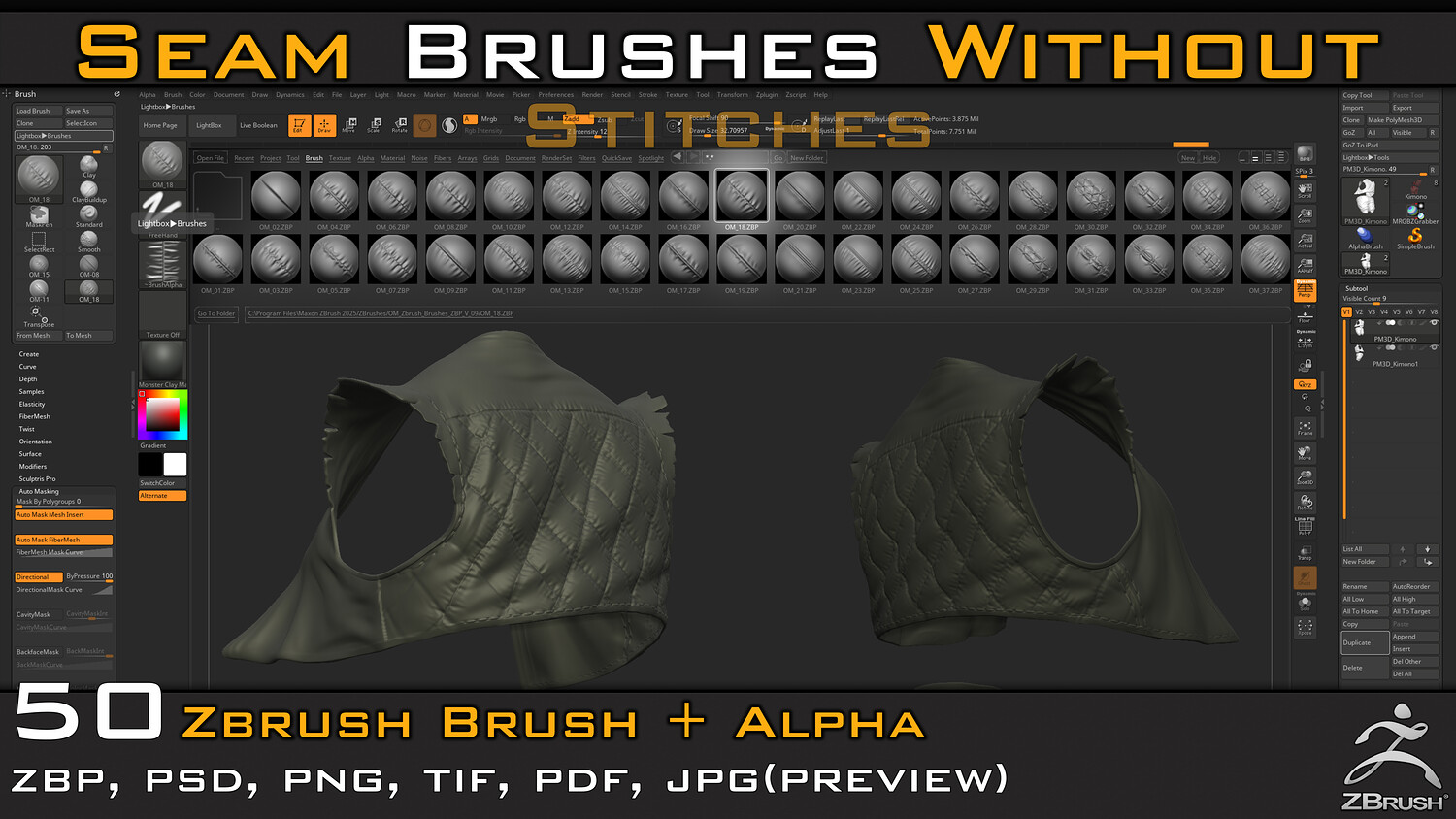 50 Seam Brushes + 4K Alpha Pack | Ultimate Fabric & Stitch Detailing – Vol.09
