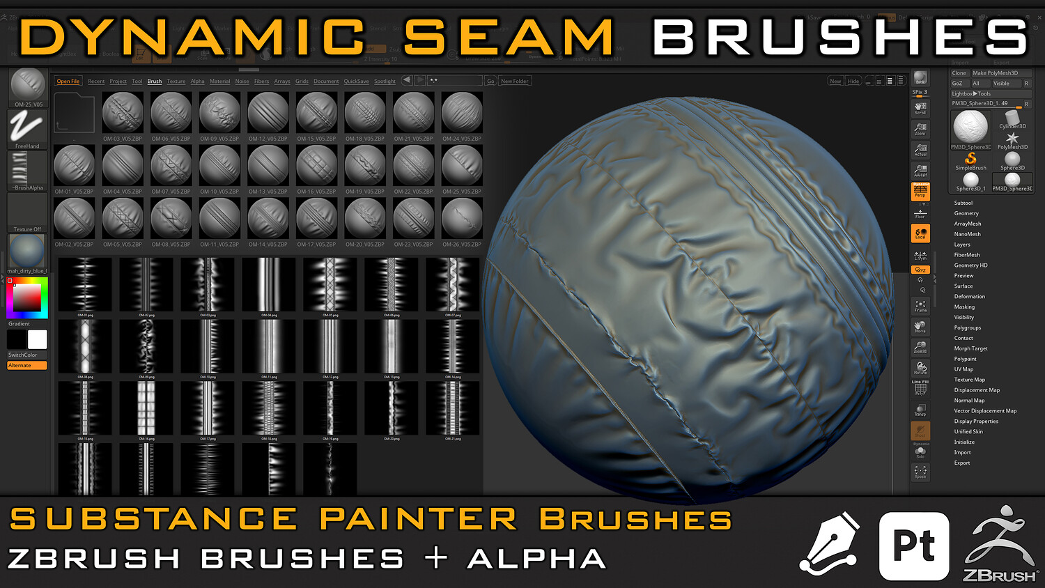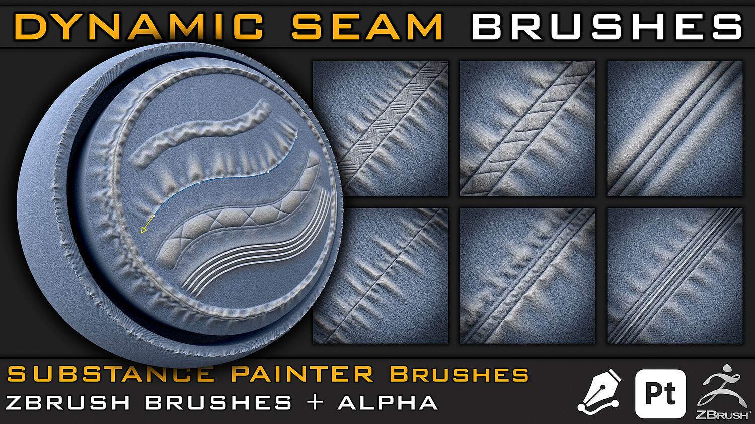 *** info about this Product : - Dynamic Seam Stitches Brush for Substance Painter- Path Tool (SPPR ) -Zbrush Brush (ZBP) -Large, detailed preview of each stitch for Substance Painter and Zbrush -PSD (Alpha) -Tif (Alpha) -PNG (Alpha) -Video Tutorial ( How to use ) -SPPR, ZBP, PSD, PNG, TIF, JPG, PDF, MP4