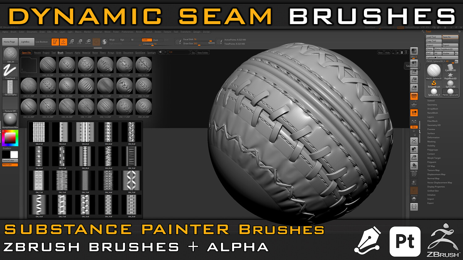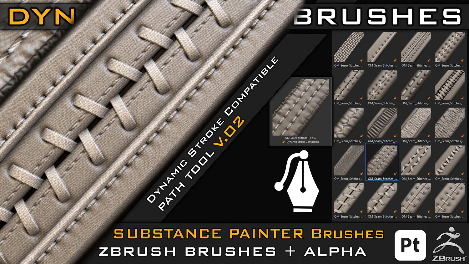 *** info about this Product : - Dynamic Seam Stitches Brush for Substance Painter- Path Tool (SPPR ) -Zbrush Brush (ZBP) -Large, detailed preview of each stitch for Substance Painter and Zbrush -PSD (Alpha) -Tif (Alpha) -PNG (Alpha) -Video Tutorial ( How to use ) -SPPR, ZBP, PSD, PNG, TIF, JPG, PDF, MP4