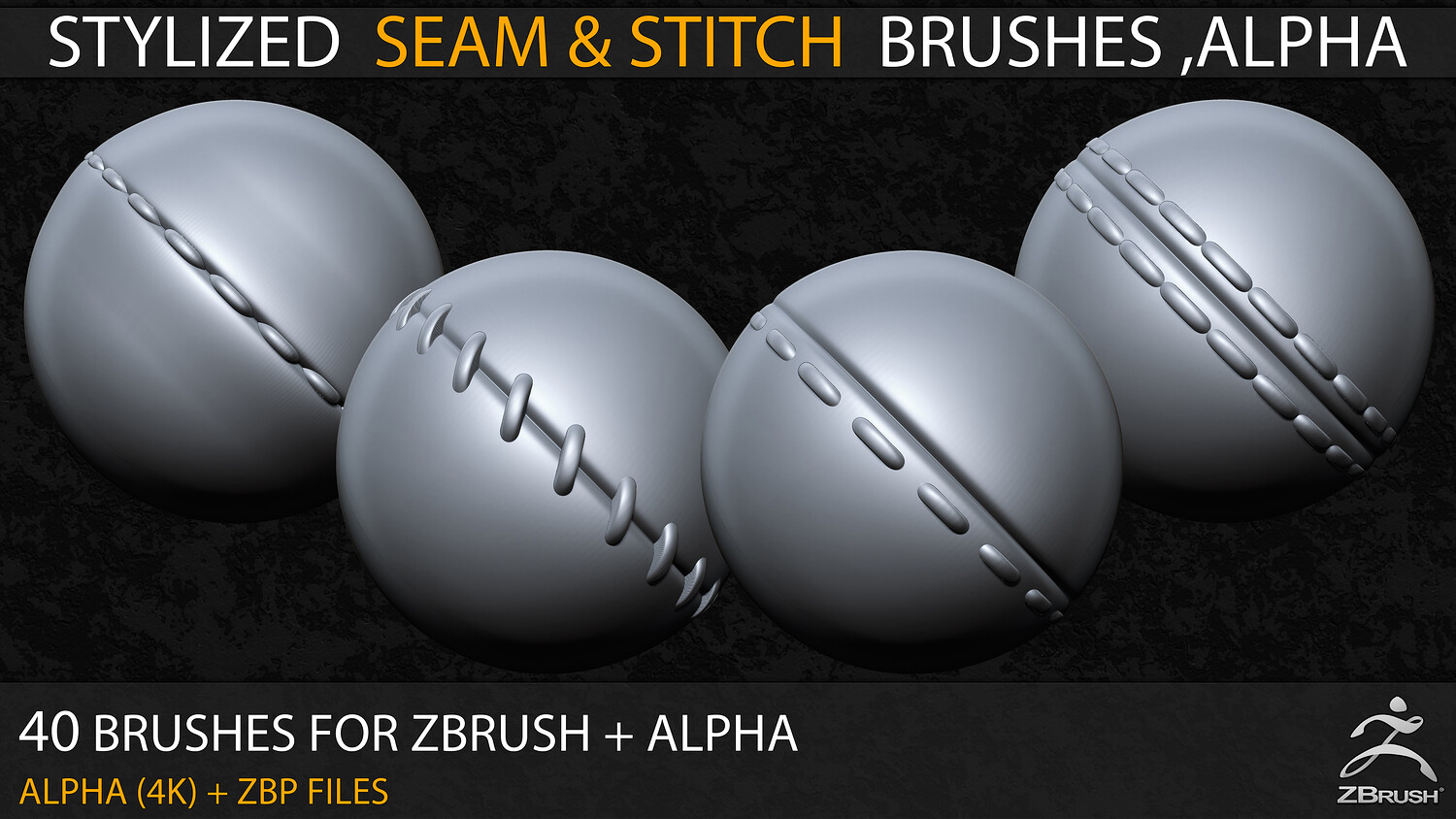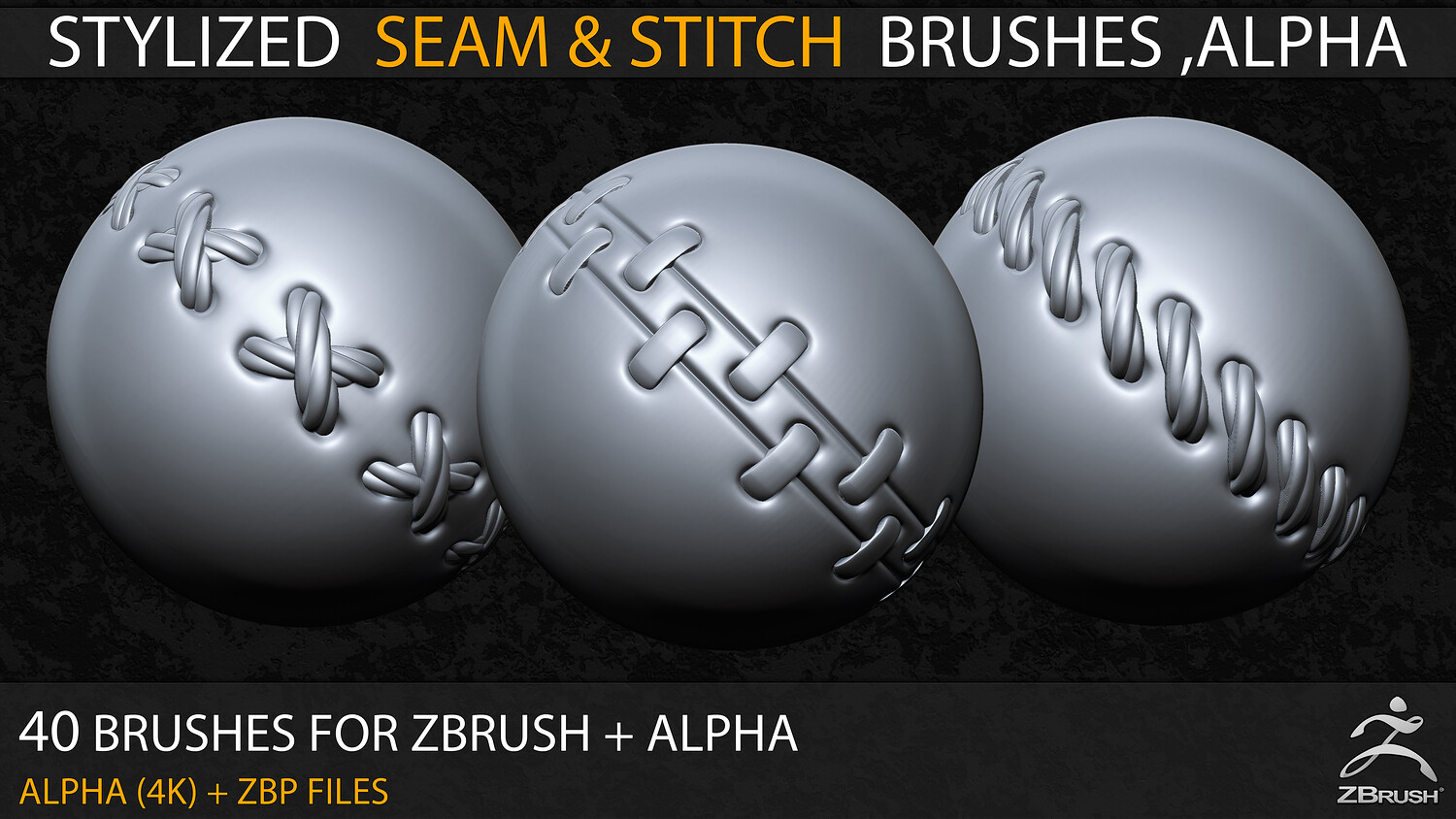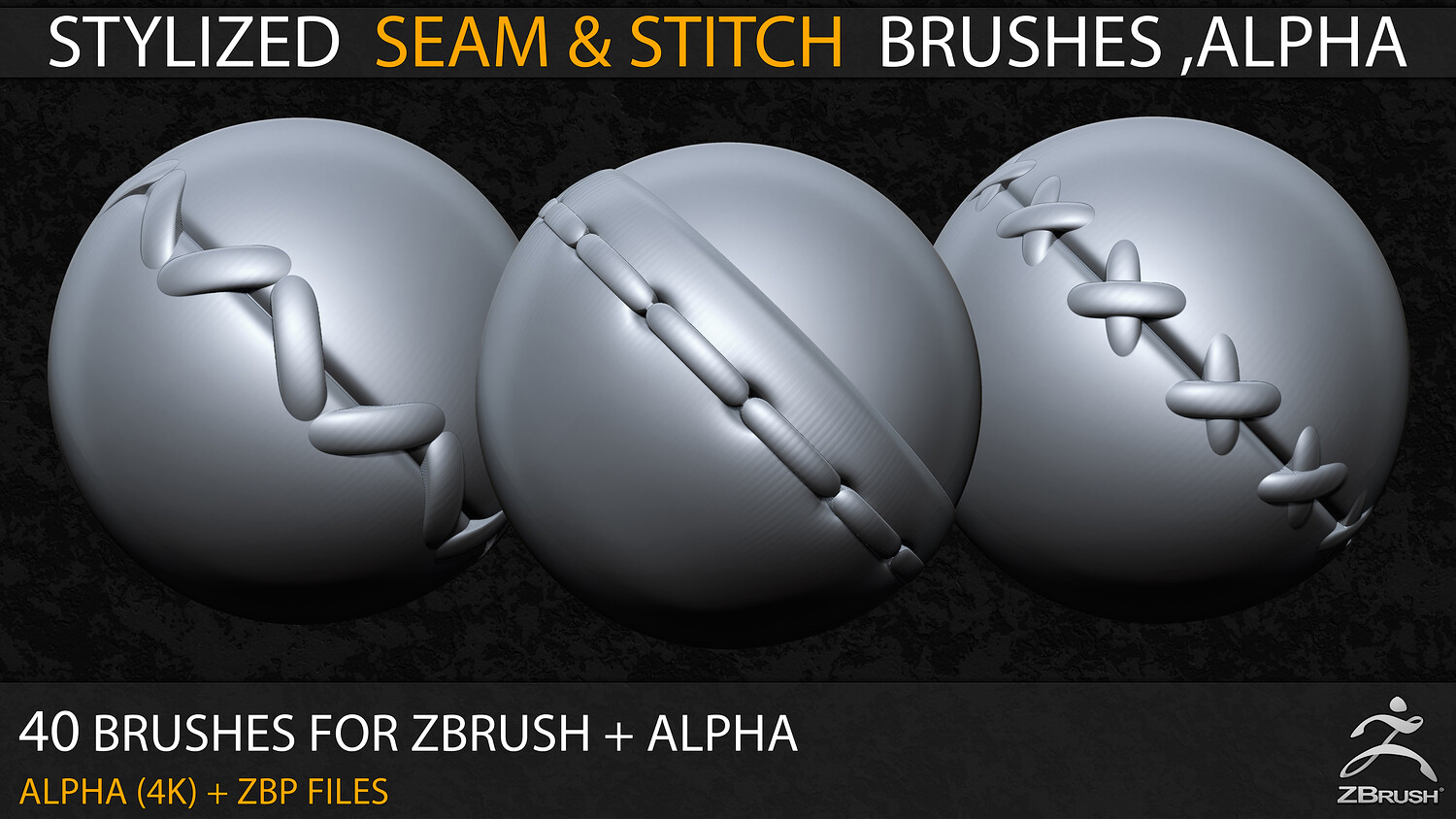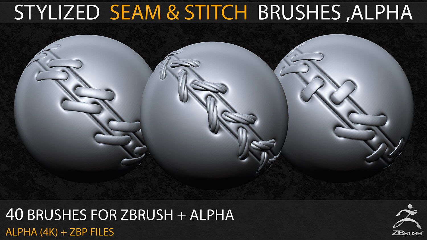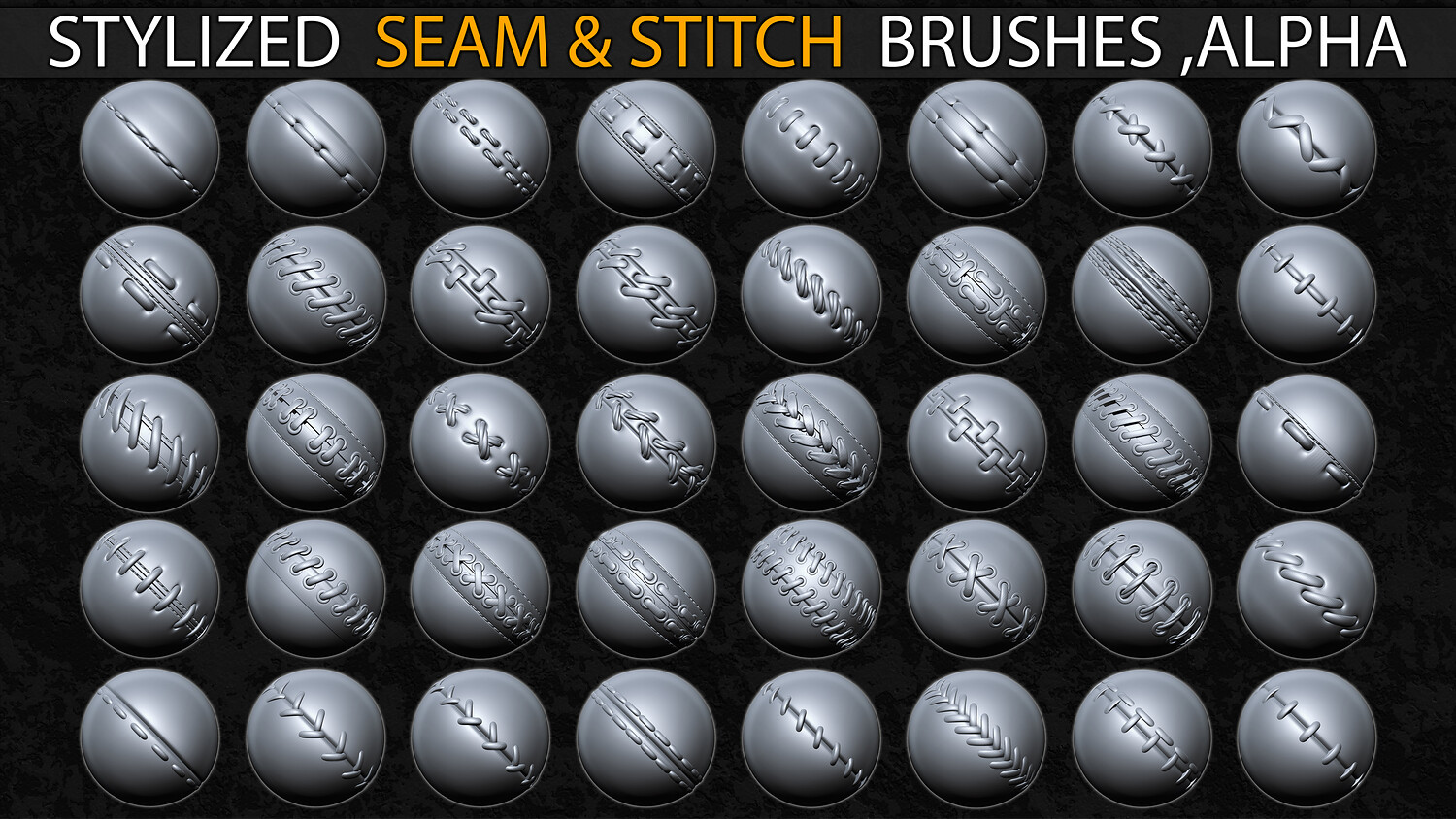 40 Stylized Seam & Stitch Brushes & Alpha (Tileable 4k-16bit) _Vol.03