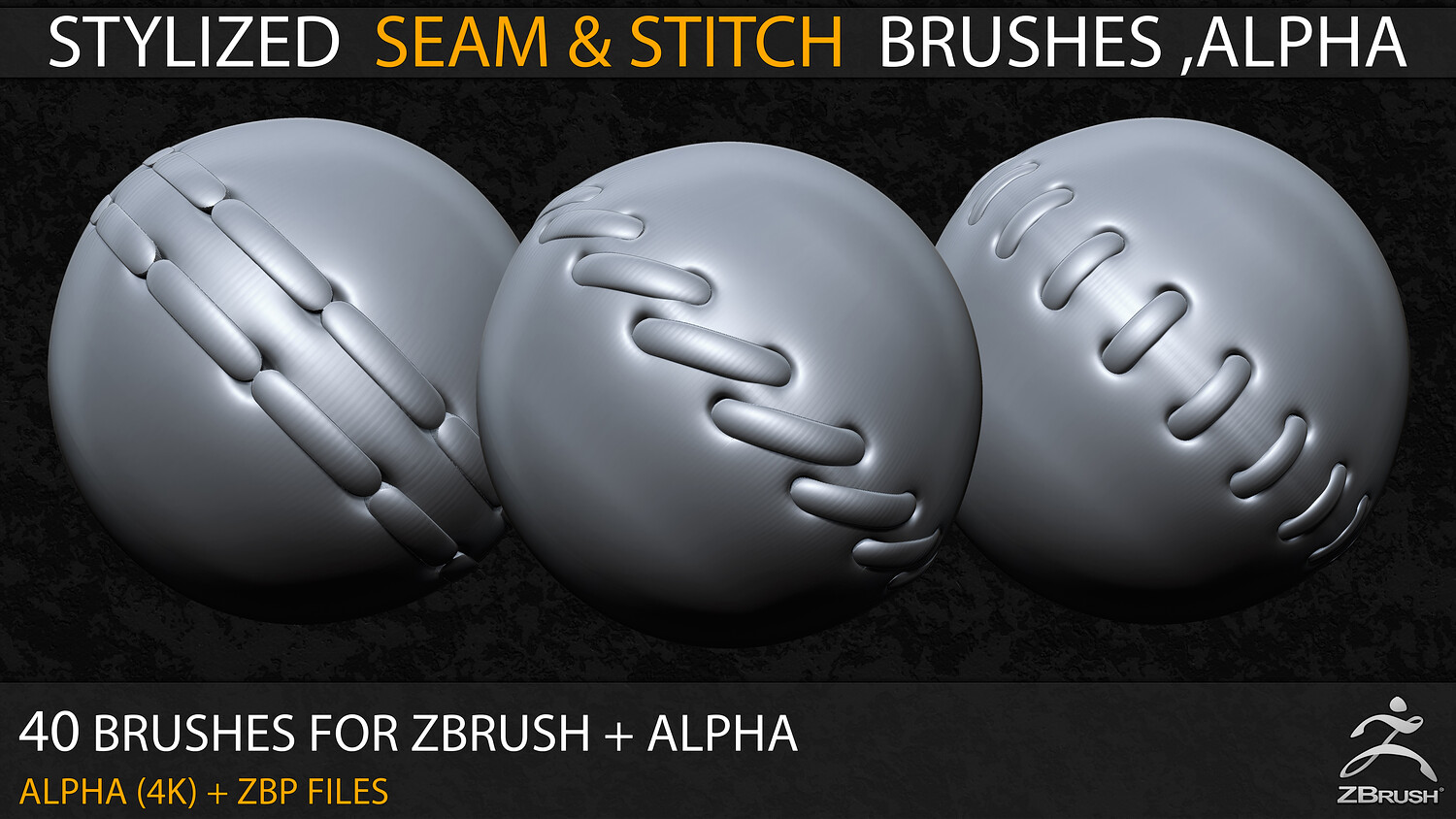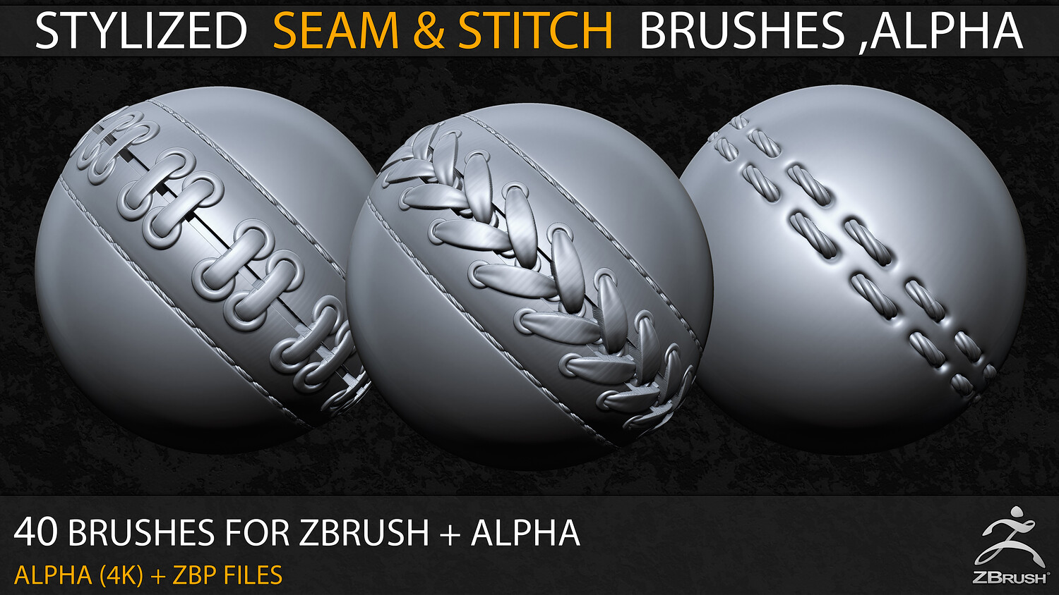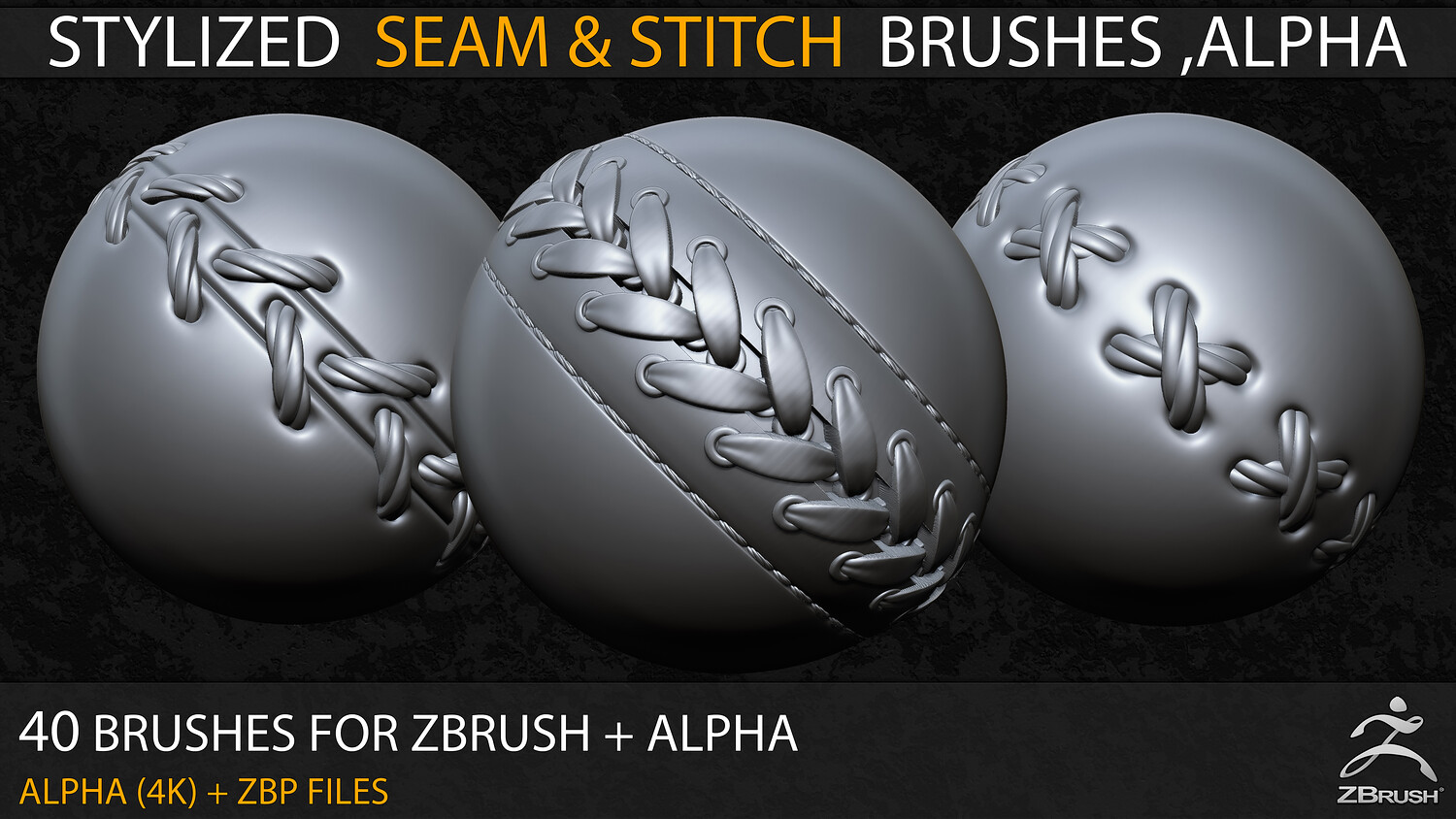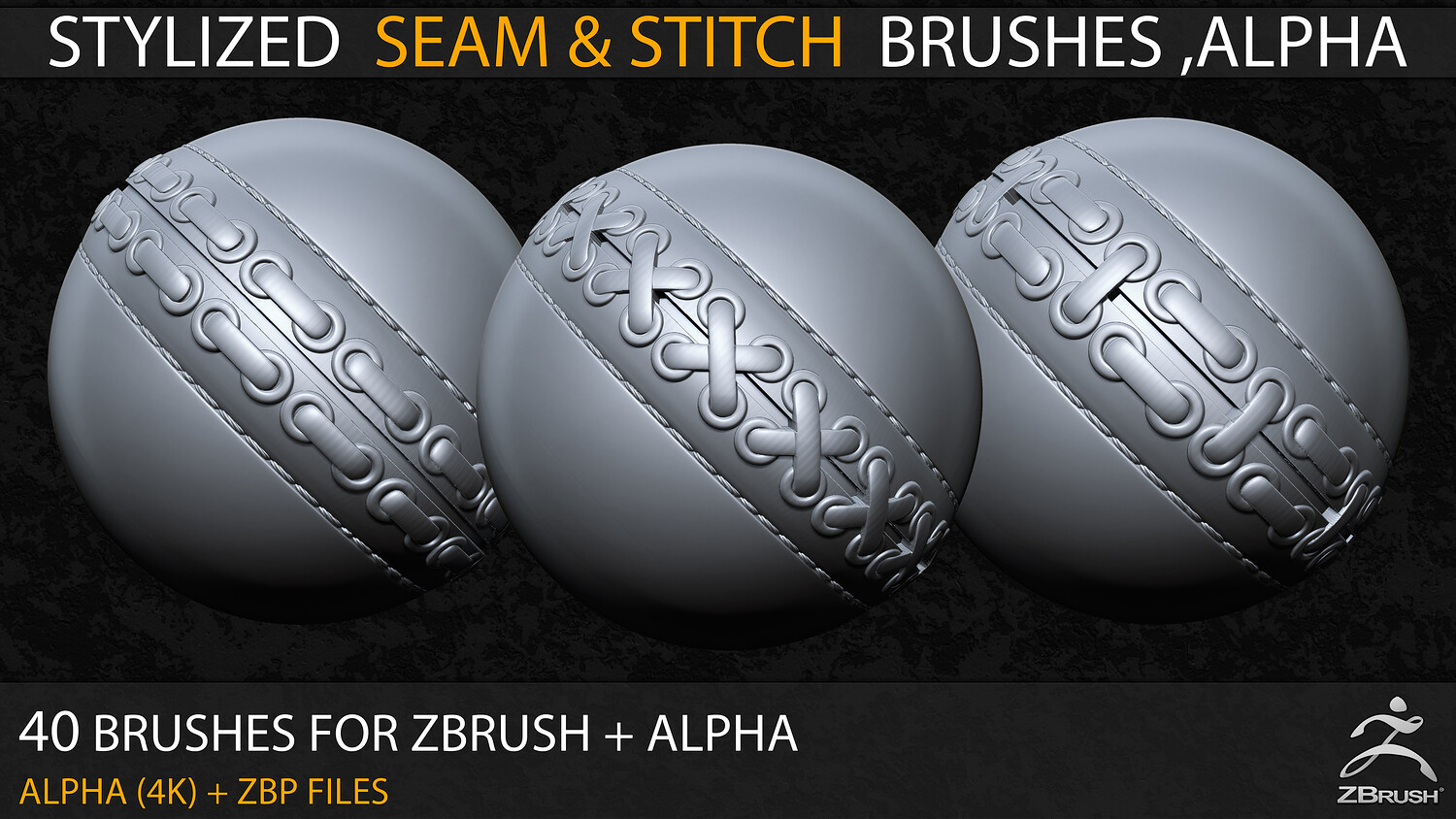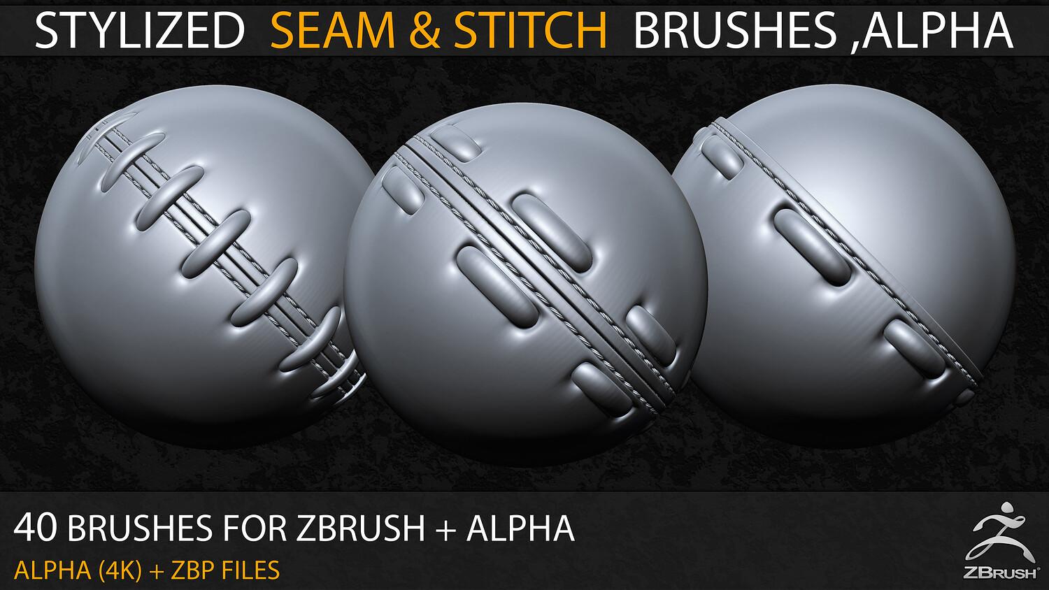 40 Stylized Seam & Stitch Brushes & Alpha (Tileable 4k-16bit) _Vol.03