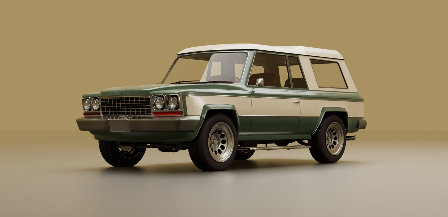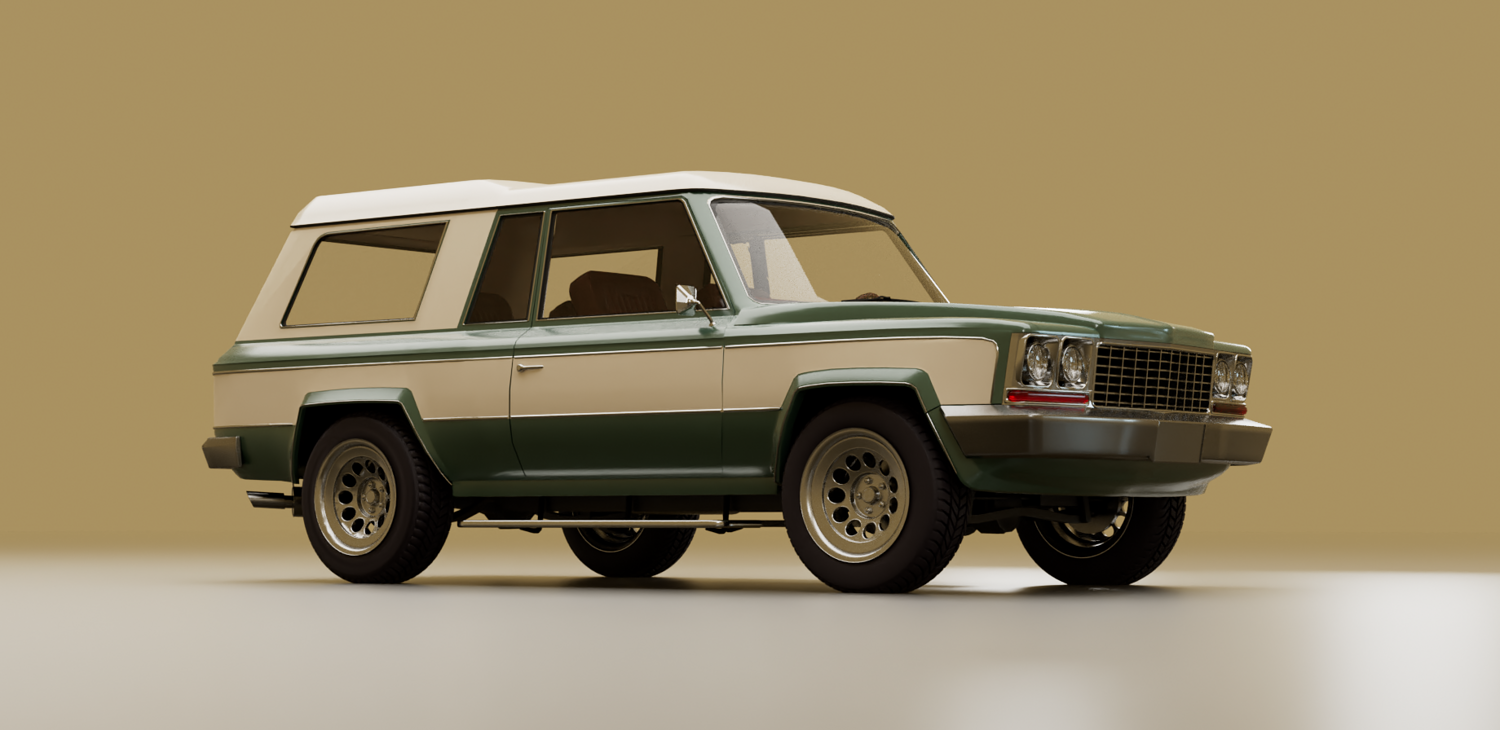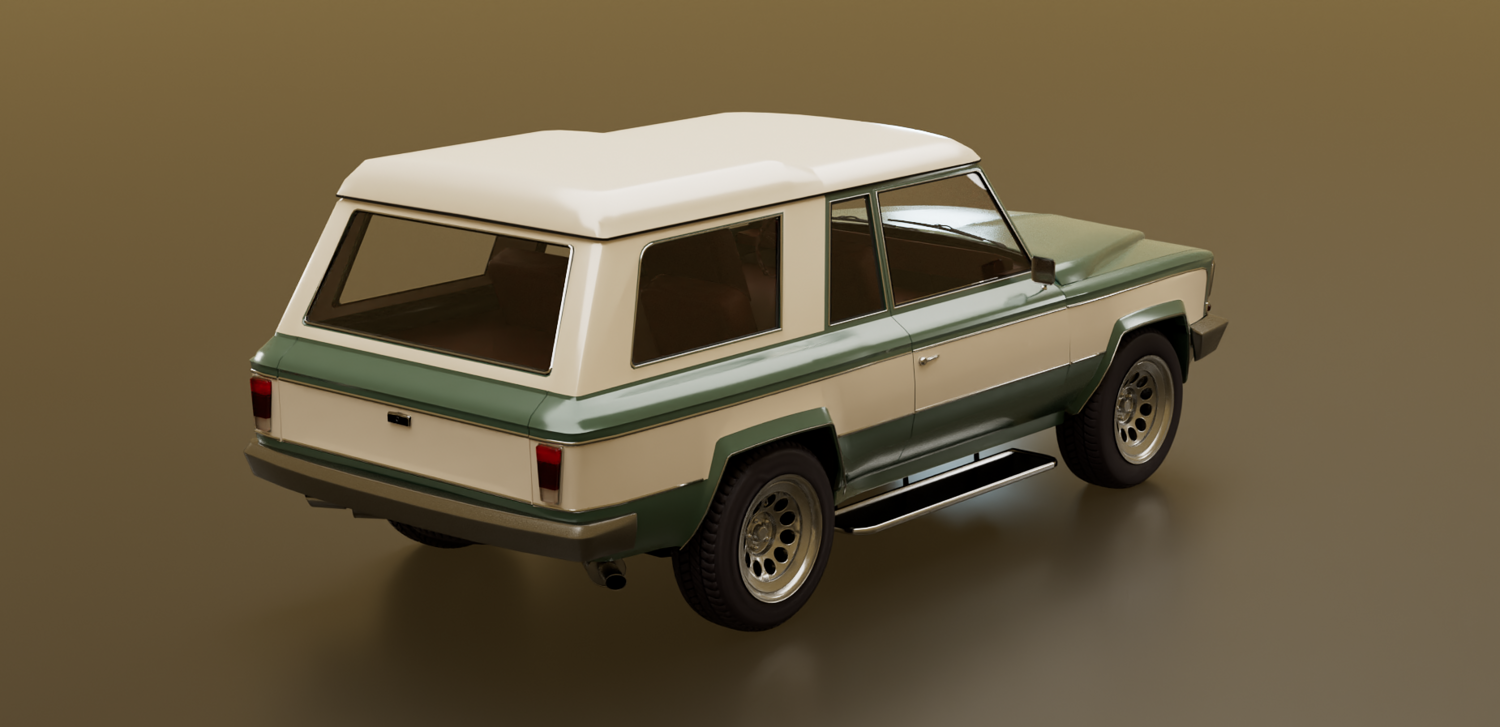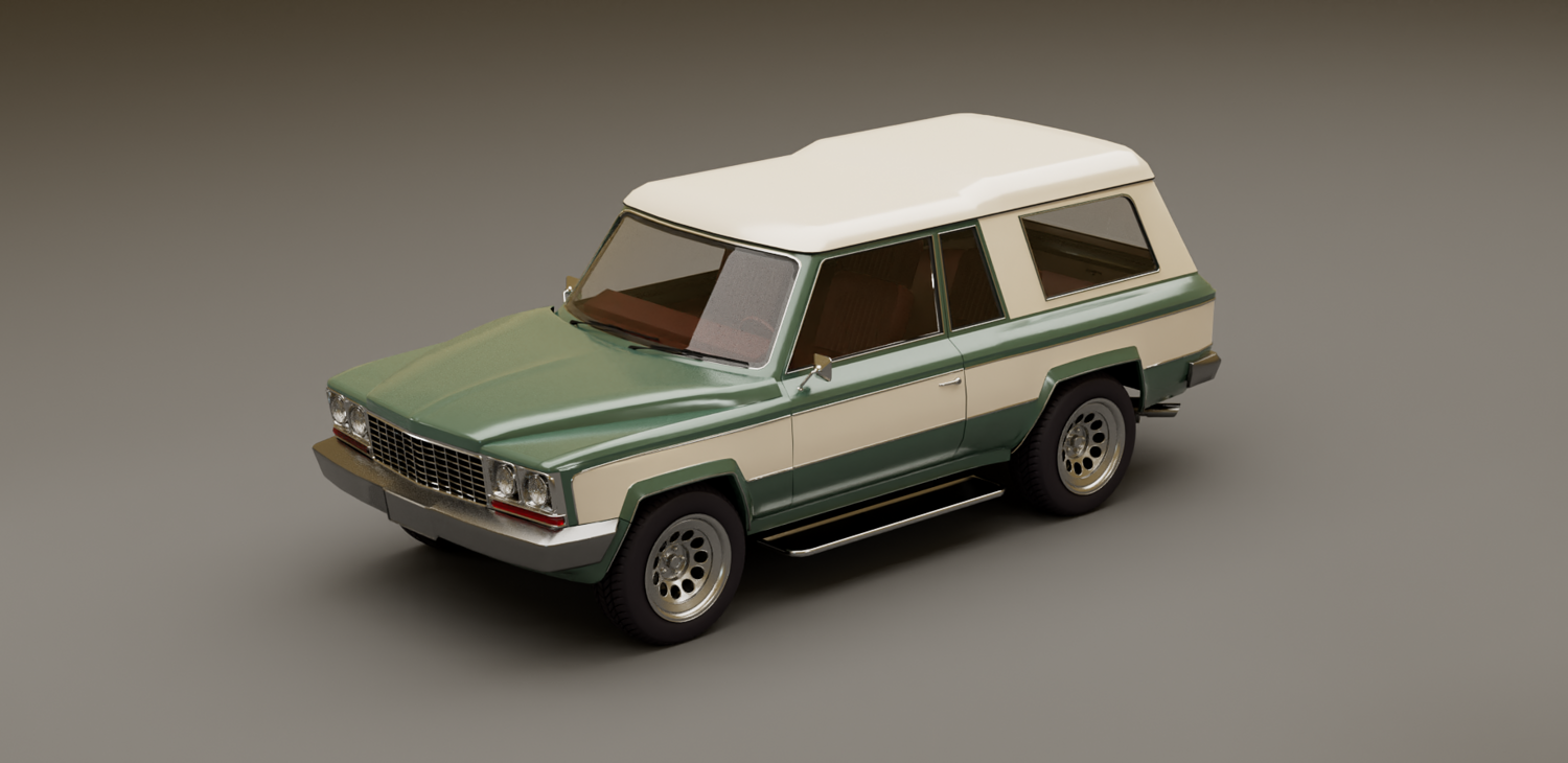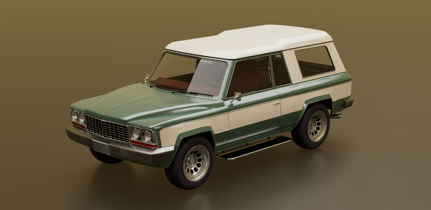 About Car: The idea of this car is further development of my generic SUV line. It is facelifted model of my previous 70s SUV ment for 70s/80s automotive car pool. Inspired by transitional 70s boxy cars and SUV's.