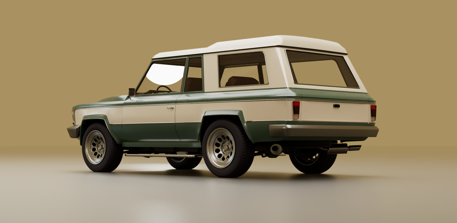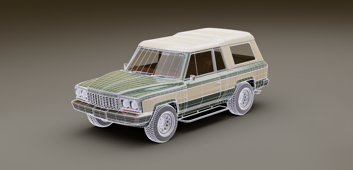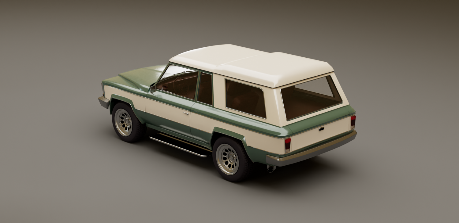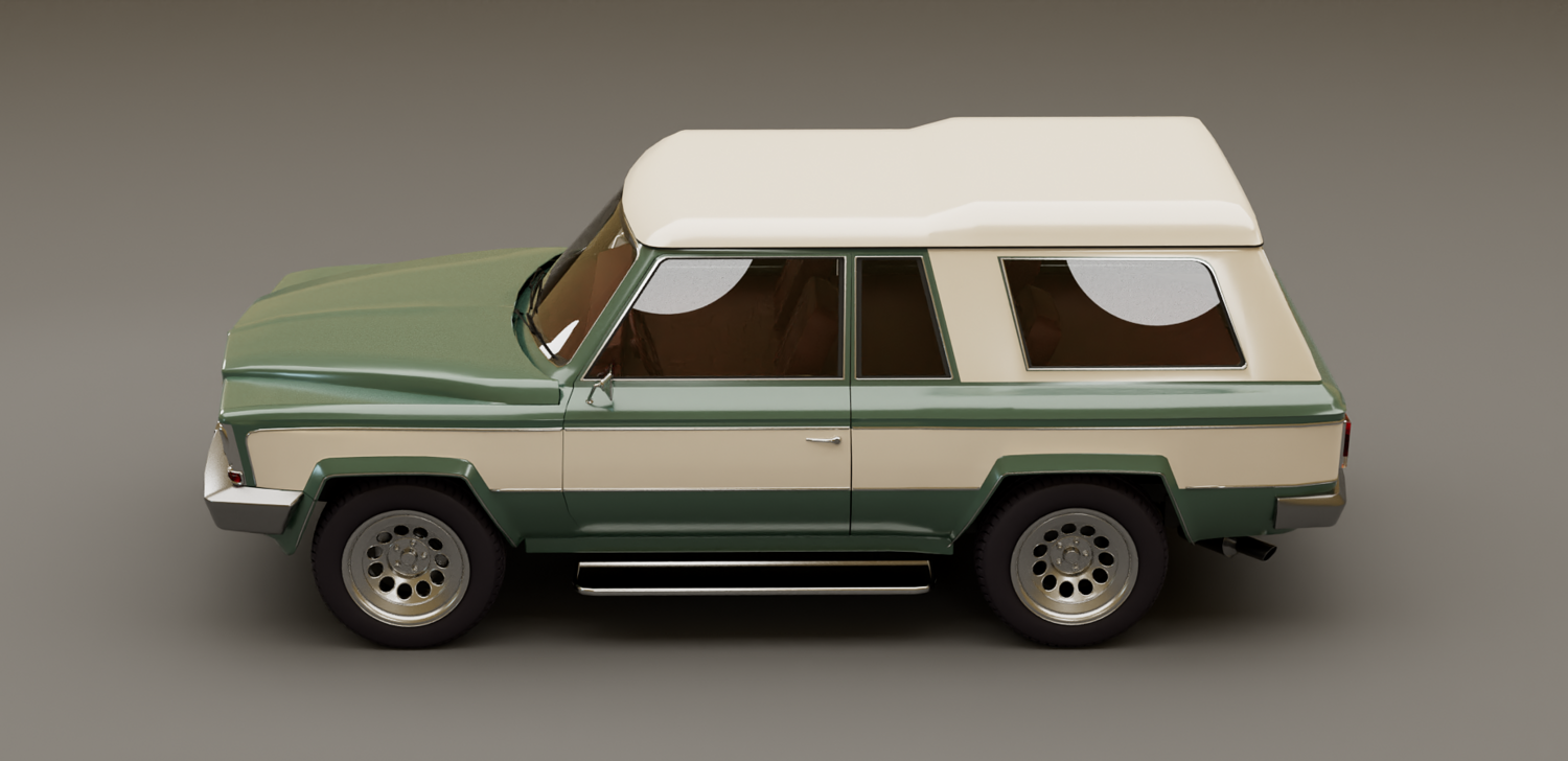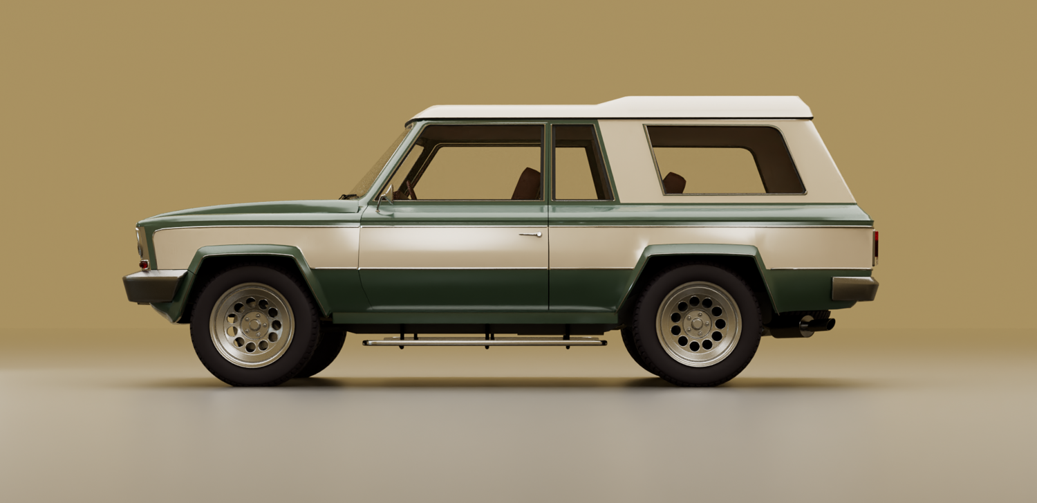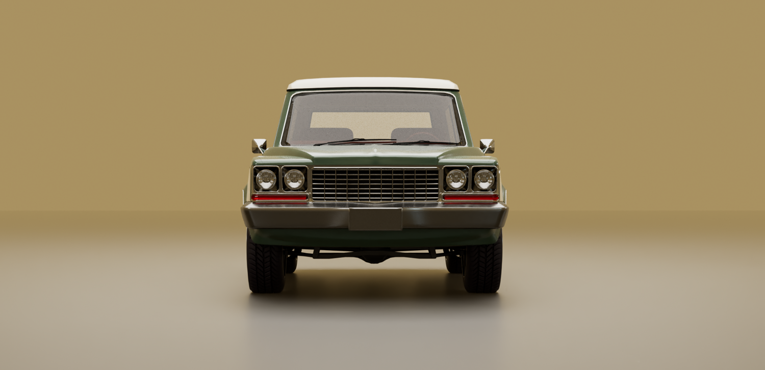 About Car: The idea of this car is further development of my generic SUV line. It is facelifted model of my previous 70s SUV ment for 70s/80s automotive car pool. Inspired by transitional 70s boxy cars and SUV's.