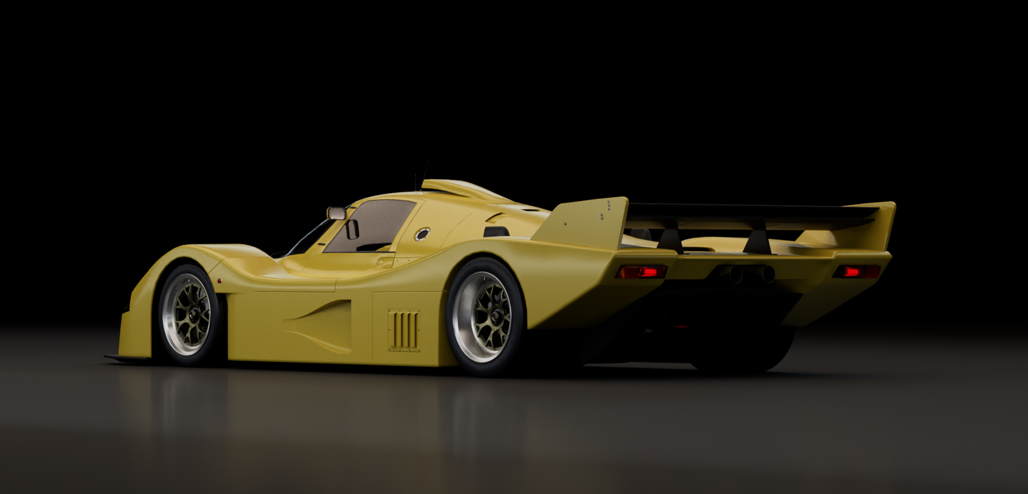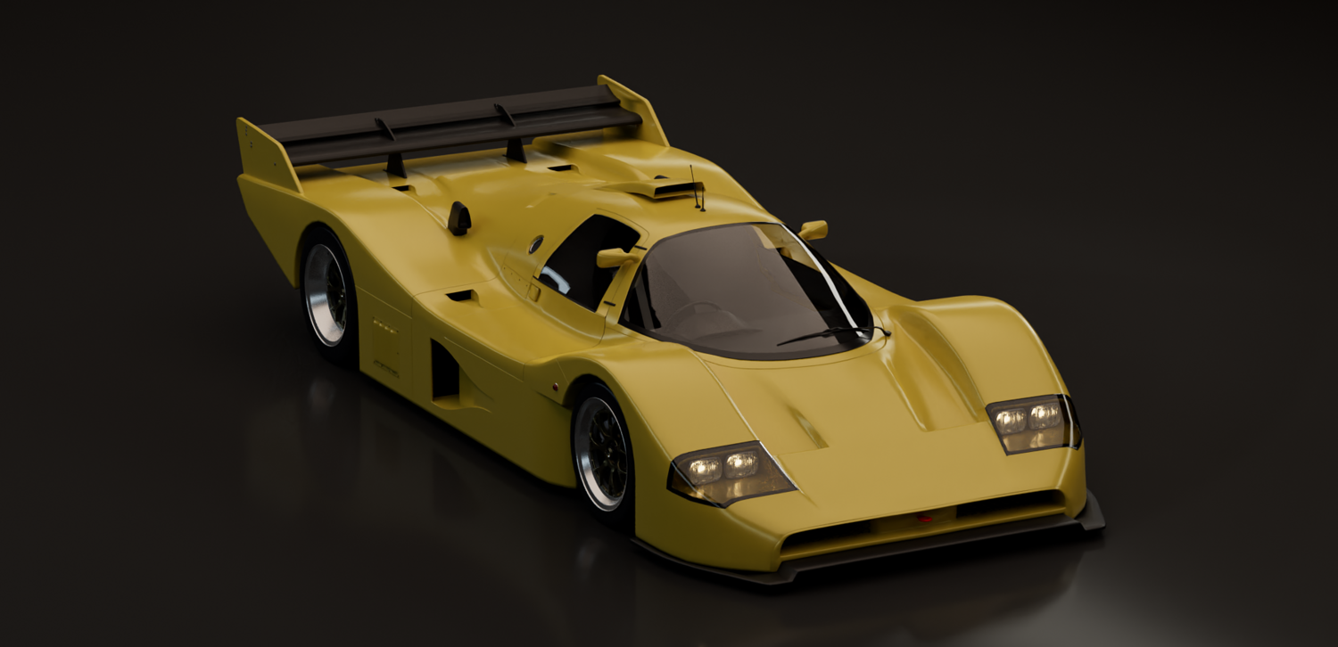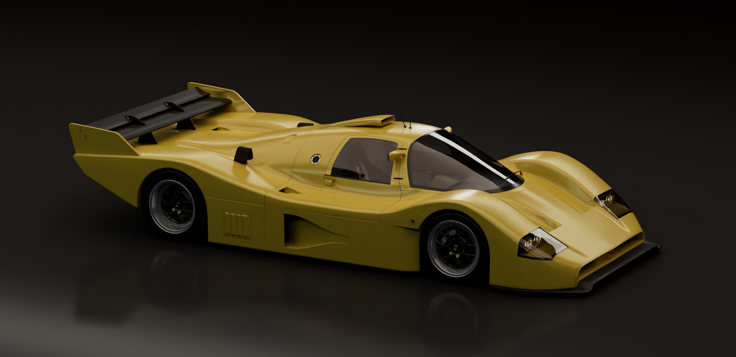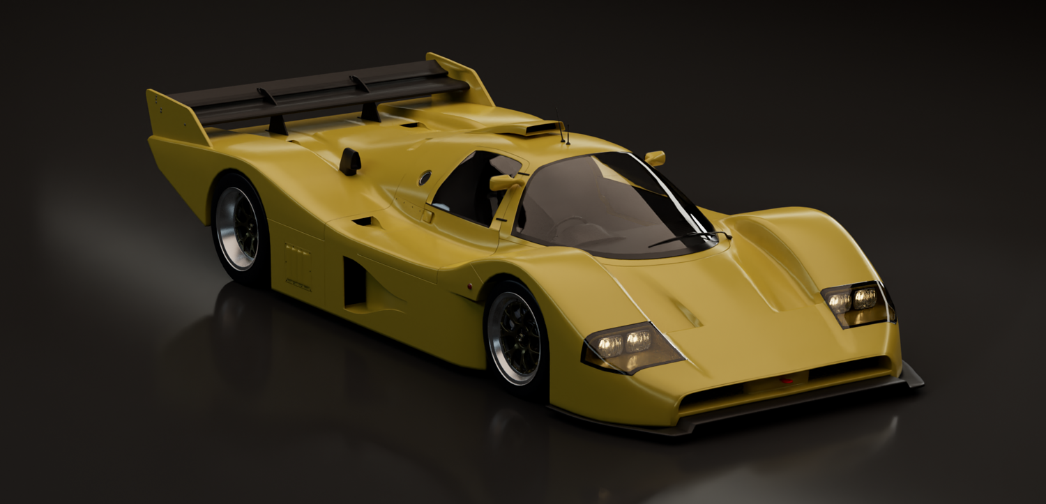 This 3D model represents a fictional late-era Group C prototype, inspired by the aerodynamic evolution of Le Mans legends. Designed for high-speed endurance circuits, this concept blends the muscular proportions and engineering purity of early 1990s prototypes with a refined, modern interpretation.