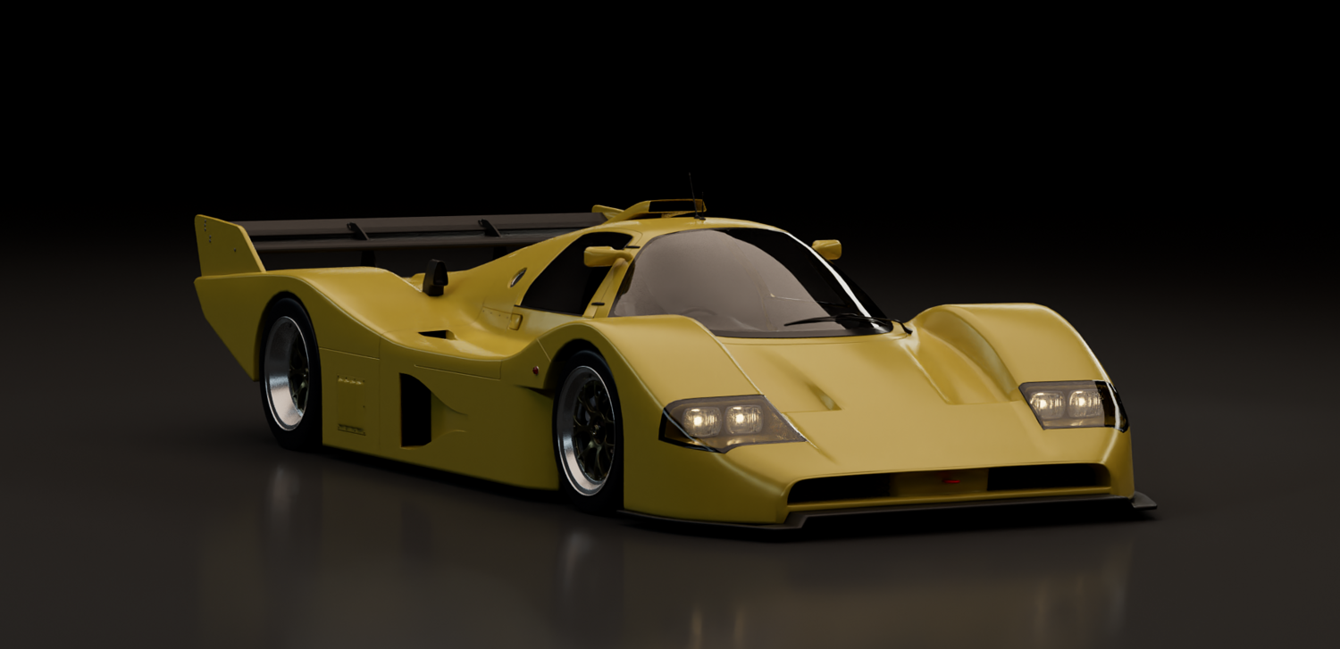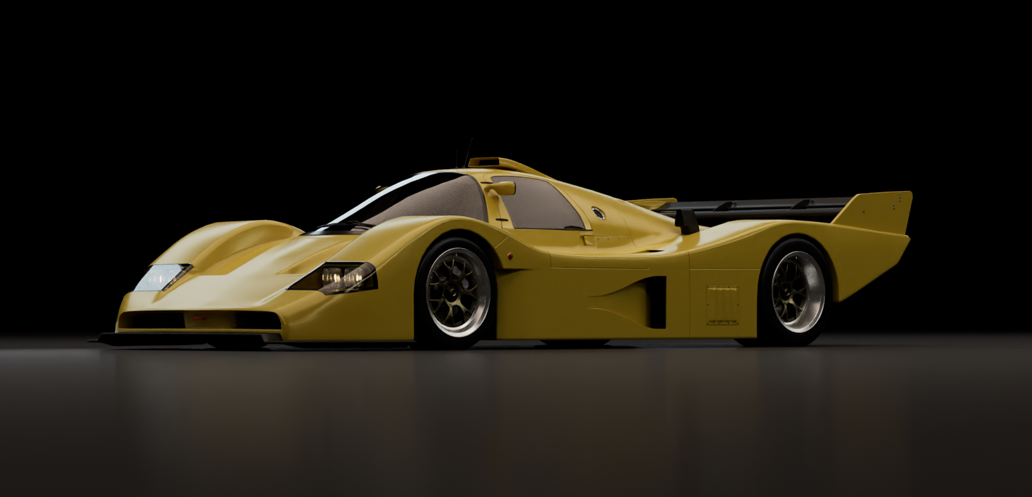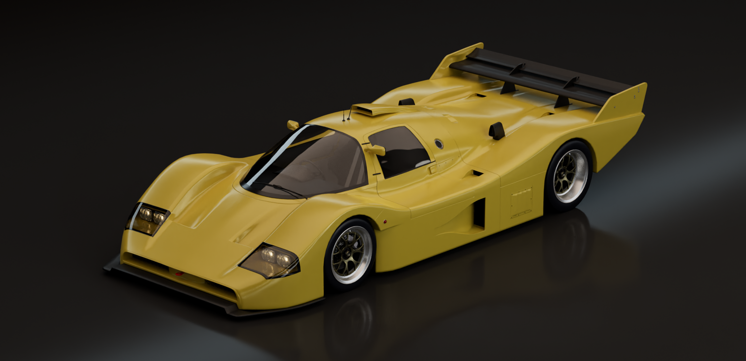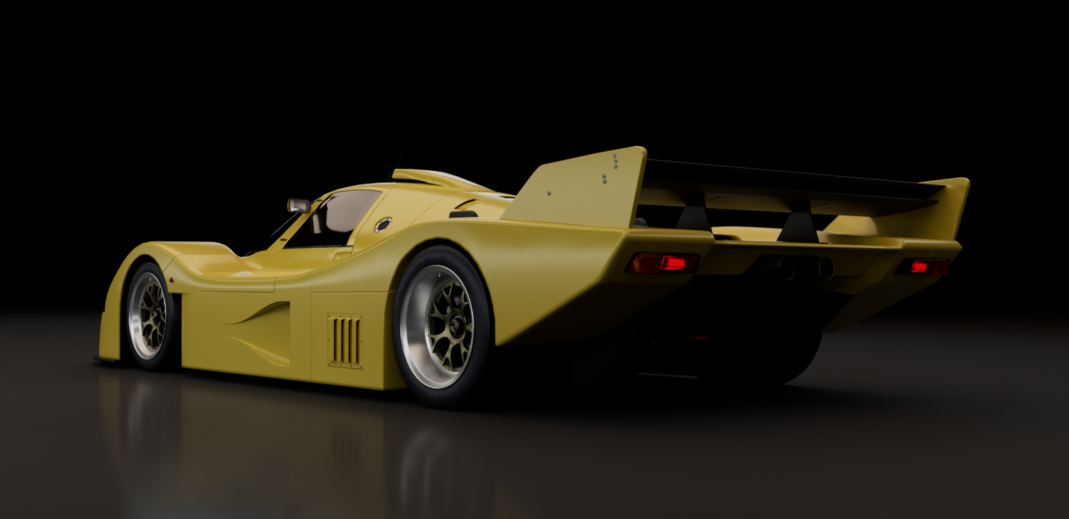 This 3D model represents a fictional late-era Group C prototype, inspired by the aerodynamic evolution of Le Mans legends. Designed for high-speed endurance circuits, this concept blends the muscular proportions and engineering purity of early 1990s prototypes with a refined, modern interpretation.