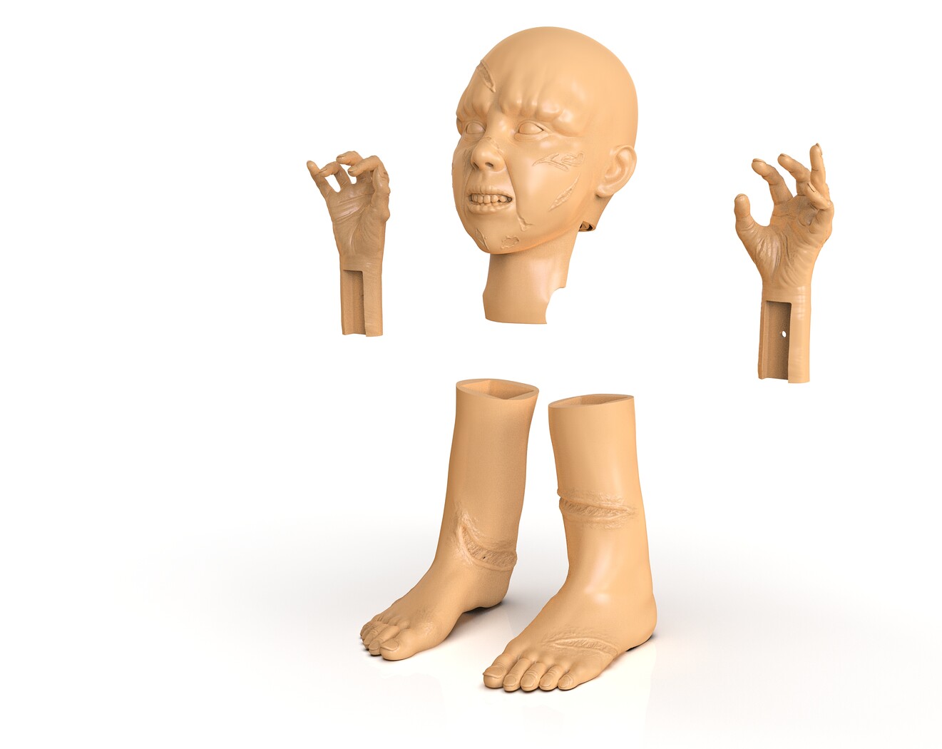 Regan MacNeil Parts Head, Feet, and Hands ready for 3D print. You can use it as a Halloween decoration or a Haunted House prop. I included the OBJ and ZBrush file.