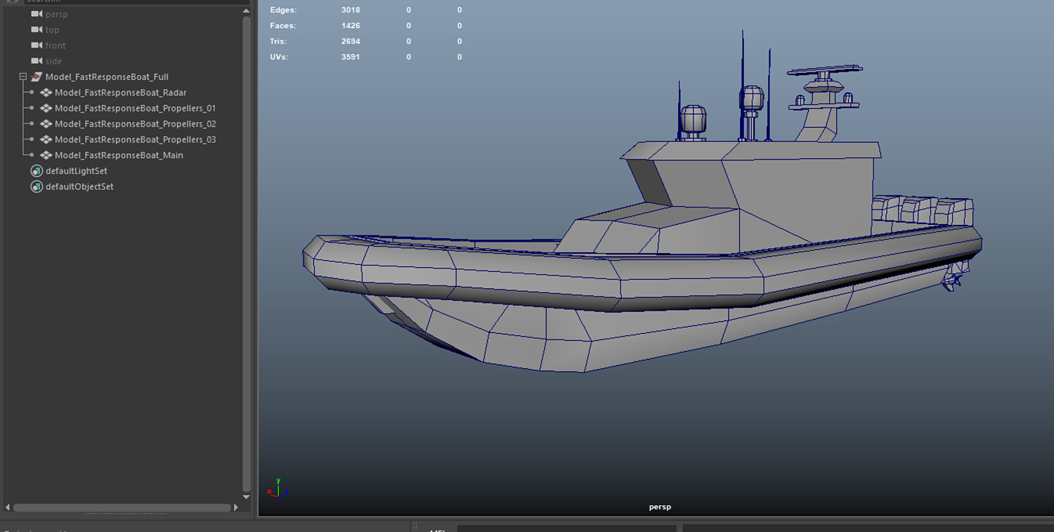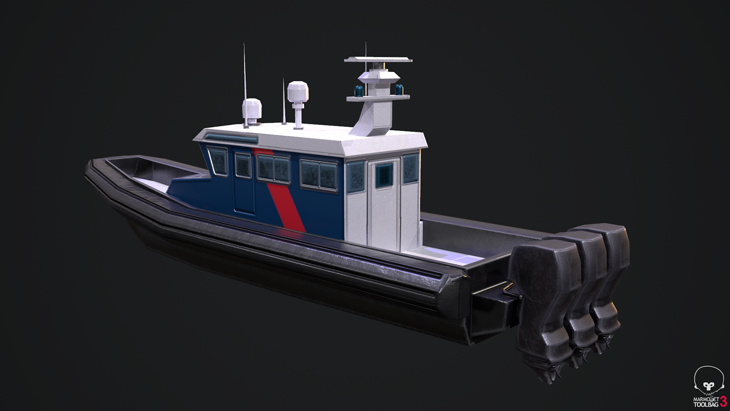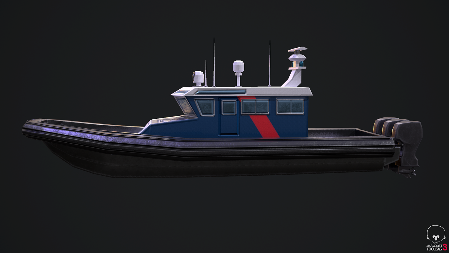 Fast Response Boat a low poly vehicle ready for an engine like Unity or Unreal ideal for a RTS, Isometric or a War Video Game it has 1654 verts 2694 tris and 3018 edges and the texture is 2048 x 2048 and includes Diffuse, Metal and Normal Map the format is .PNG and the model is available as OBJ, MB and FBX all the pieces are named If you need 3D Game Assets or STL Files I can do commission works.