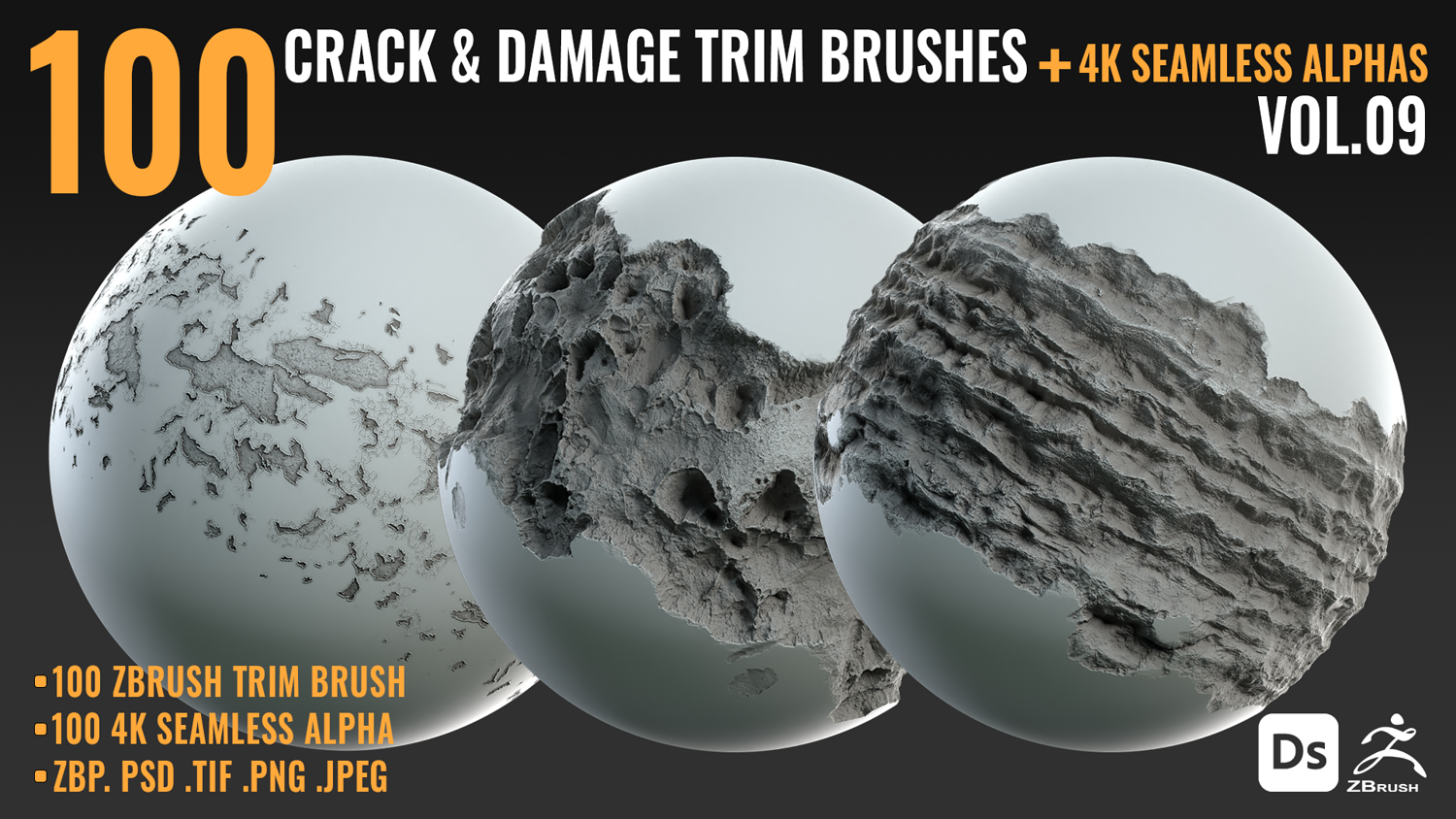 100 CRACK & DAMAGE TRIM BRUSHES + 4K SEAMLESS ALPHAS - VOL 09