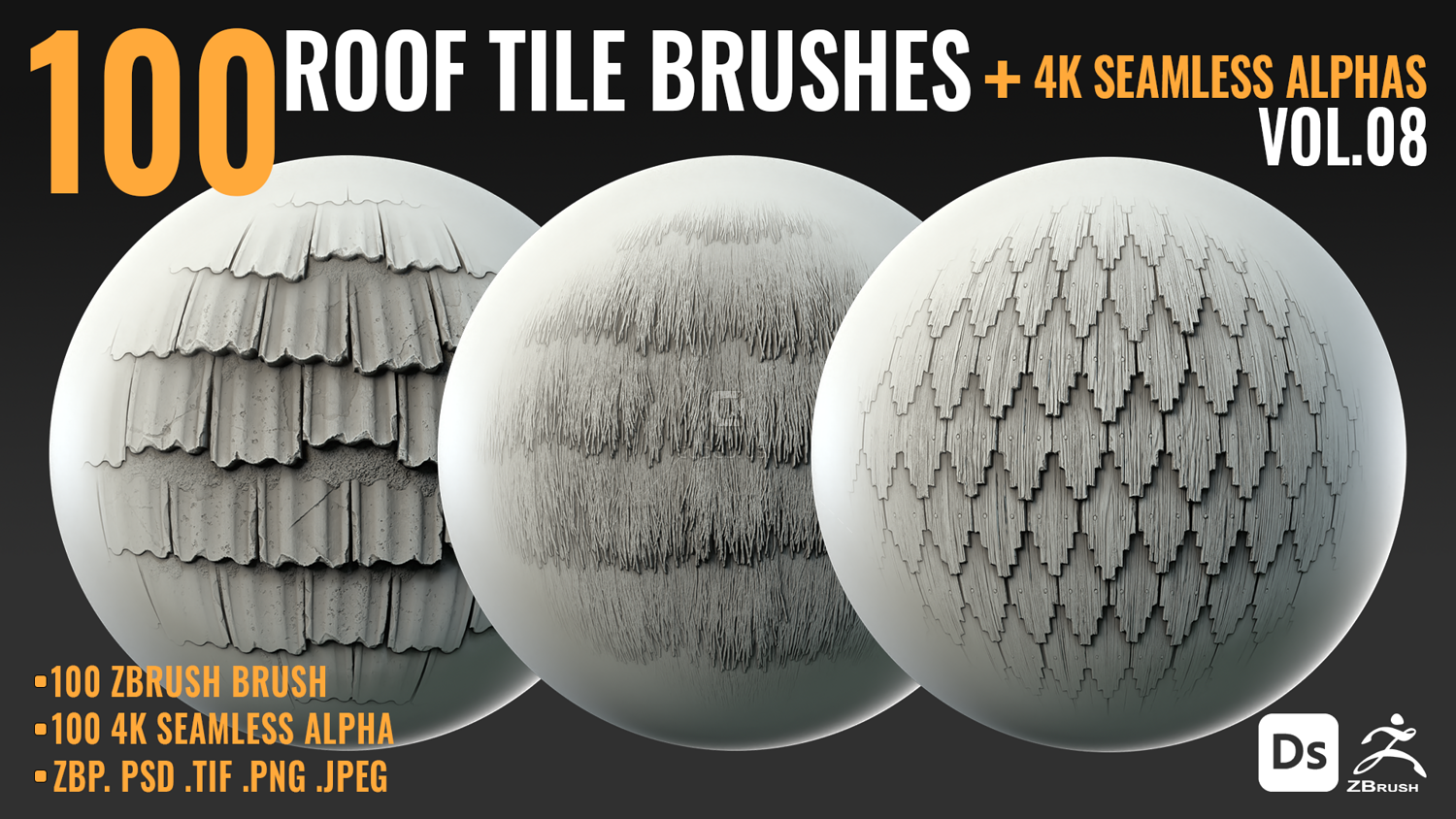 100 Roof Tile Brushes & 4K Seamless Alphas - 20 Unique Patterns ποΈβ¨ Elevate your 3D designs with this massive pack of 100 roof tile brushes and seamless alphas! Featuring 20 patterns (stone, clay, wood) with 5 variations each, perfect for ZBrush artists. ποΈ β 100 ZBrush Brushes (ZBP) in 4K resolution π¨ β 100 Seamless Alphas (PSD, TIF, PNG) in 4K with 16-bit depth πΌοΈ β 20 Patterns with 5 variations each (stone, clay, wood) πͺ¨ β High-Quality JPEG Previews included πΈ Add realistic details to your roofsβgrab this pack now! π