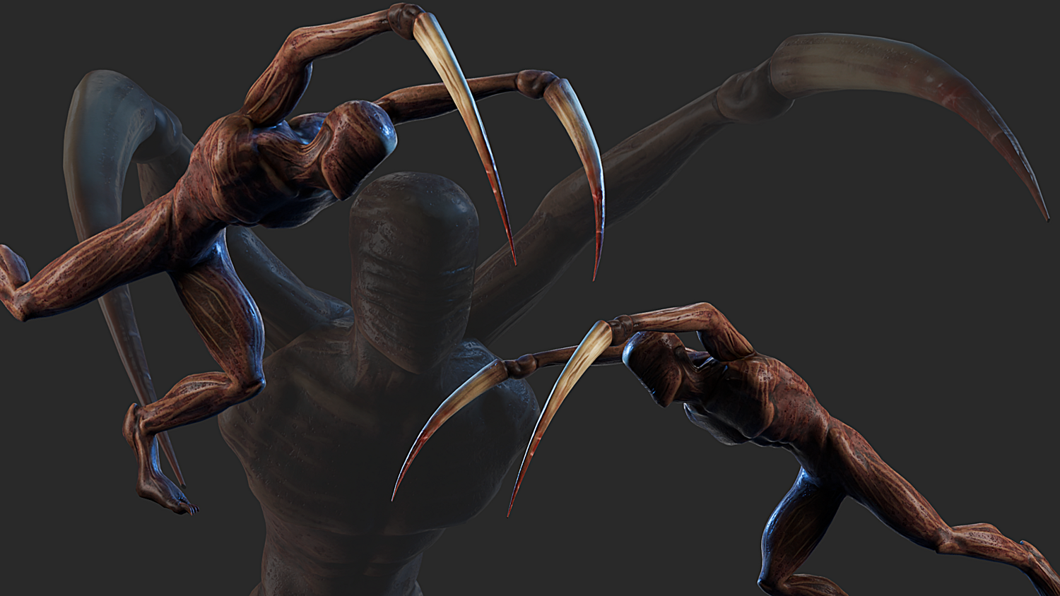 Concept Horror LowPoly Character. This creature was designed with inspiration from classic horror games of the past, capturing the eerie and unsettling atmosphere typical of iconic titles from the genre. This demon may seem harmless when it folds its limbs, but it’s capable of suddenly pulling them out to tear you apart! Perhaps it wouldn’t be out of place in a horror game. Made in Blender, textures in Substance Painter. Centered at origin in real world scale. Clean UVs, fully unwrapped. Materials and textures 4k.