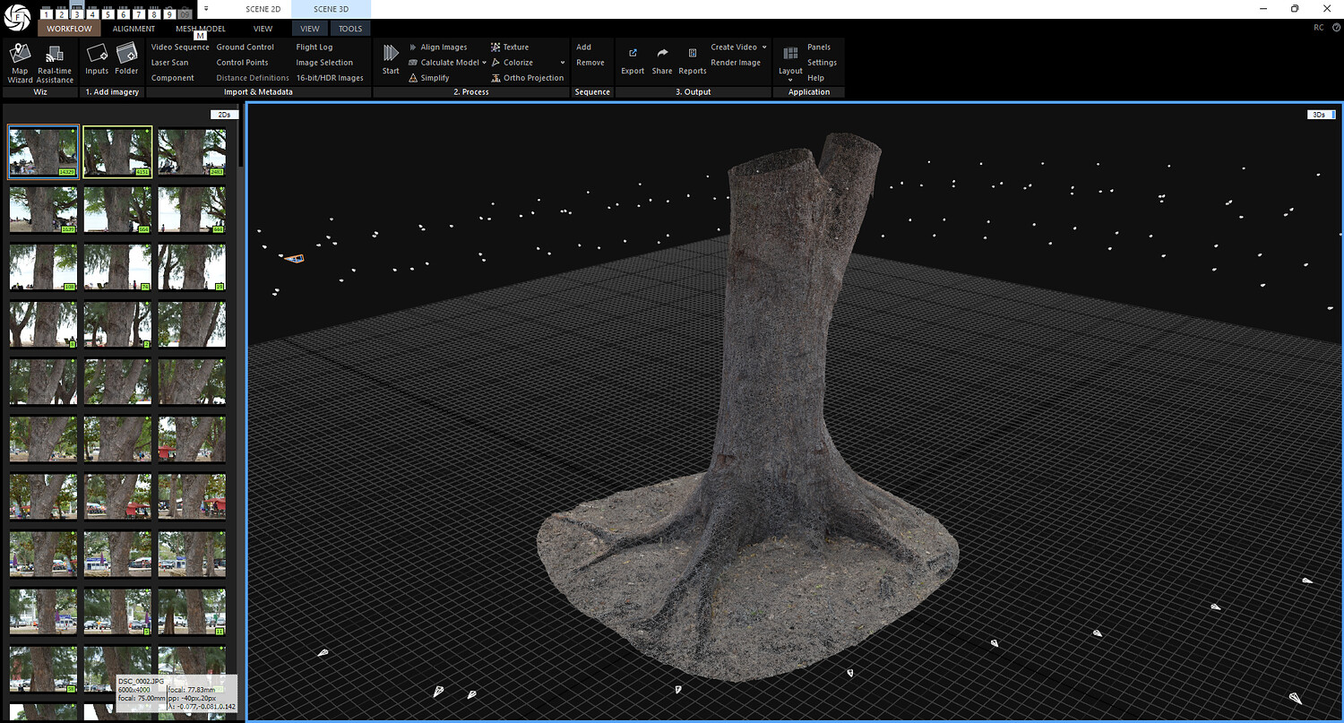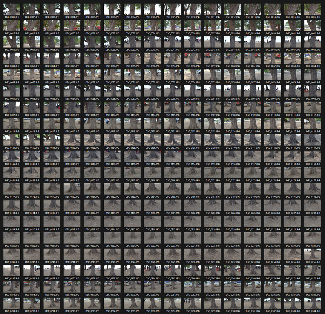 With over 300 photos, this dataset ensures an extremely dense Point Cloud. This significantly reduces blur and noise in deep crevices of the bark, providing you with a much cleaner and more accurate reconstruction.