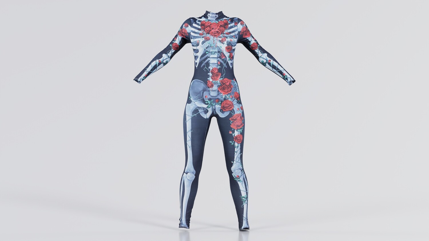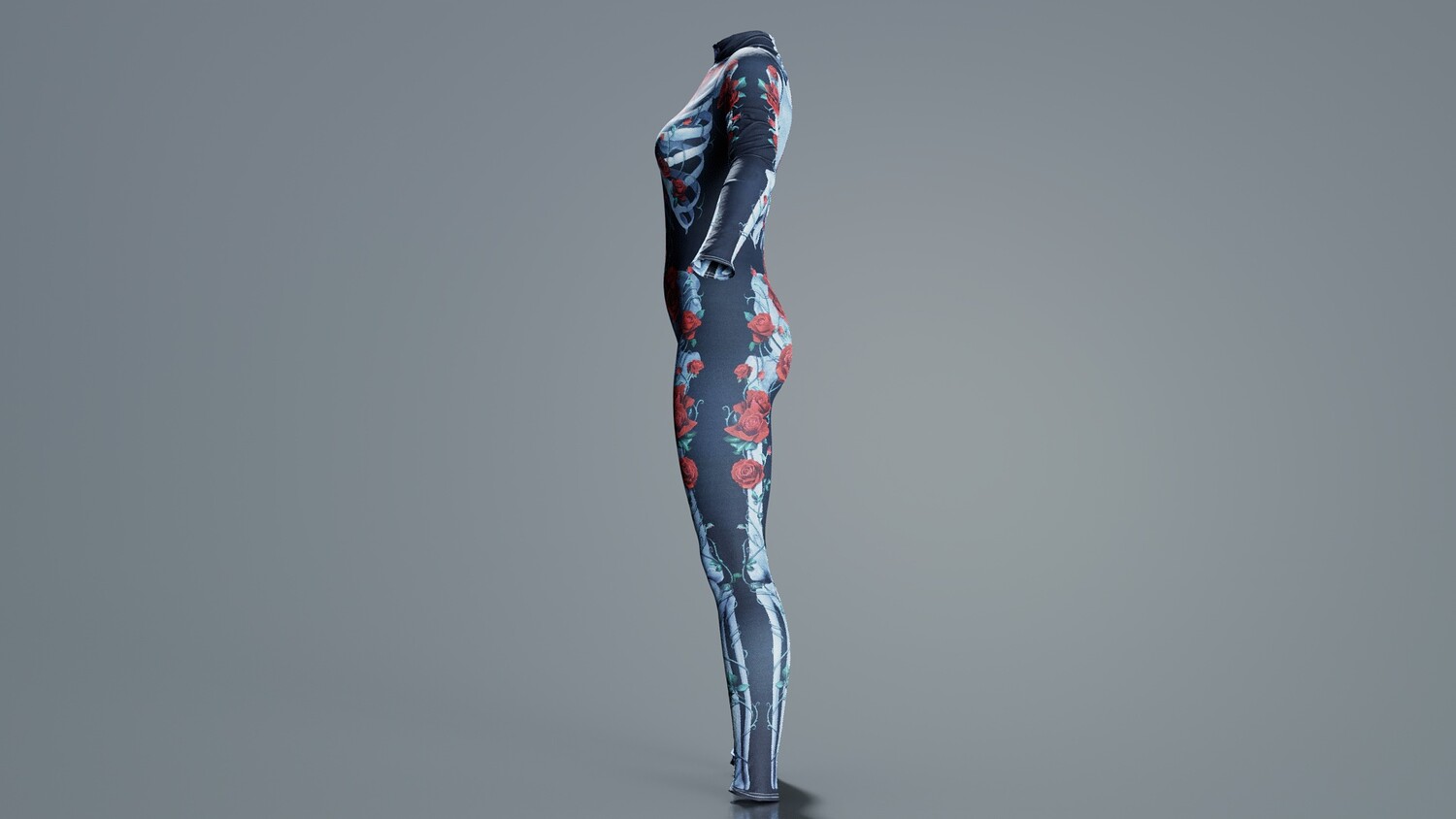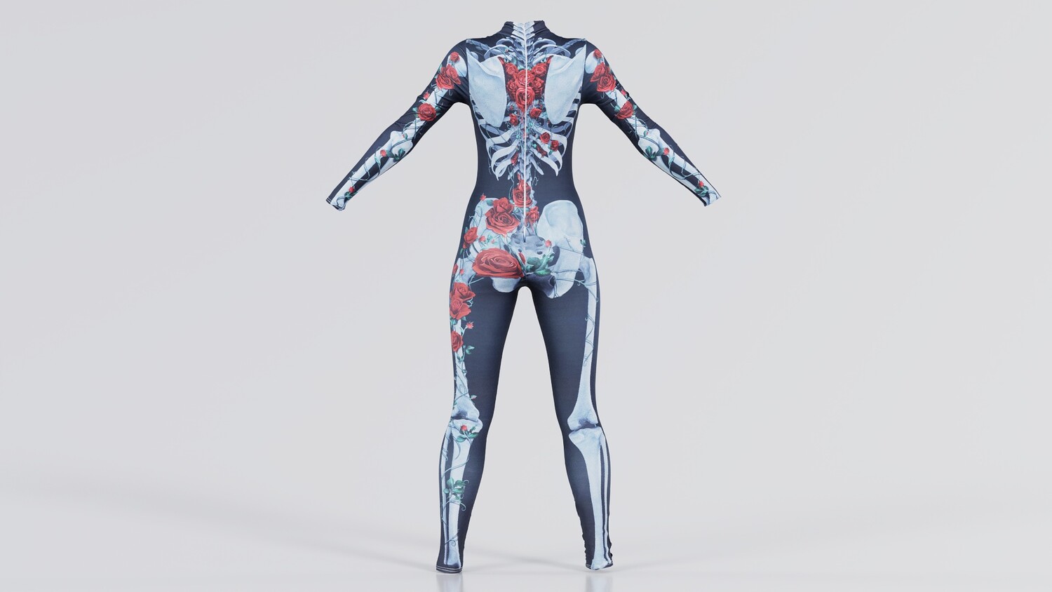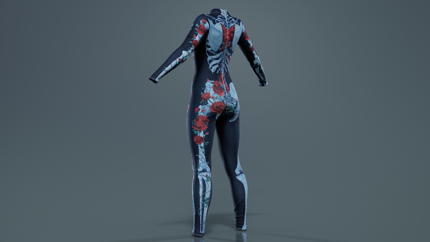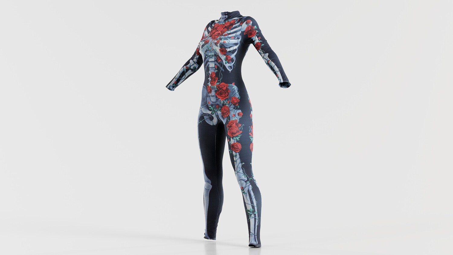 Model Tags: apparel, body, catsuit, character, clothes, clothing, costume, designer, digitized, female, full, girl, human, lady, outfit, photogrammetry, rose, roses, skeleton, woman