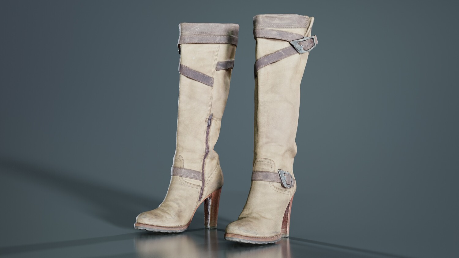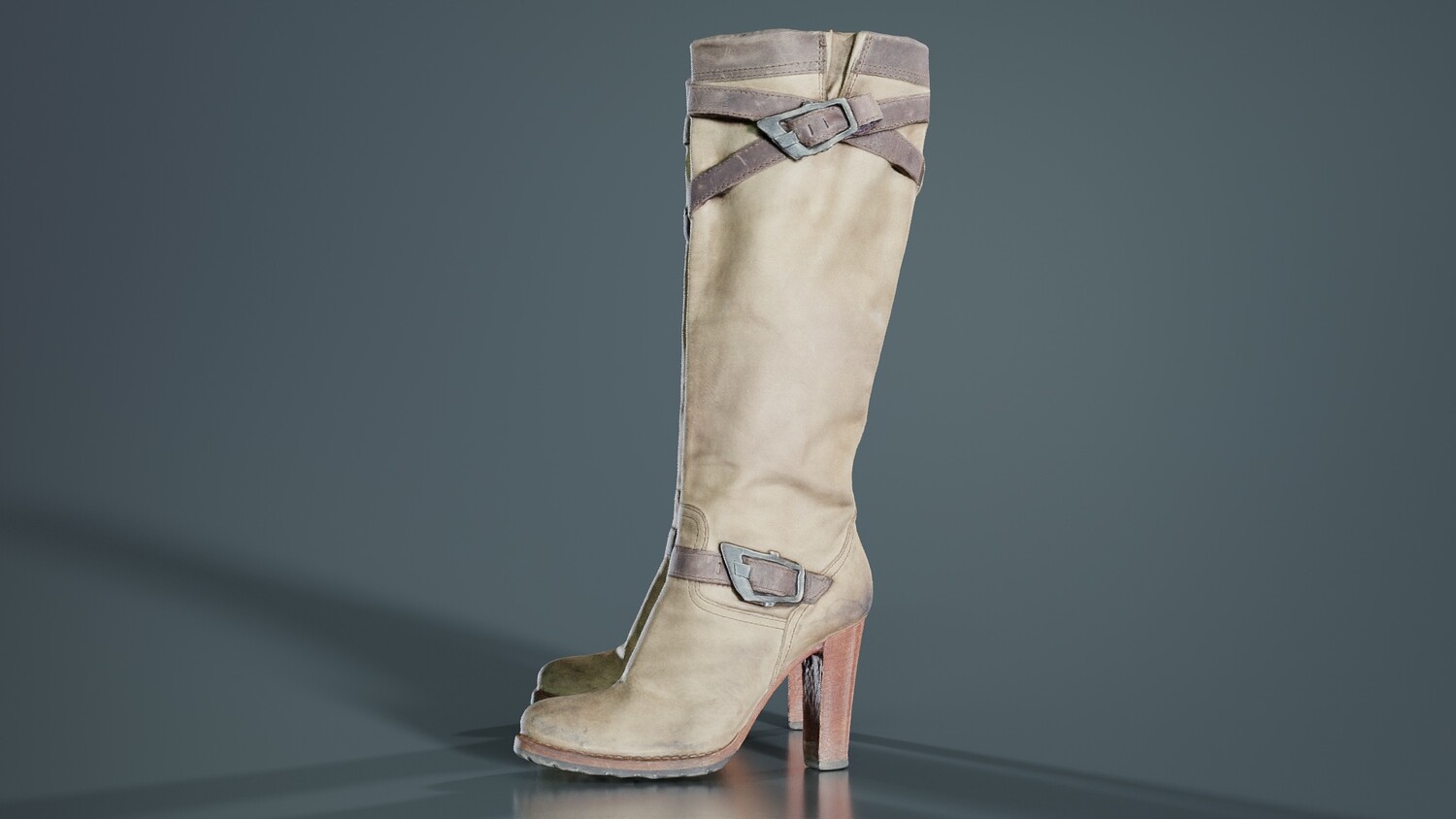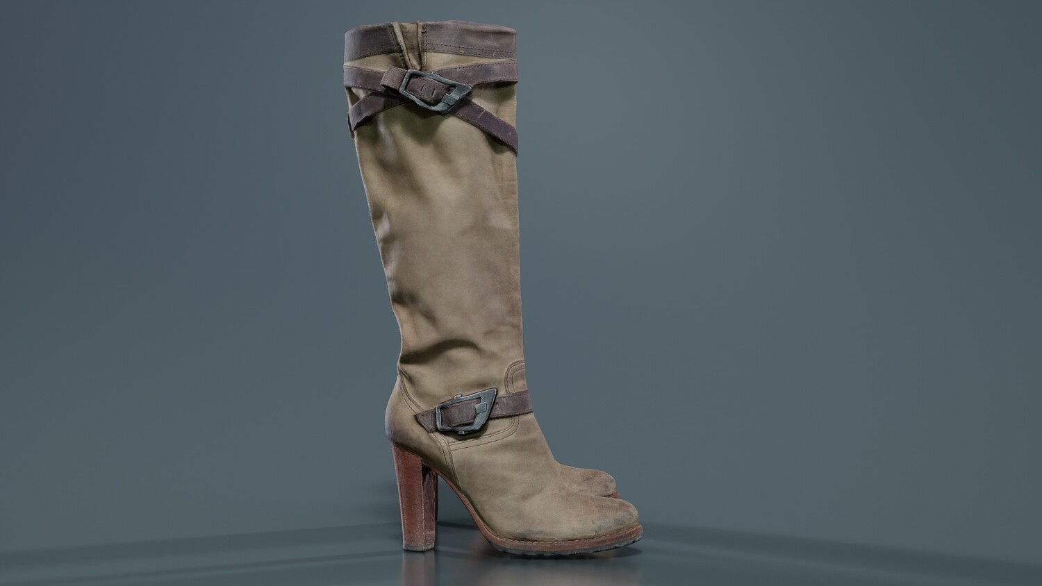 Polygonal Miniatures presents brown zipper wood boots, a model from our 3D scanned catalogue. The model, a pair of brown boots with buckles, is obtained by photogrammetry, and scanned using SLR camera's. Processing takes place in Zbrush and Photoshop and the resulting 3D model has unwrapped, non overlapping UV's, and a texture and normal map. Before publishing, we make sure the model has real world scale (meters), correct shader setup and is centered at the origin. Apart from the various file formats, we also offer a Blender file with material and textures set-up, ready for export and rendering. More info can be found below: