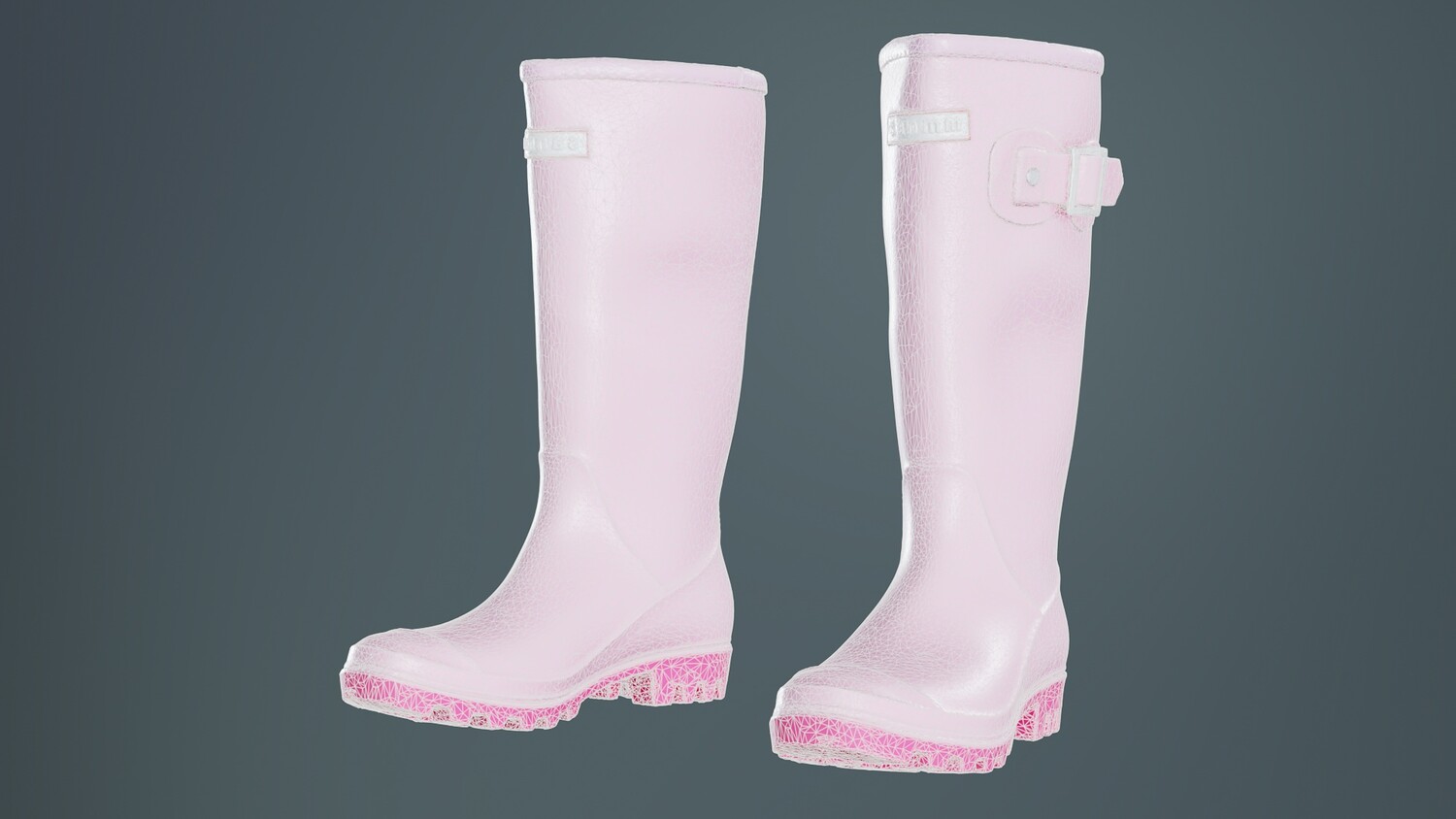 Model Tags: apparel, boots, buckles, character, clothes, clothing, designer, female, foot, footwear, girl, human, lady, leg, pair, pink, rain, rubber, shoe, woman