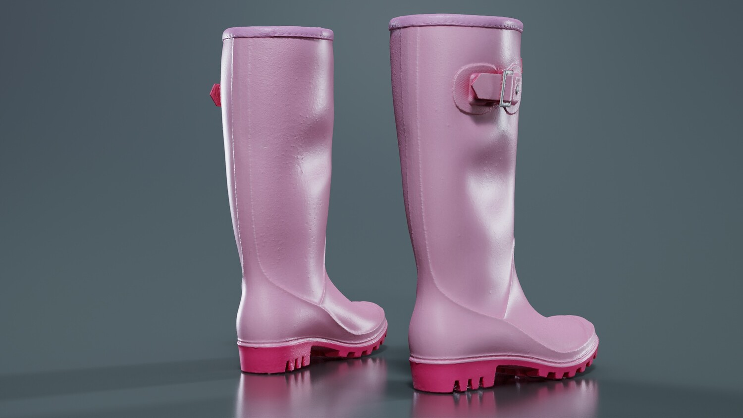 Polygonal Miniatures presents rain boots, a model from our 3D scanned catalogue. The model, a pair of pink rubber boots with buckles, is obtained by photogrammetry, and scanned using SLR camera's. Processing takes place in Zbrush and Photoshop and the resulting 3D model has unwrapped, non overlapping UV's, and a texture and normal map. Before publishing, we make sure the model has real world scale (meters), correct shader setup and is centered at the origin. Apart from the various file formats, we also offer a Blender file with material and textures set-up, ready for export and rendering. More info can be found below: