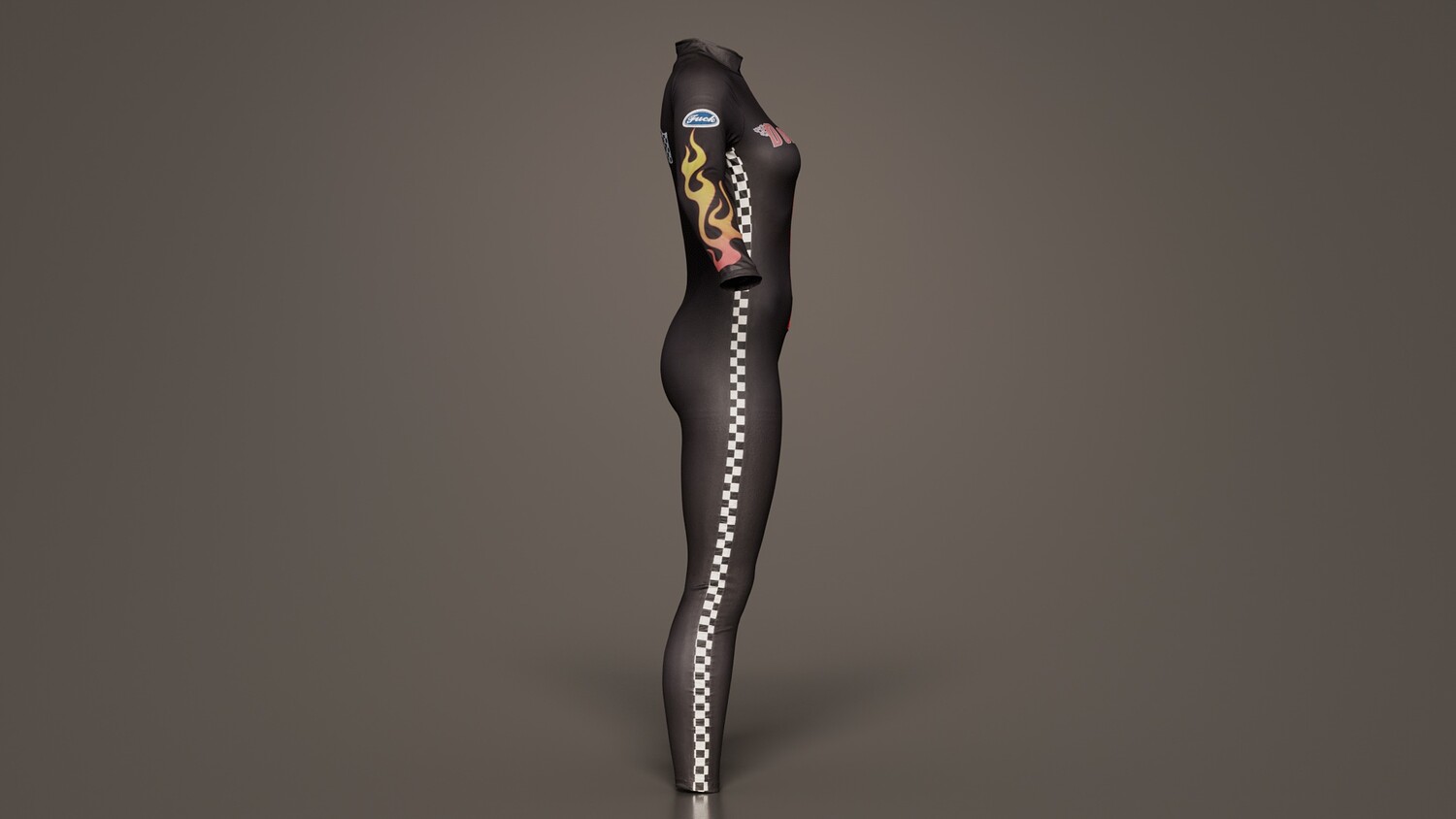 Model Tags: apparel, bitch, black, body, catsuit, character, clothes, clothing, designer, female, full, girl, hot, human, lady, logo, outfit, red, wetsuit