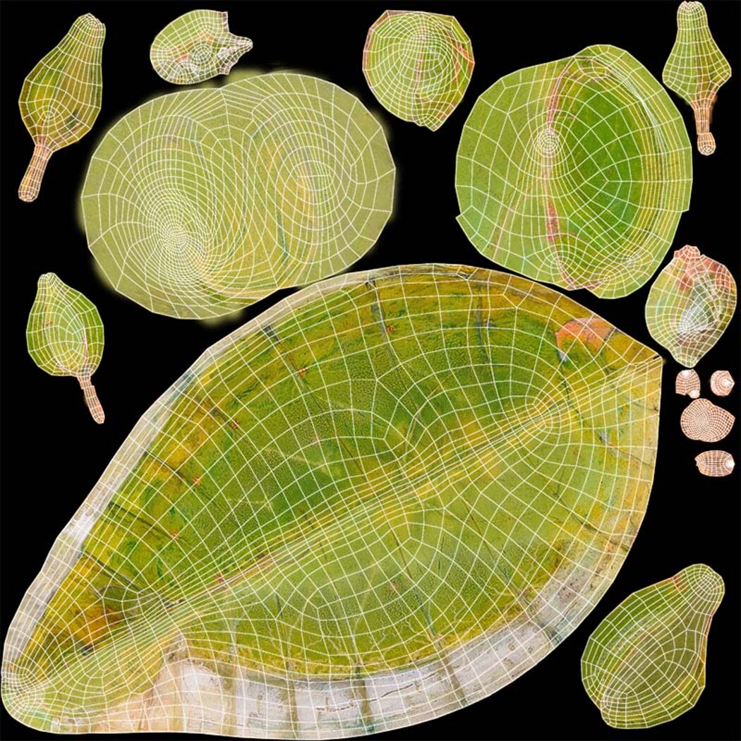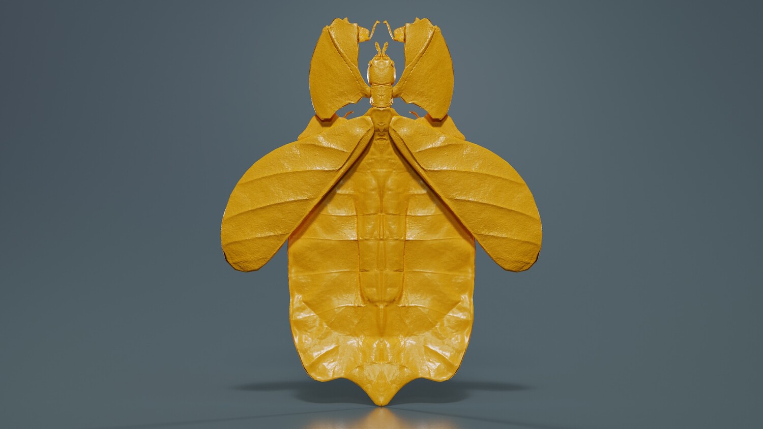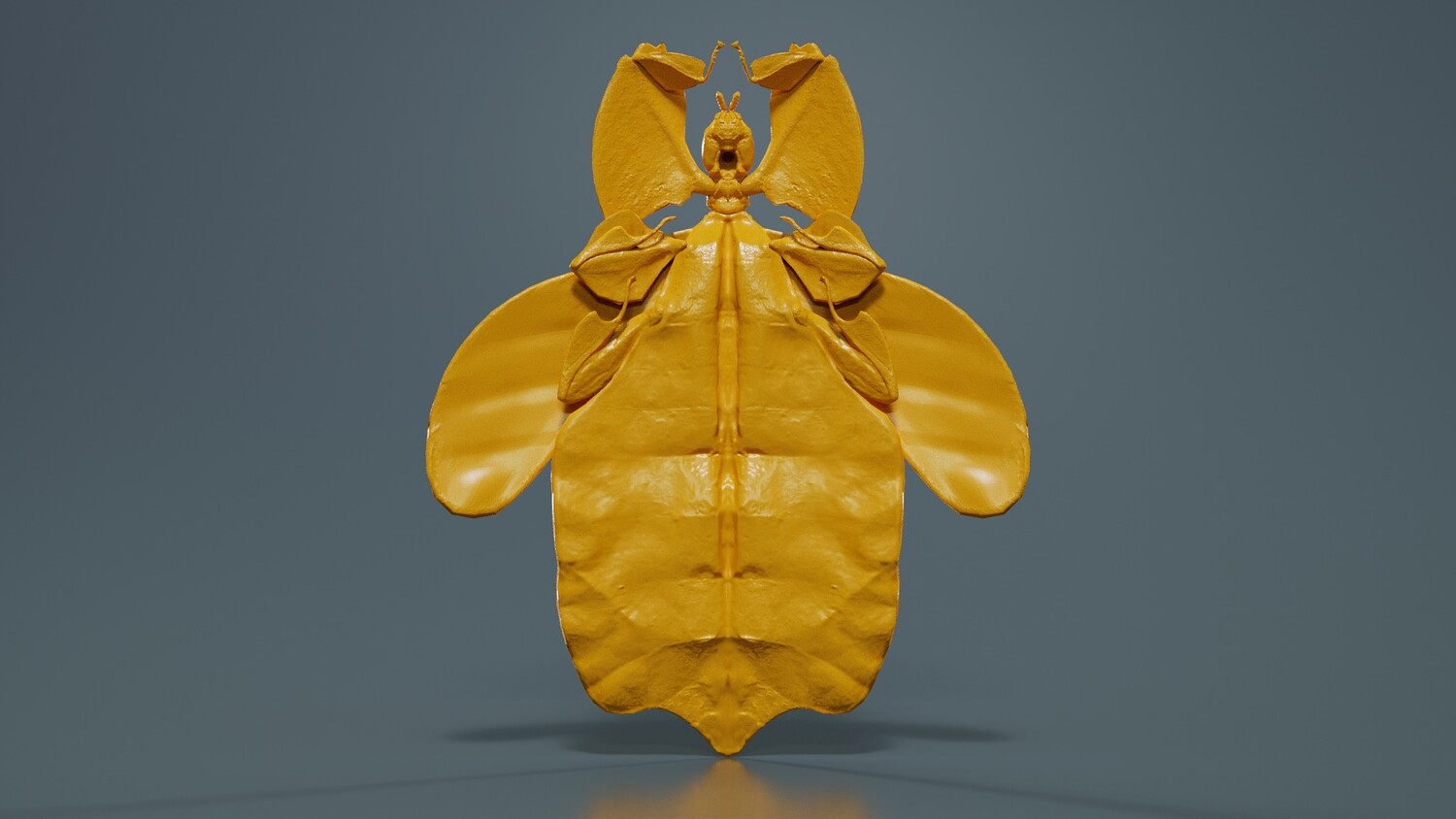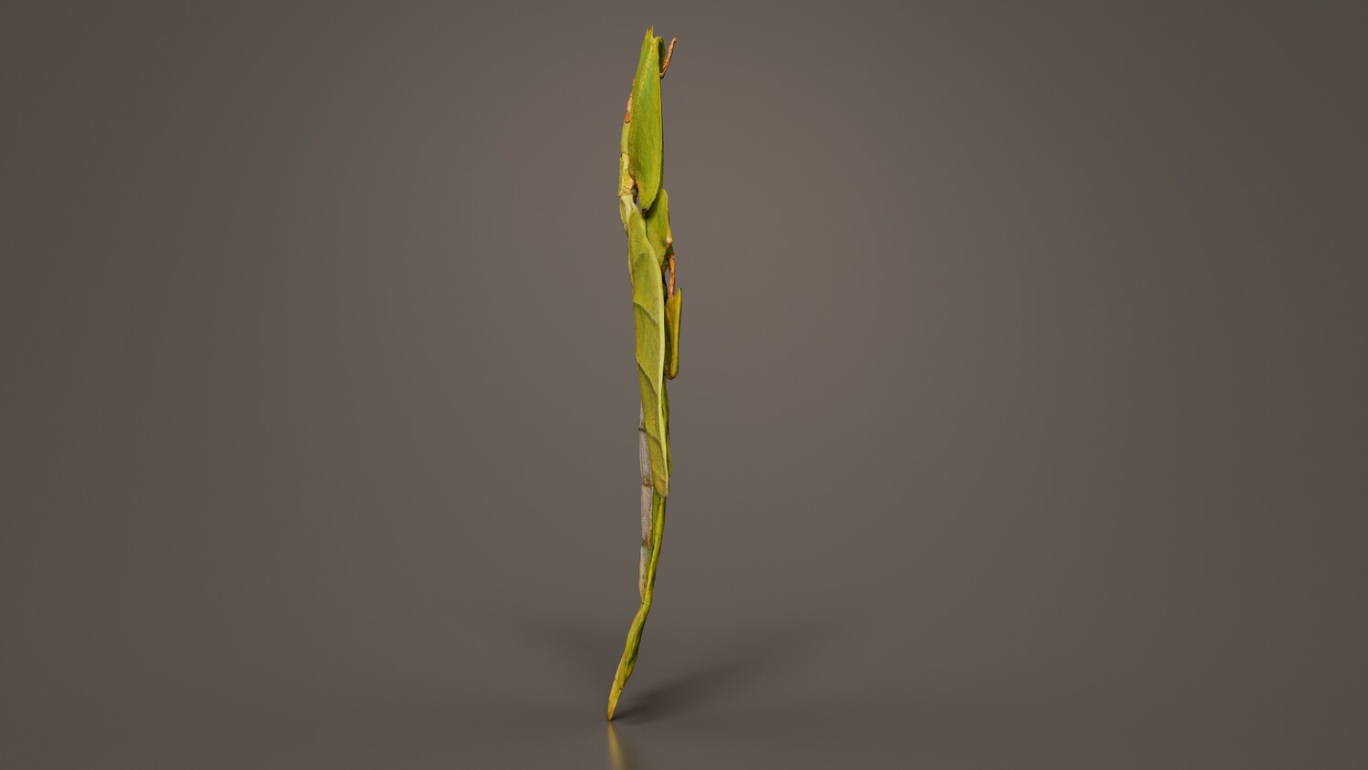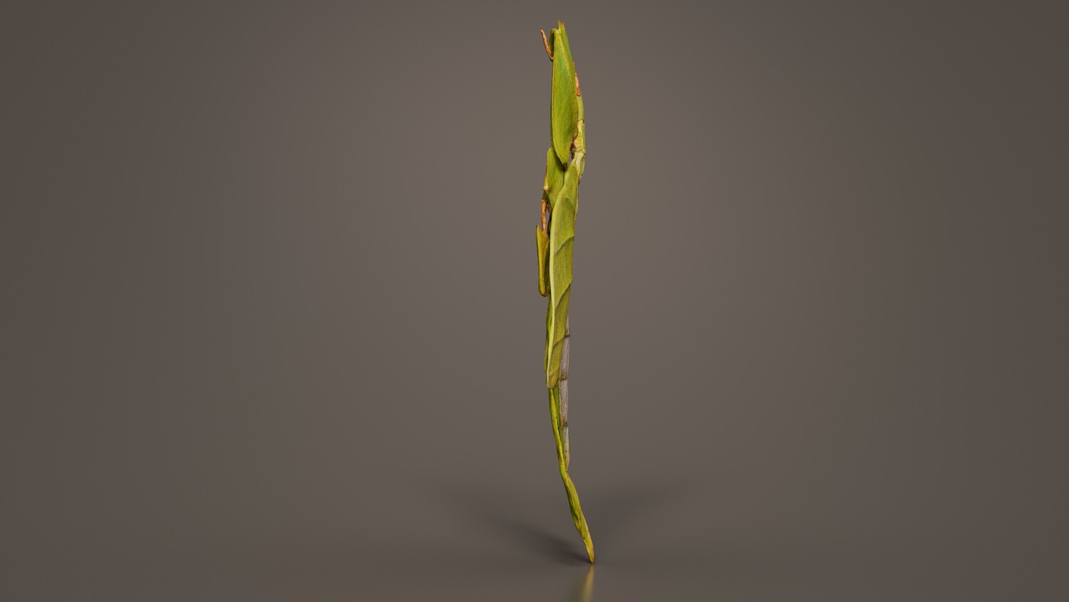 3D scanned model featuring a green insect with a white body and a head. This model, walking leaf phylliidae leaf insect, has been created using photogrammetry from a real world object. The raw scan data has been cleaned, retopologized and UV-unwrapped using Zbrush. The result is a low poly mesh with baked maps. The .obj and .mtl are configured so that maps will load automatically in the shader (tested in Blender). In addition, a Blender scene is provided with the model and shader already set up for rendering and export. Detailed information below: