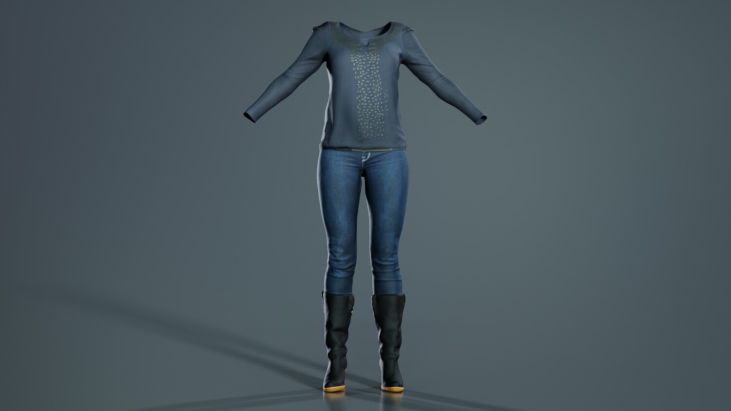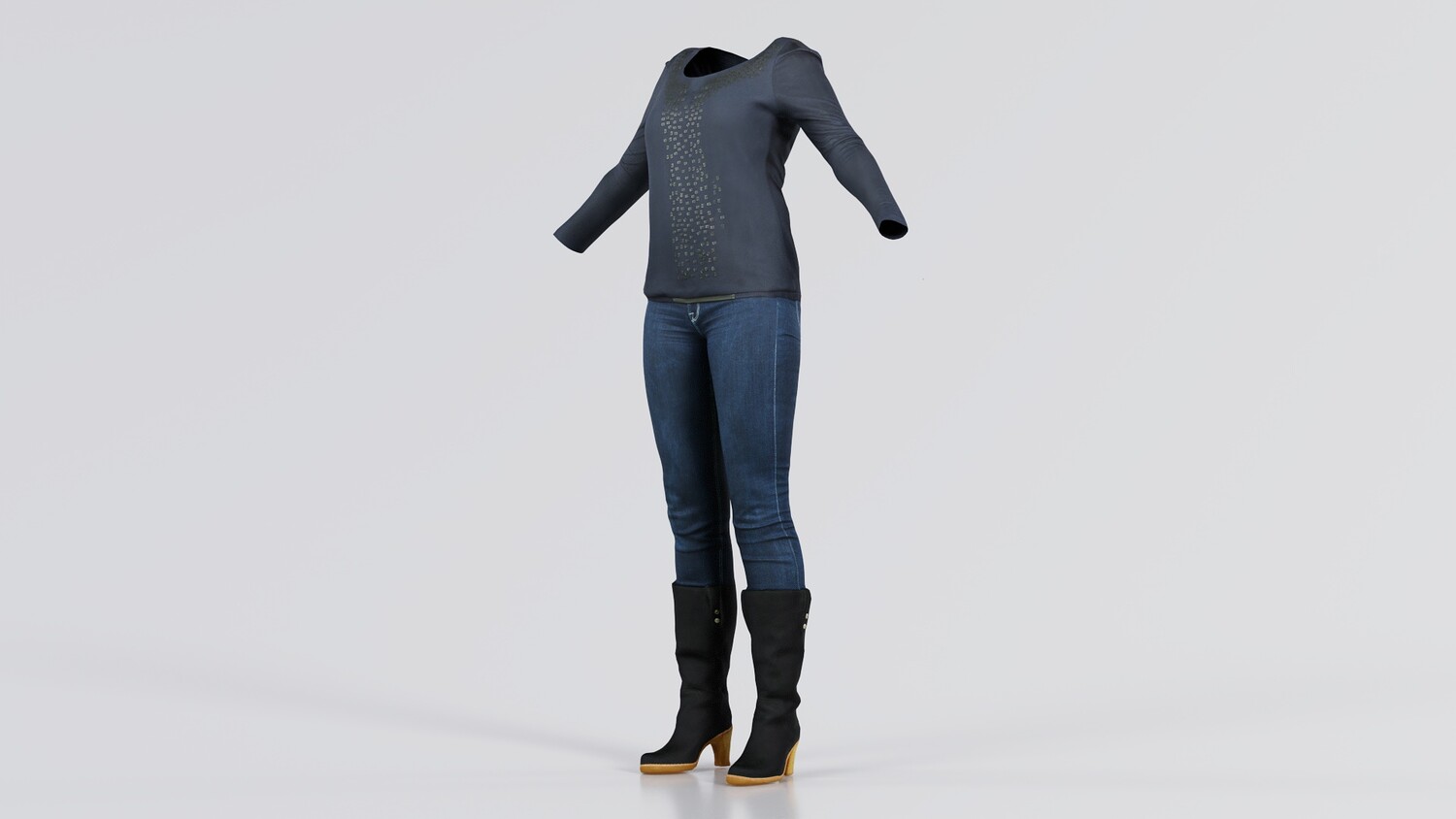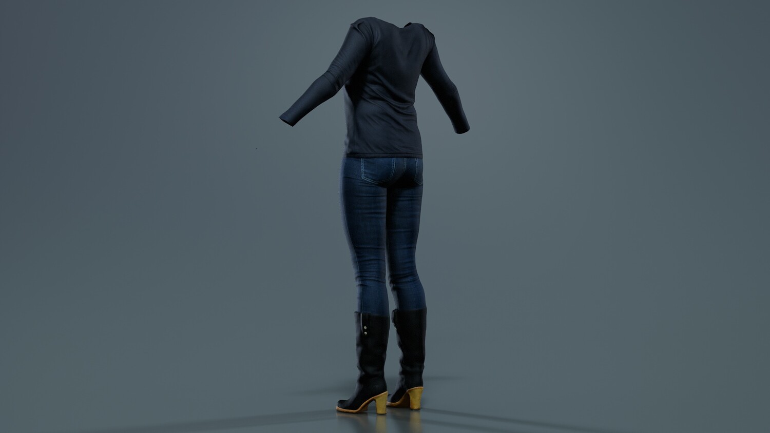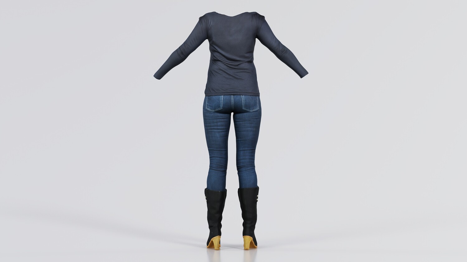 Model Tags: apparel, arms, body, boots, casual, character, clothes, clothing, collection, designer, digitized, female, full, girl, human, jeans, lady, outfit, standing, woman