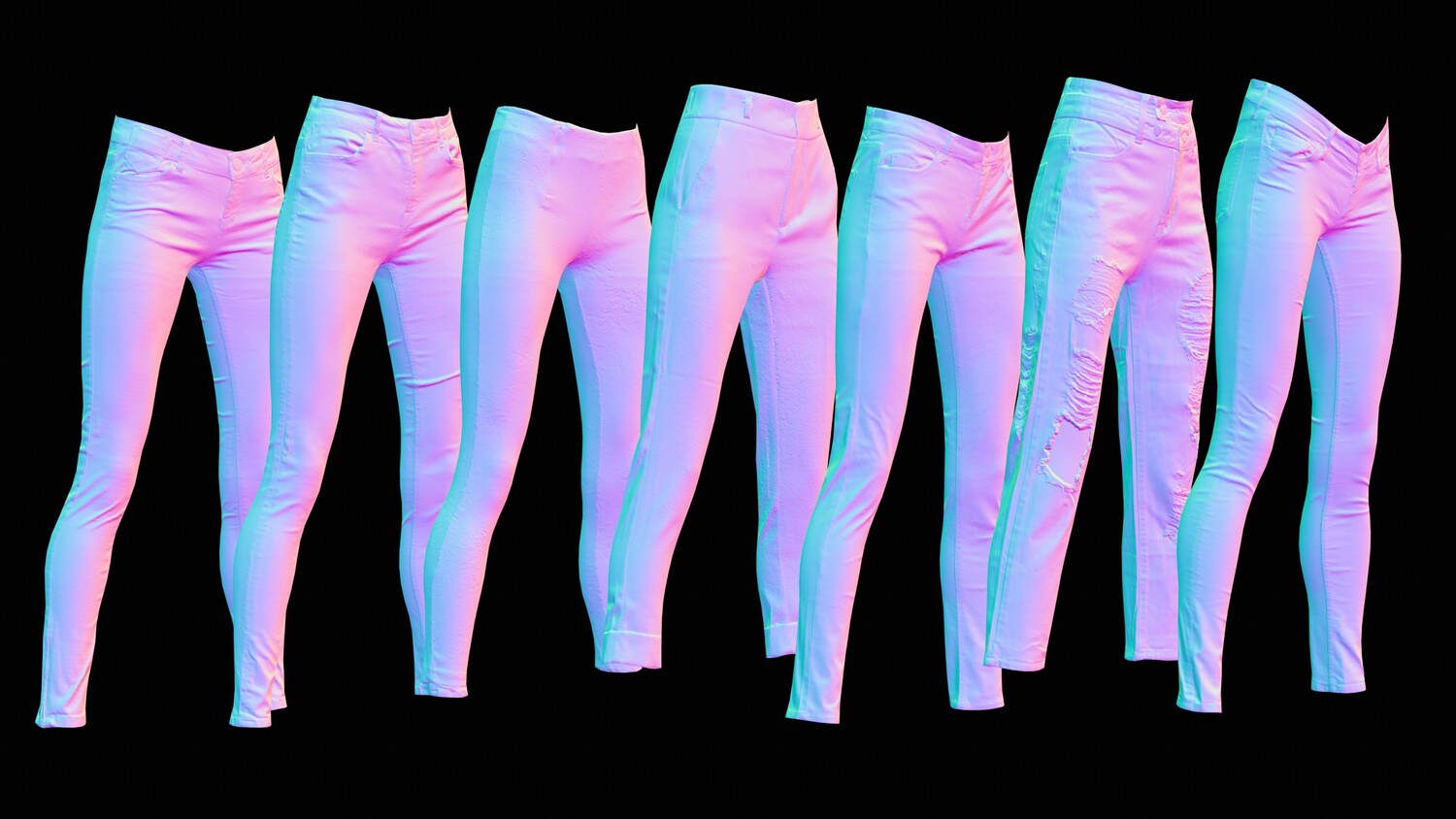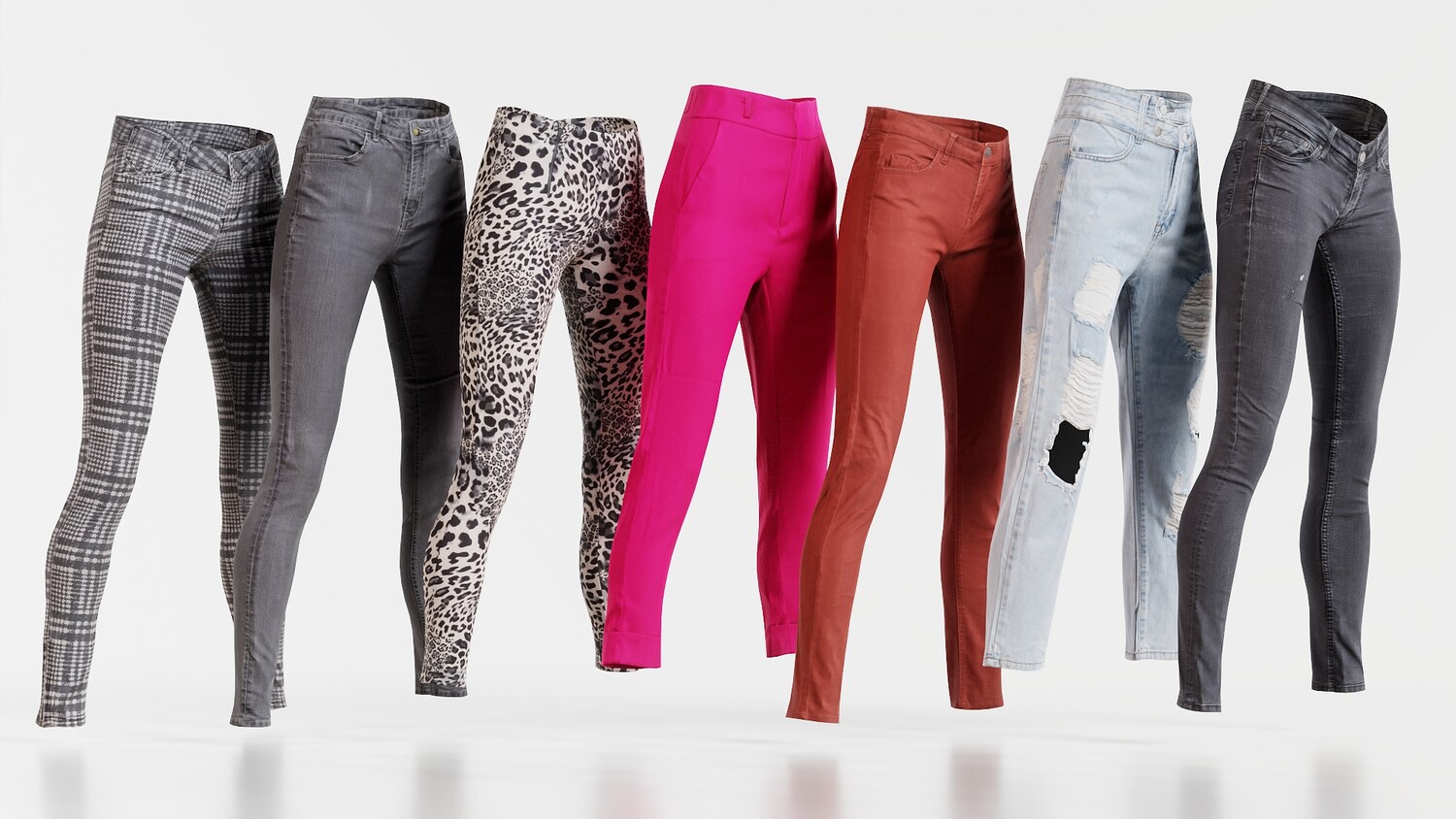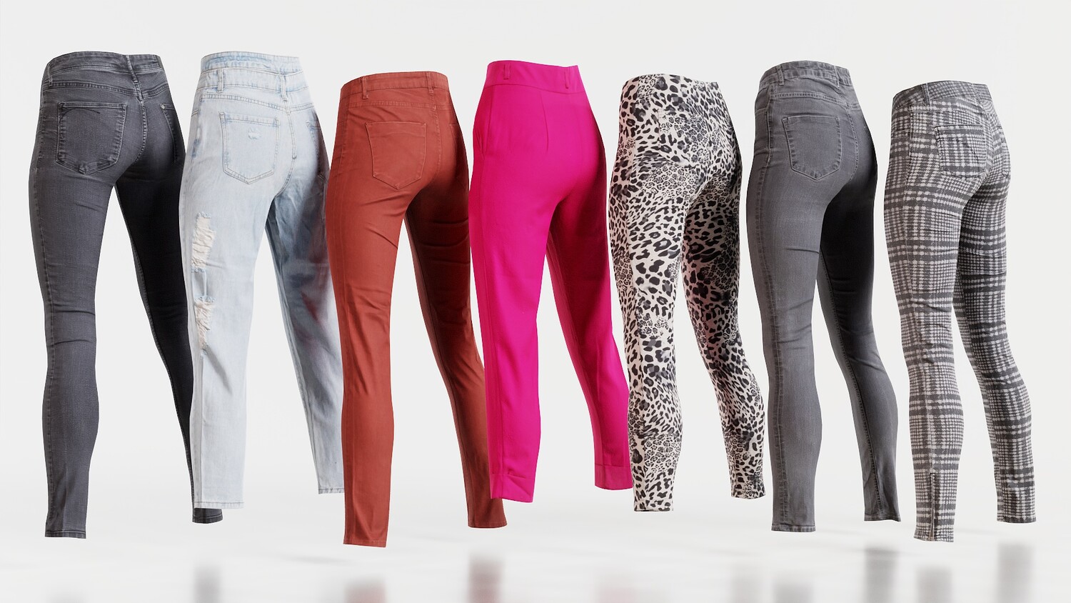 7 Realistic 3D Scanned Pants, various Brands: