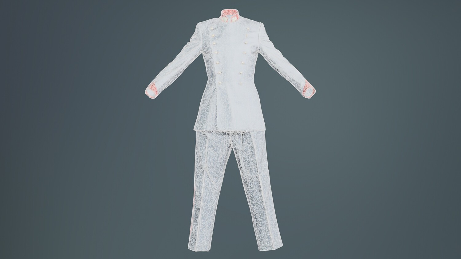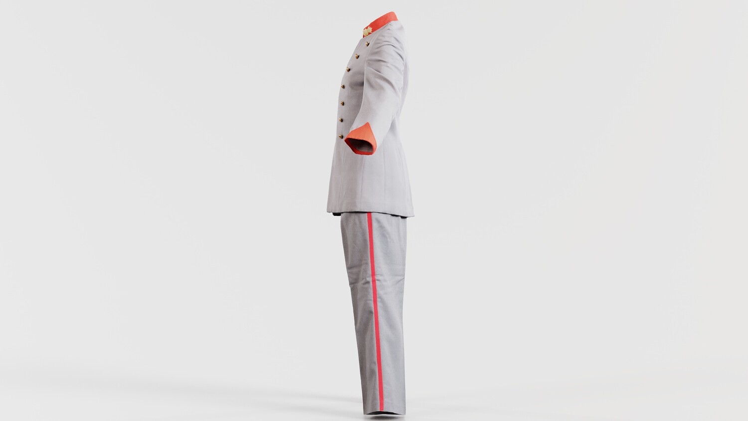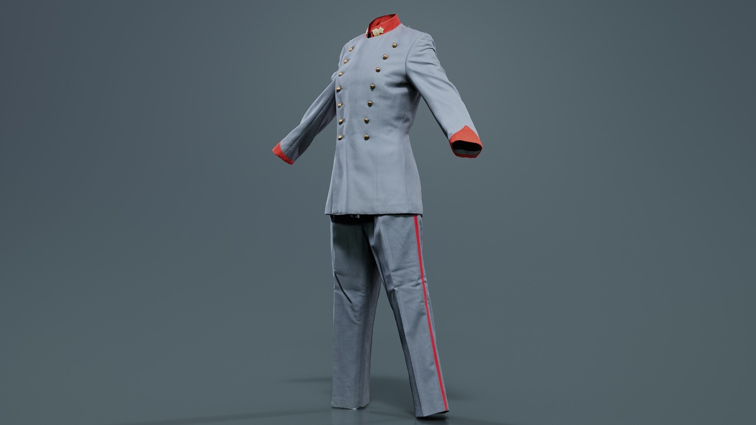 3D scanned model featuring a uniform. This model, conductor uniform, has been created using photogrammetry from a real world object. The raw scan data has been cleaned, retopologized and UV-unwrapped using Zbrush. The result is a low poly mesh with baked maps. The .obj and .mtl are configured so that maps will load automatically in the shader (tested in Blender). In addition, a Blender scene is provided with the model and shader already set up for rendering and export. Detailed information below: