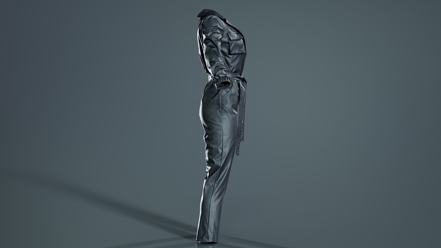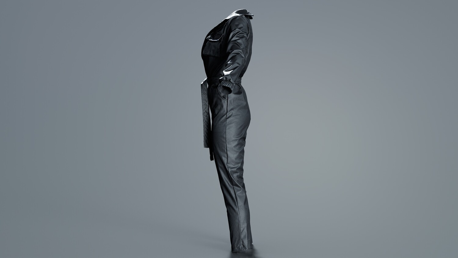 Model Tags: apparel, belt, black, body, character, clothes, clothing, designer, digitized, female, full, girl, human, jumpsuit, lady, leather, miniature, outfit, photogrammetry, woman