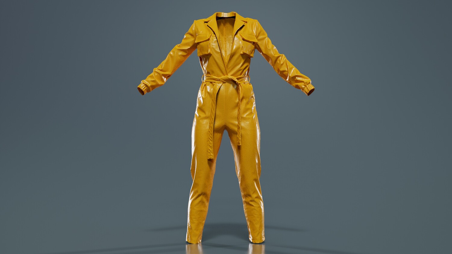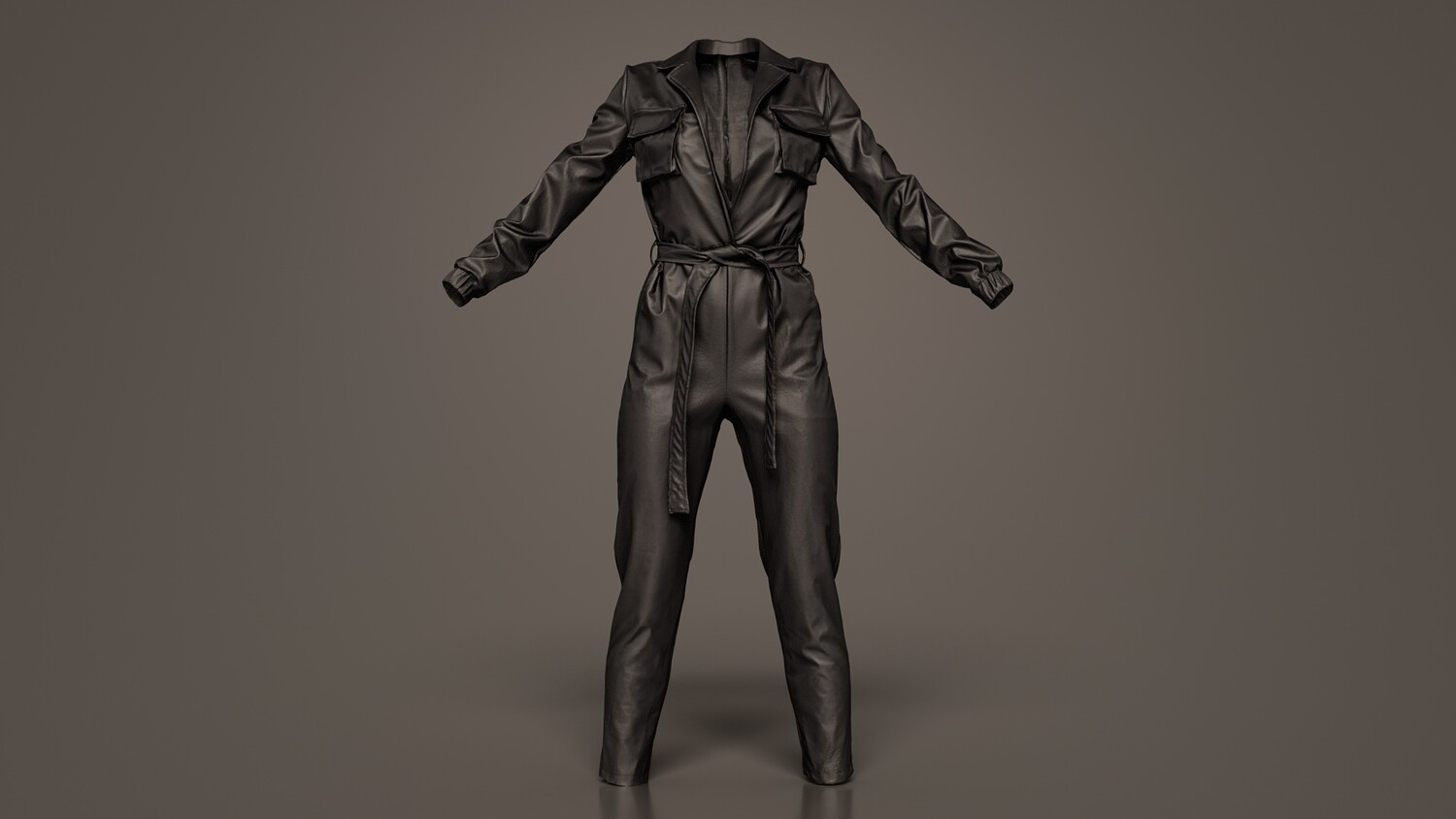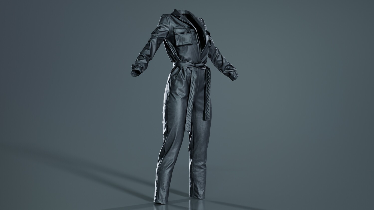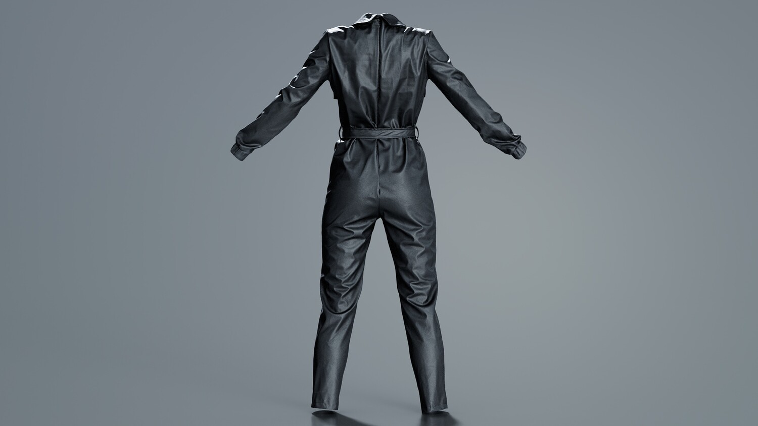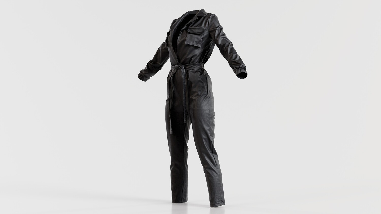 3D scanned model featuring a black jumpsuit with a belt. This model, leather jumpsuit, has been created using photogrammetry from a real world object. The raw scan data has been cleaned, retopologized and UV-unwrapped using Zbrush. The result is a low poly mesh with baked maps. The .obj and .mtl are configured so that maps will load automatically in the shader (tested in Blender). In addition, a Blender scene is provided with the model and shader already set up for rendering and export. Detailed information below: