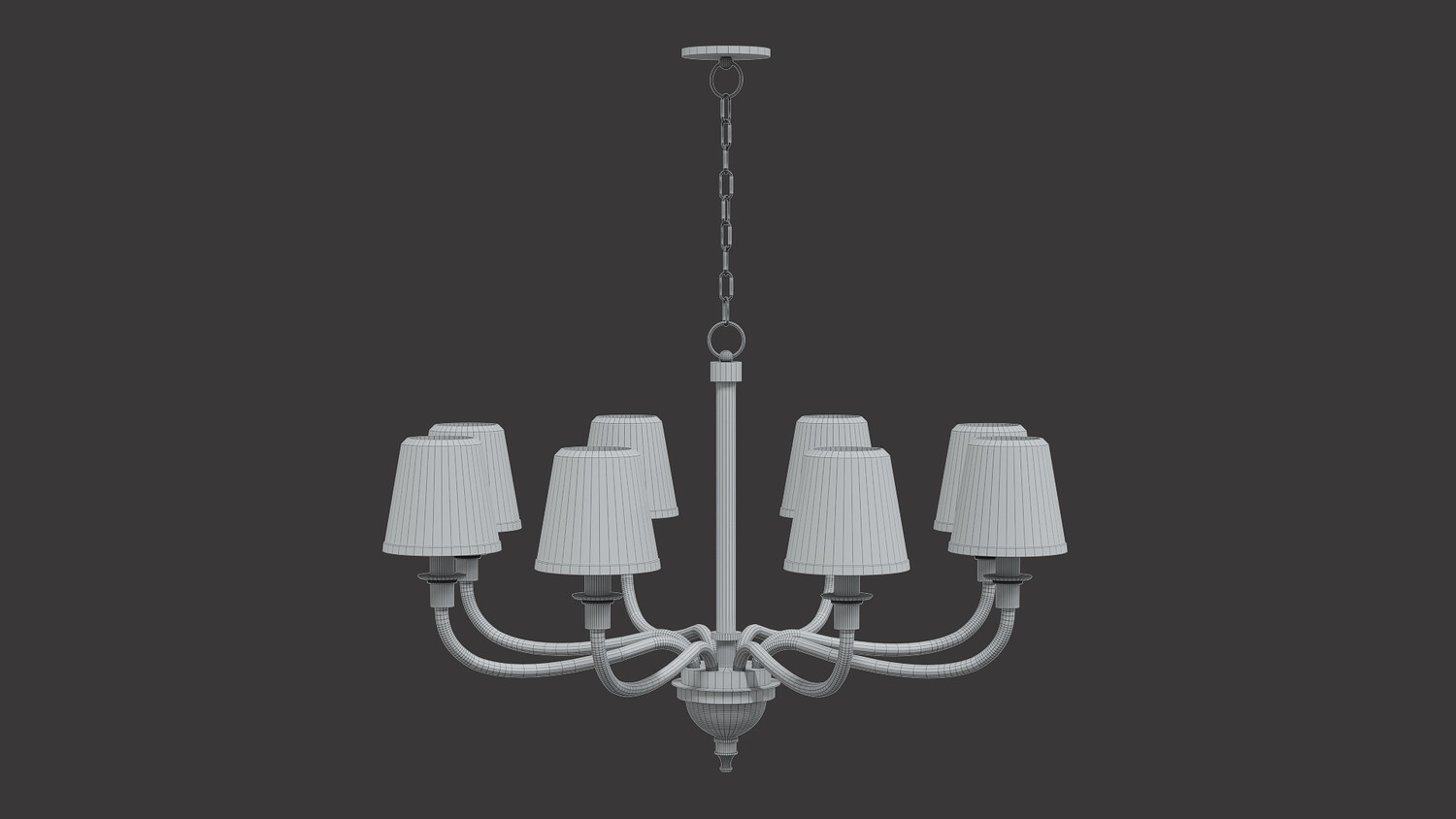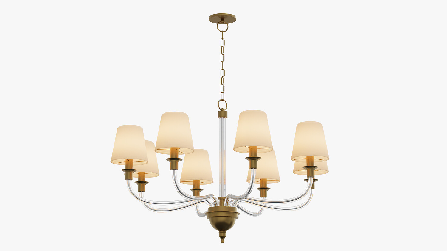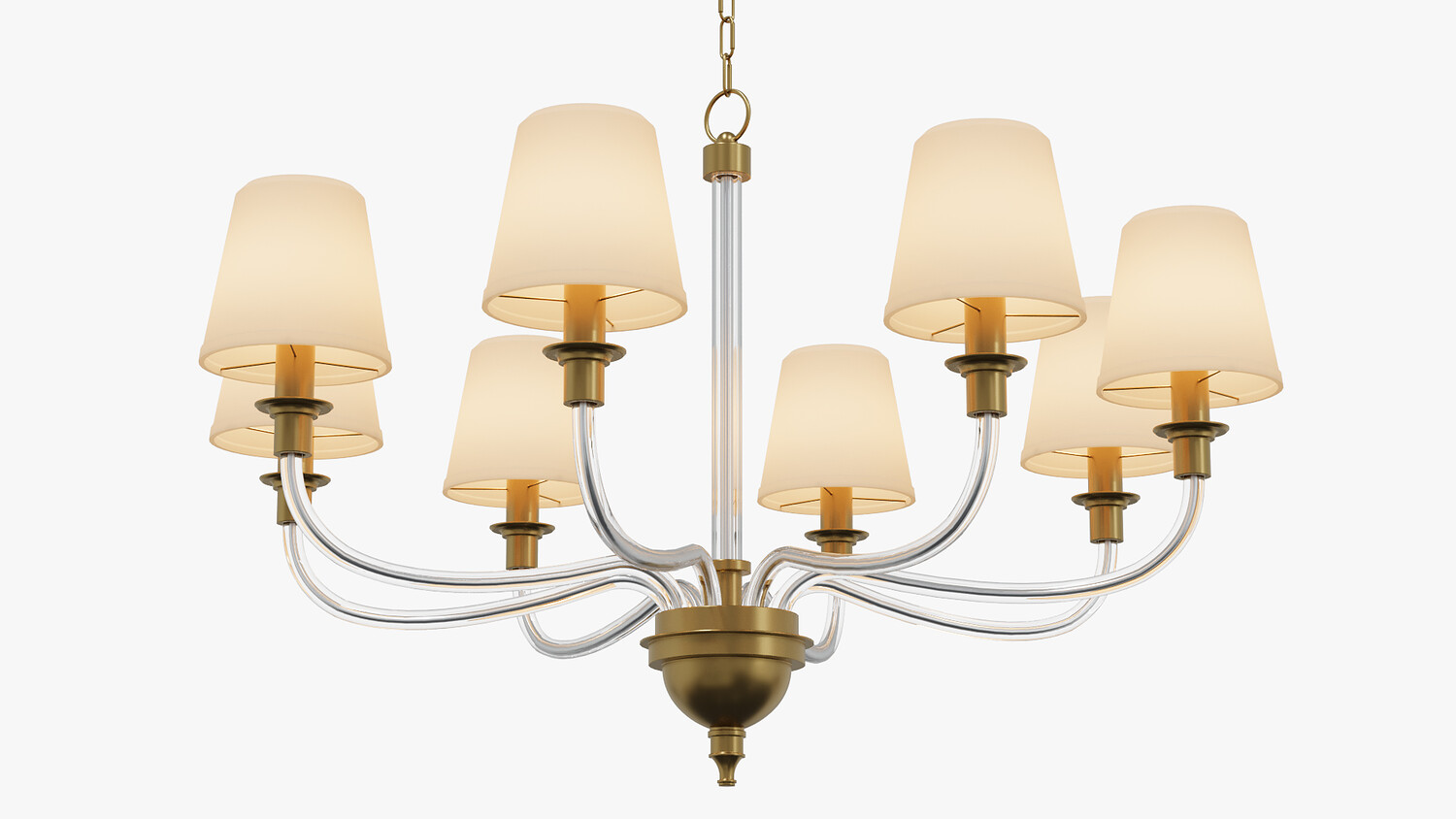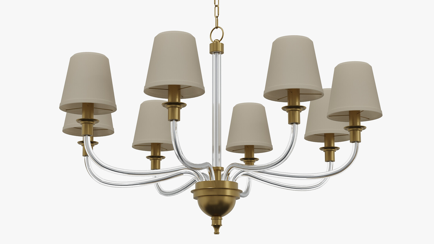 Ceiling chandelier with 8 lampshades. Perfect for interior visualization of living room, dining room or hall.