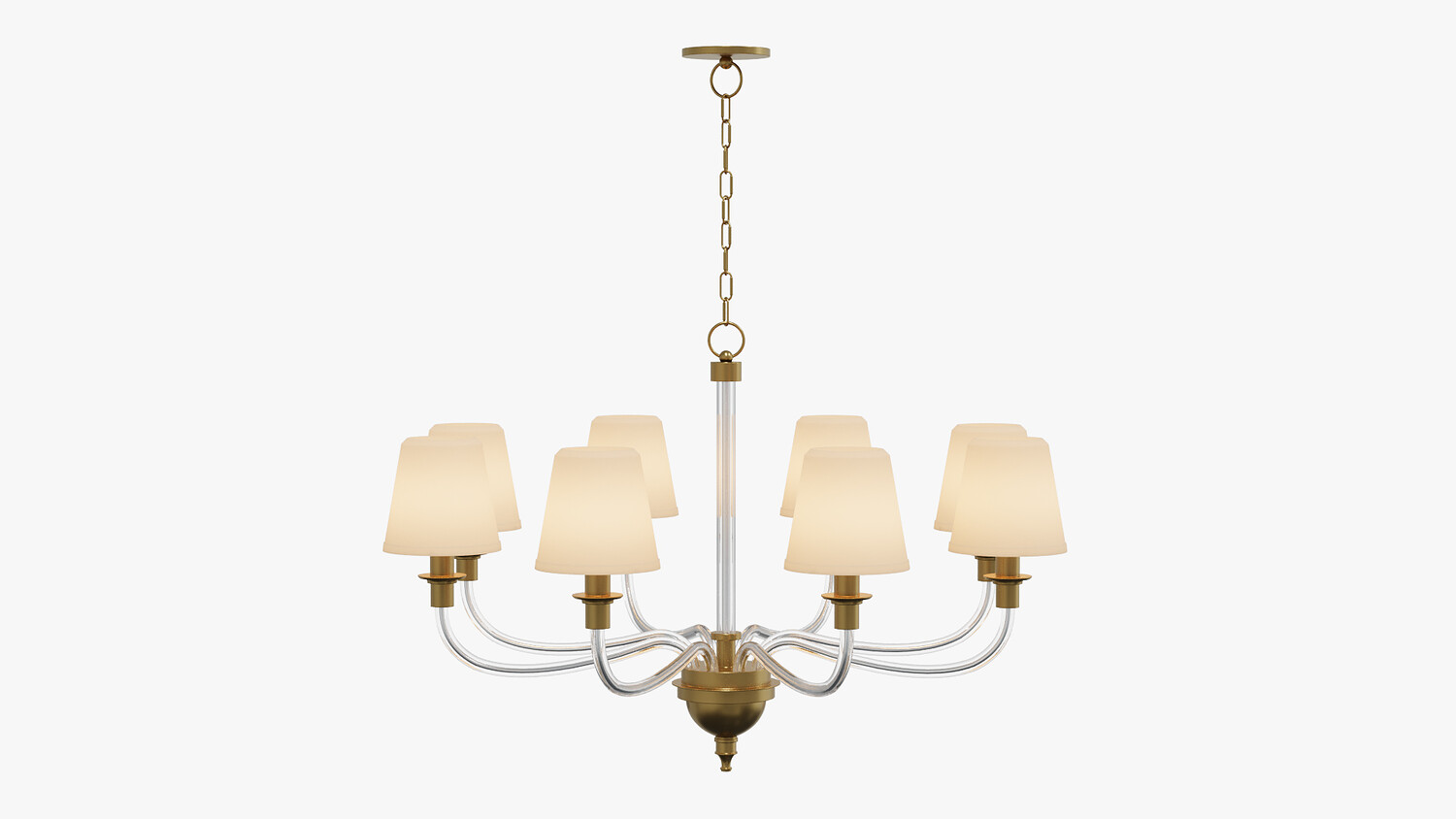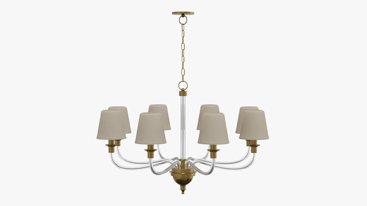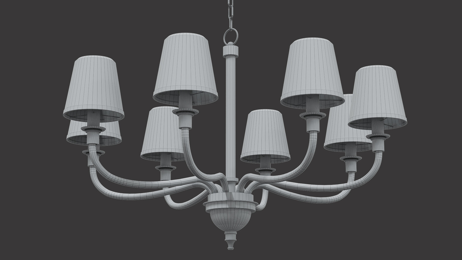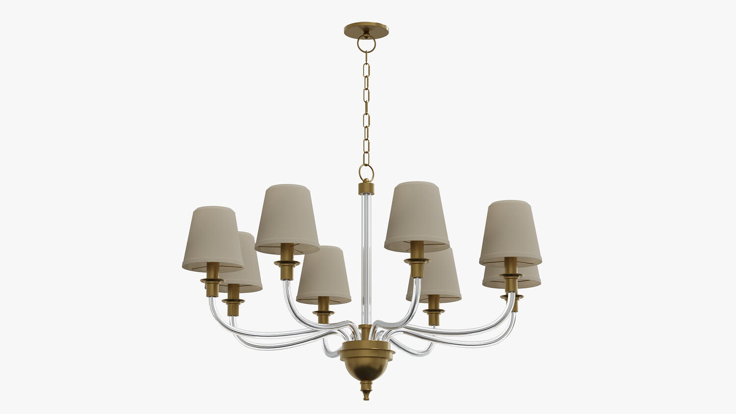 Ceiling chandelier with 8 lampshades. Perfect for interior visualization of living room, dining room or hall.