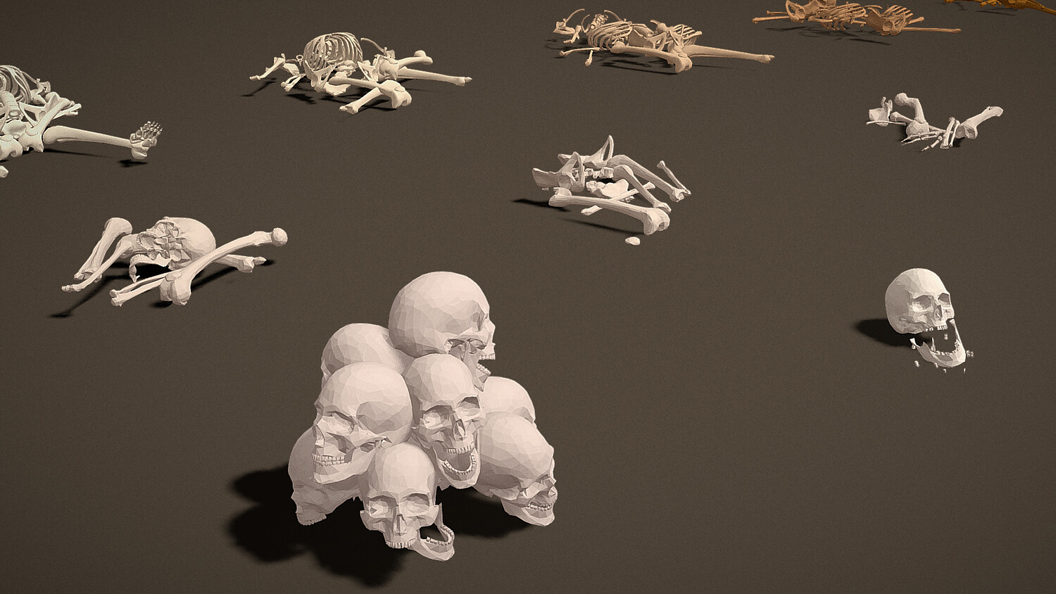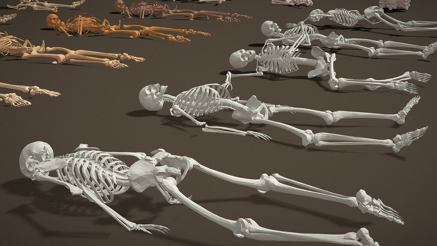 Introducing the "Remains of the Human Bones" Collection – Minimalist Low-Poly Style". Discover a unique 3D model pack in a minimalist low-poly style, designed to optimize productivity and save time while maintaining impressive detail. This collection is the perfect addition to elevate your project, adding a realistic and mysterious touch.