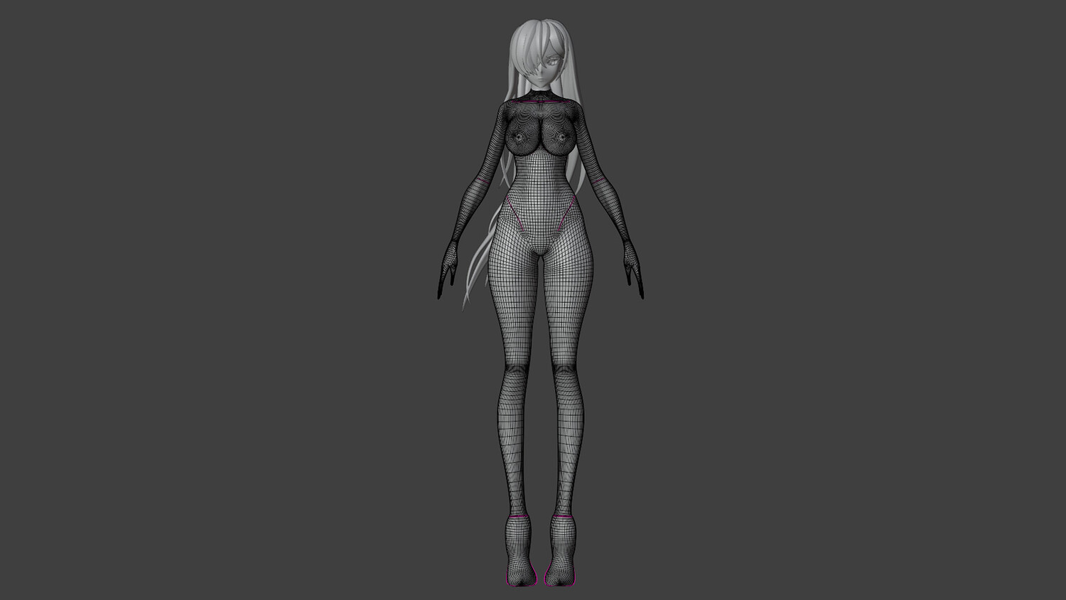 Anime Girl Base Mesh – Stylized Female Character (Blender/FBX/OBJ)