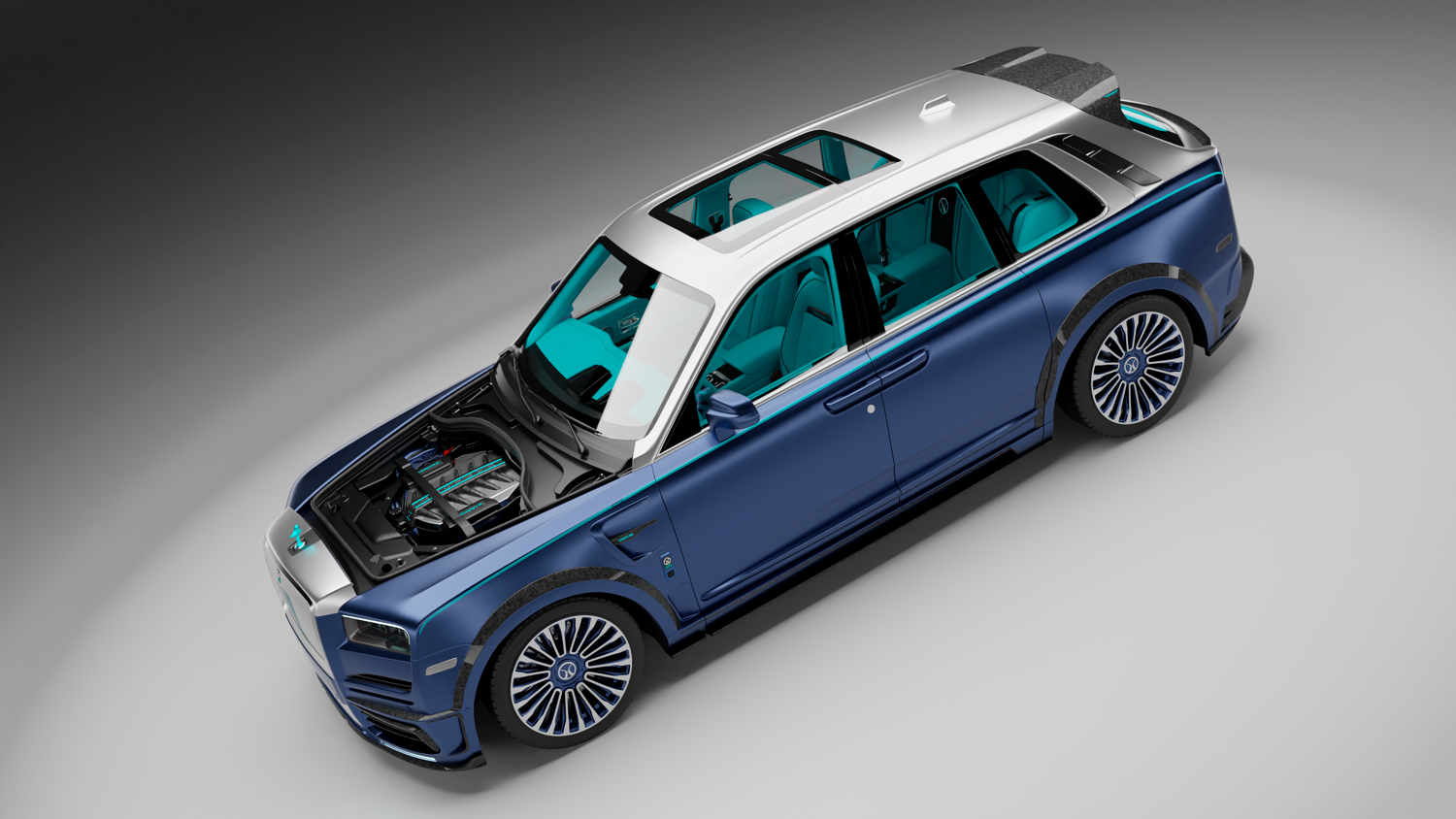 This ready project contains fully customizable Rolls-Royce Cullinan Mansory Coastline. Detailed and optimized car. This is a ready car for custom use and renders. The project file is in .Blend format. If you have any questions, please contact me (my instagram @pryanex). The car has no copyright issues and can be used for Commercial Use. Supports all versions of Blender