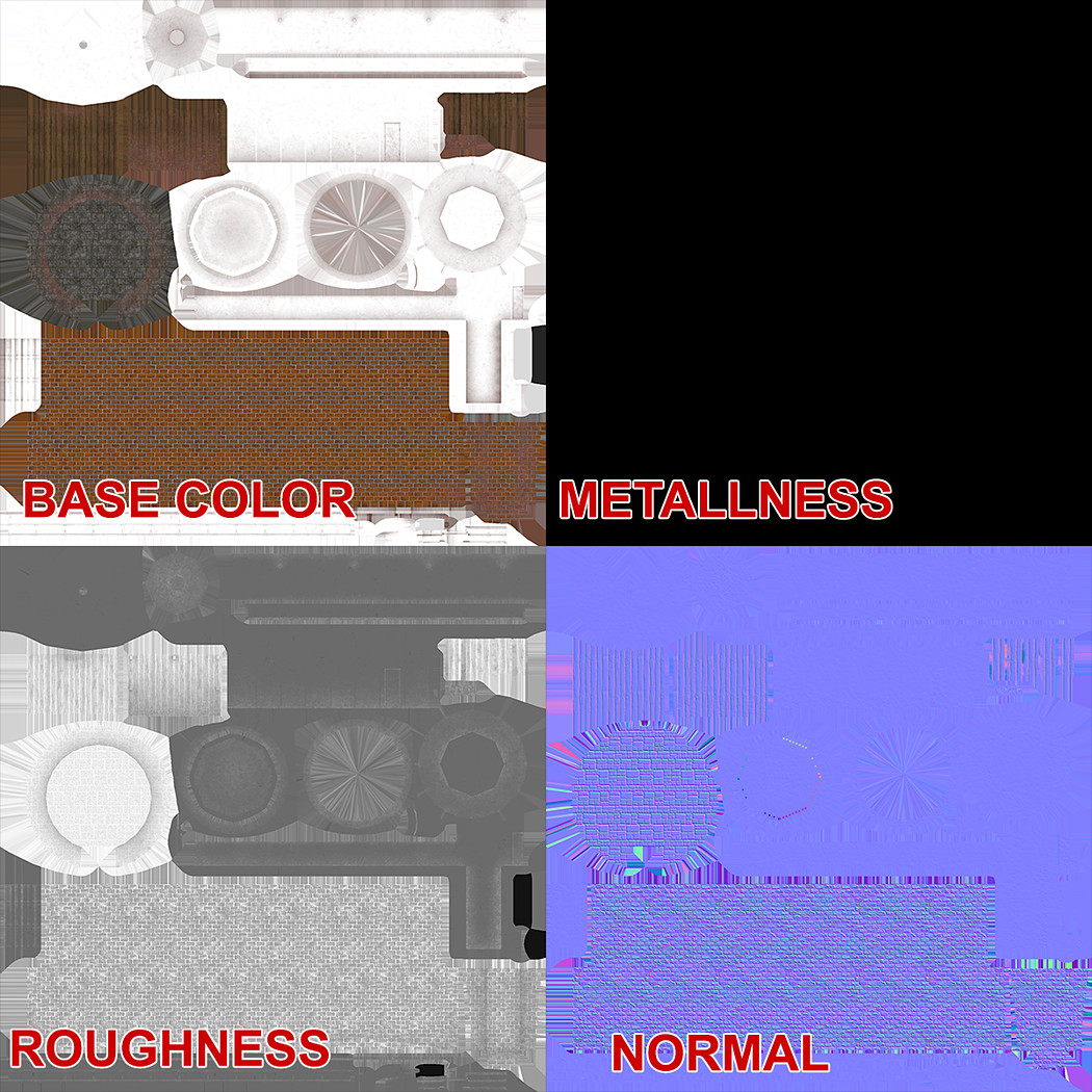 PBR textures are available for Specular-Glossiness and Metalness-Roughness workflows