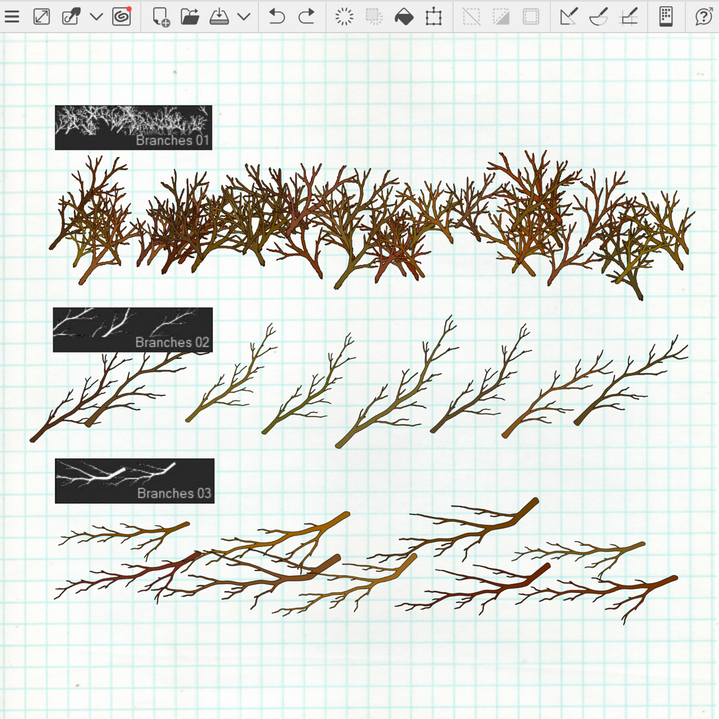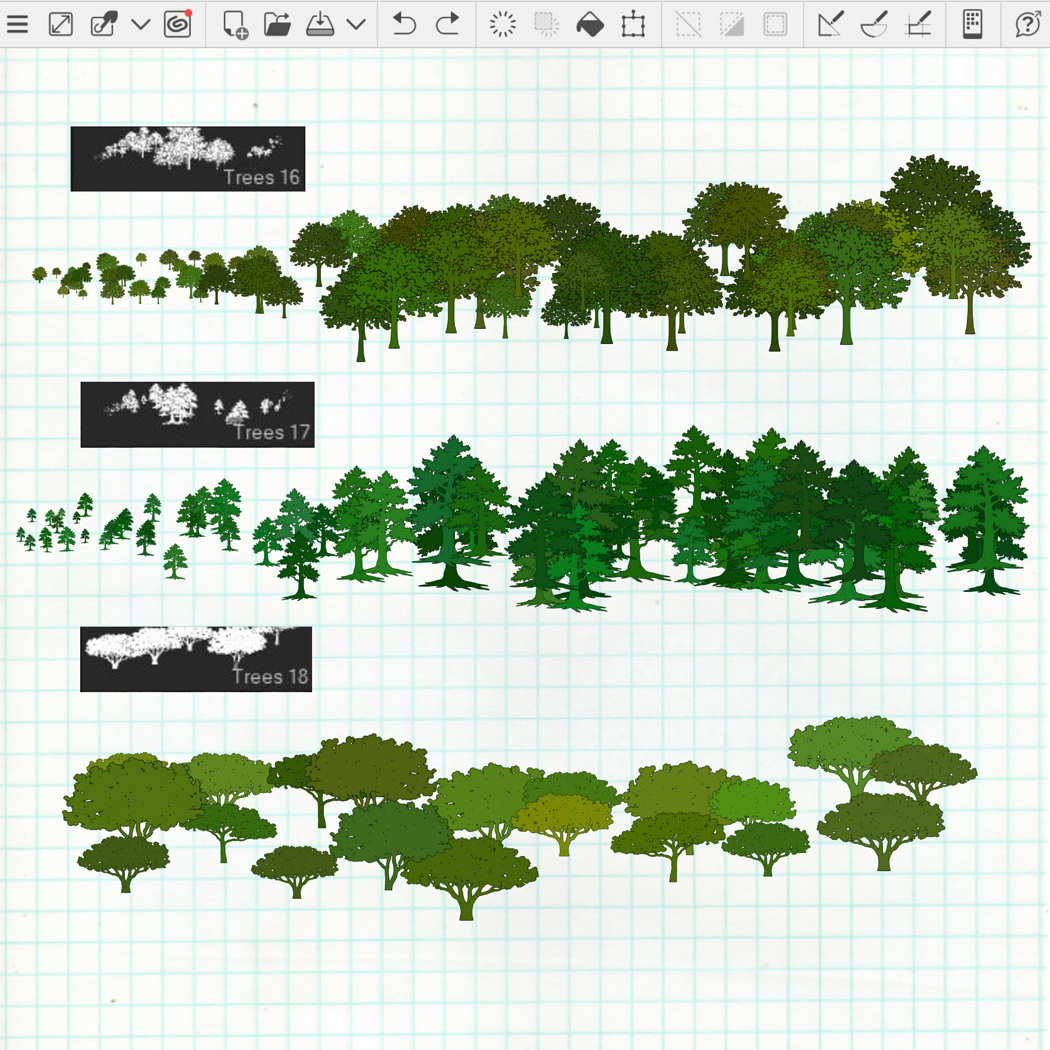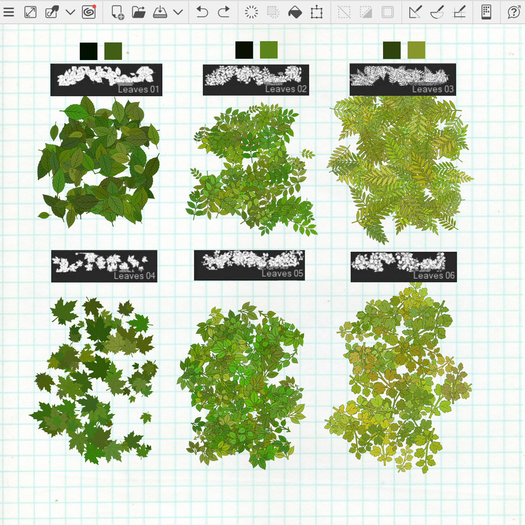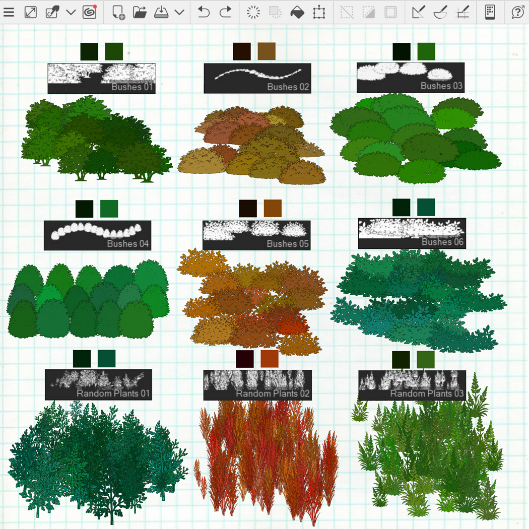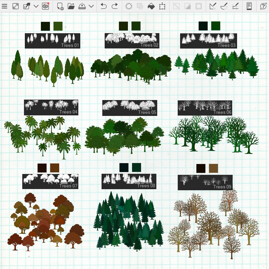 71 Outline Forest Brushes for Clip Studio Paint: Trees, Plants, Leaves, Rocks, Branches, Foliage