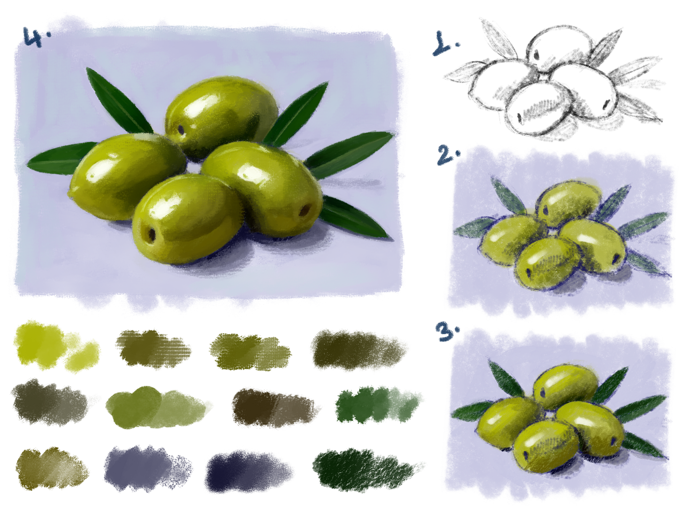-8 Oil Brushes, -4 Pastel Brushes, -3 Digital Brushes, -2 Acrylic Brushes, -2 Sponge Brushes, -2 Watercolor Brushes, -1 Marker, -1 Chalk.
