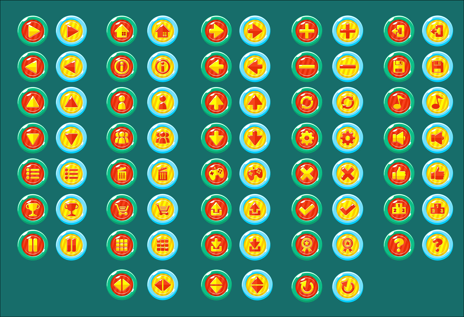 Features - 40+ game UI buttons - 2 color variants - Clean and friendly design - 100% vector (fully scalable and editable) - Easy to customize for any game project