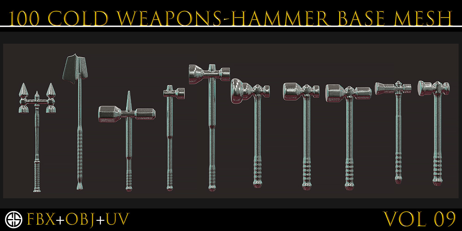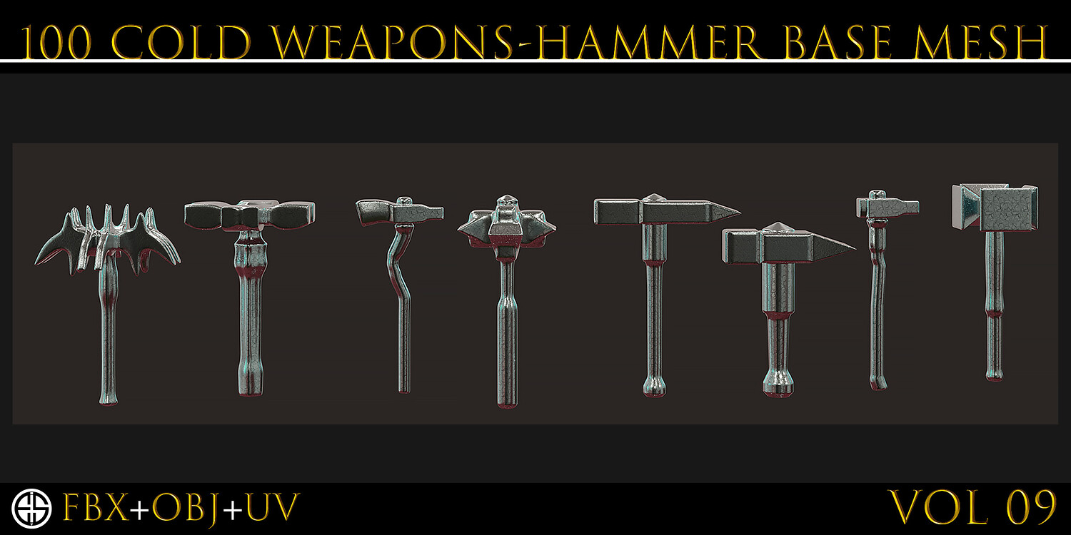100 Models Of Weapons - Cold Weapons-Hammer Weapons - Game Ready Model-Low Poly Model-Vol 09