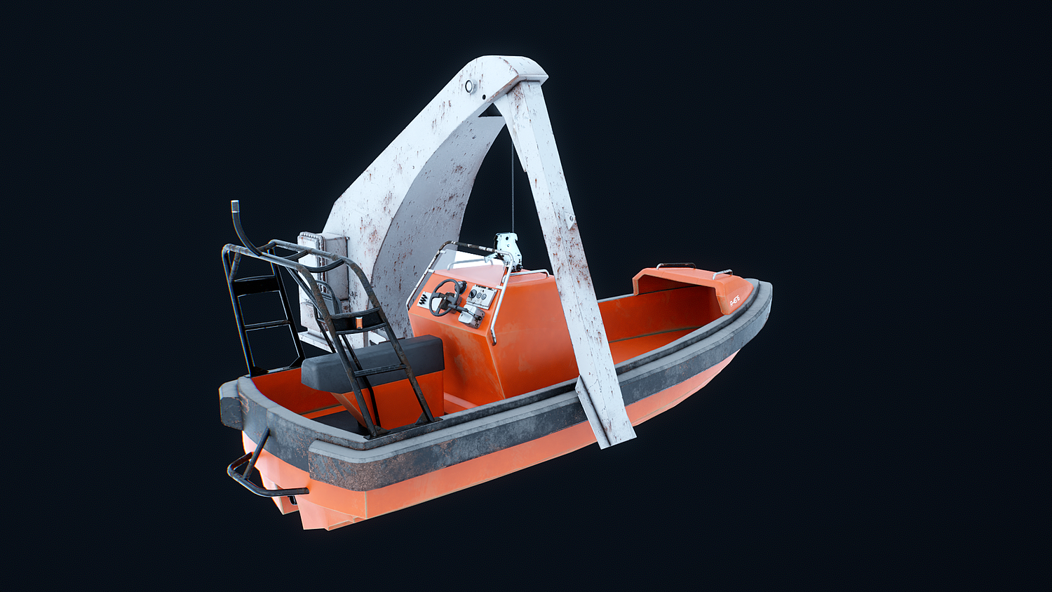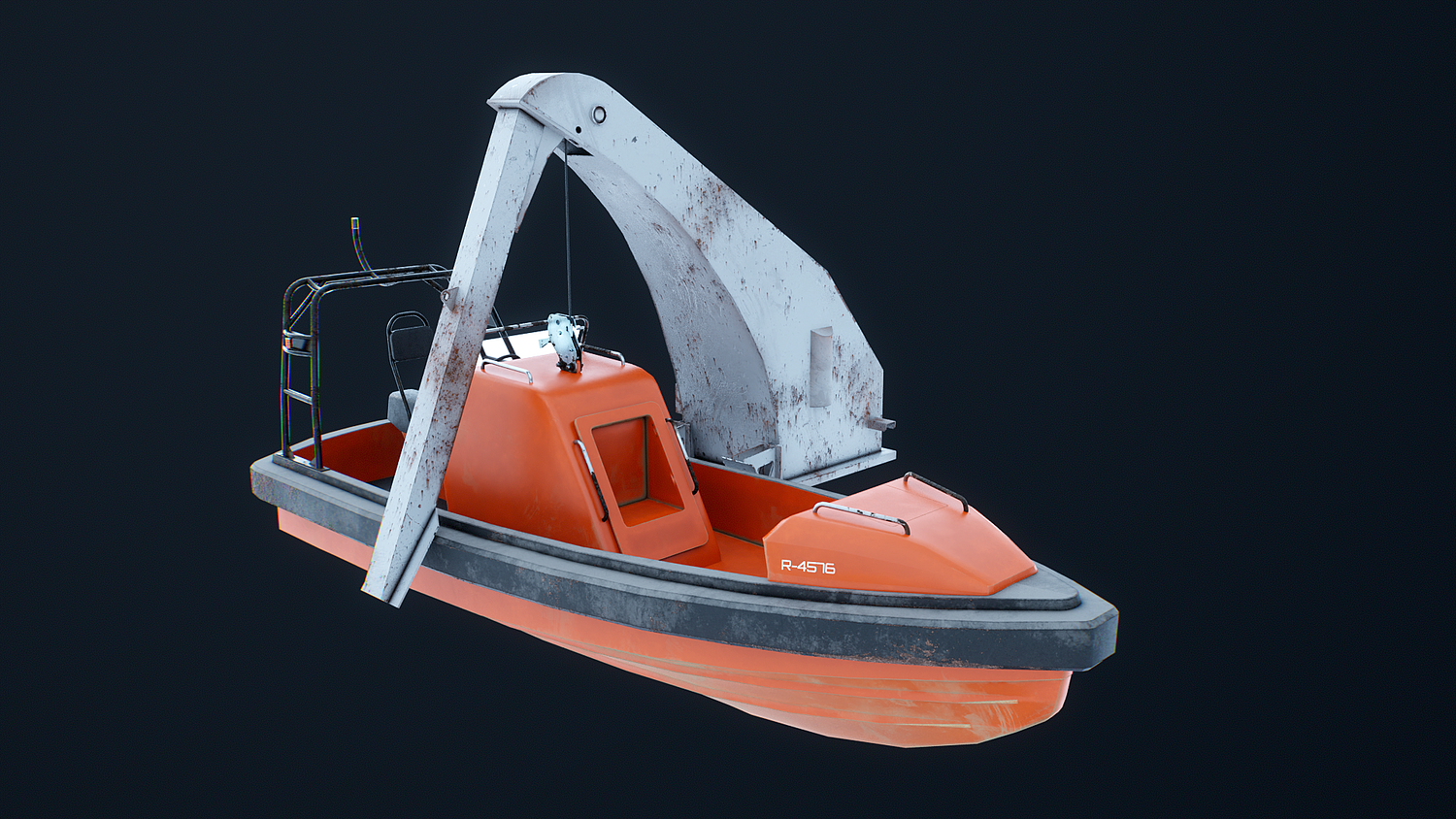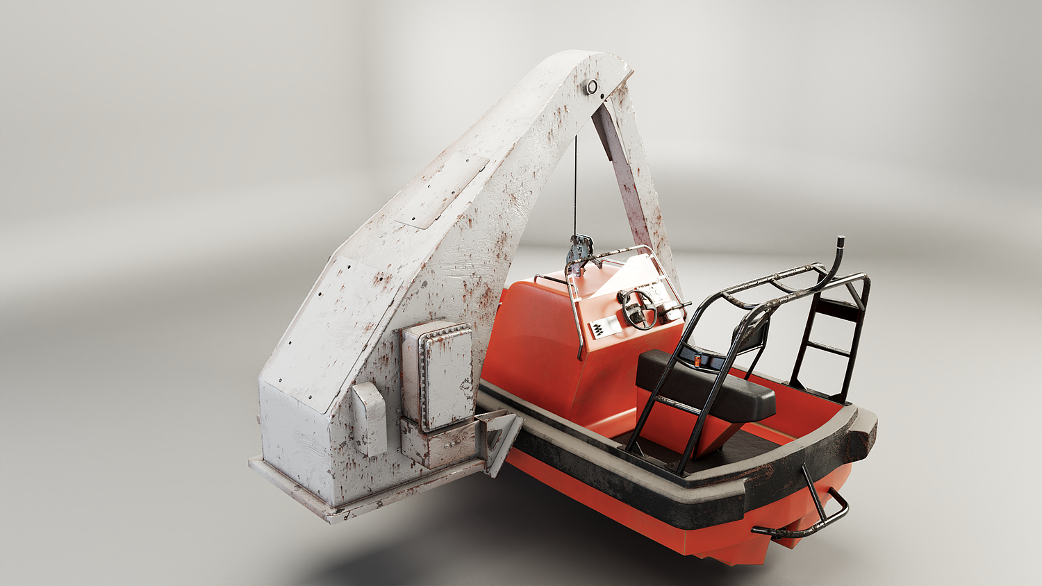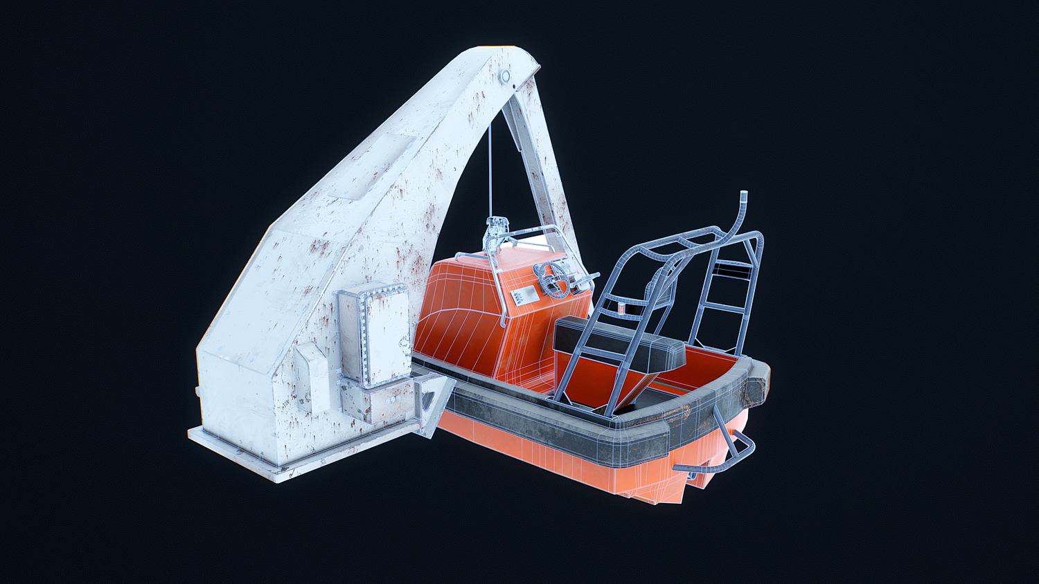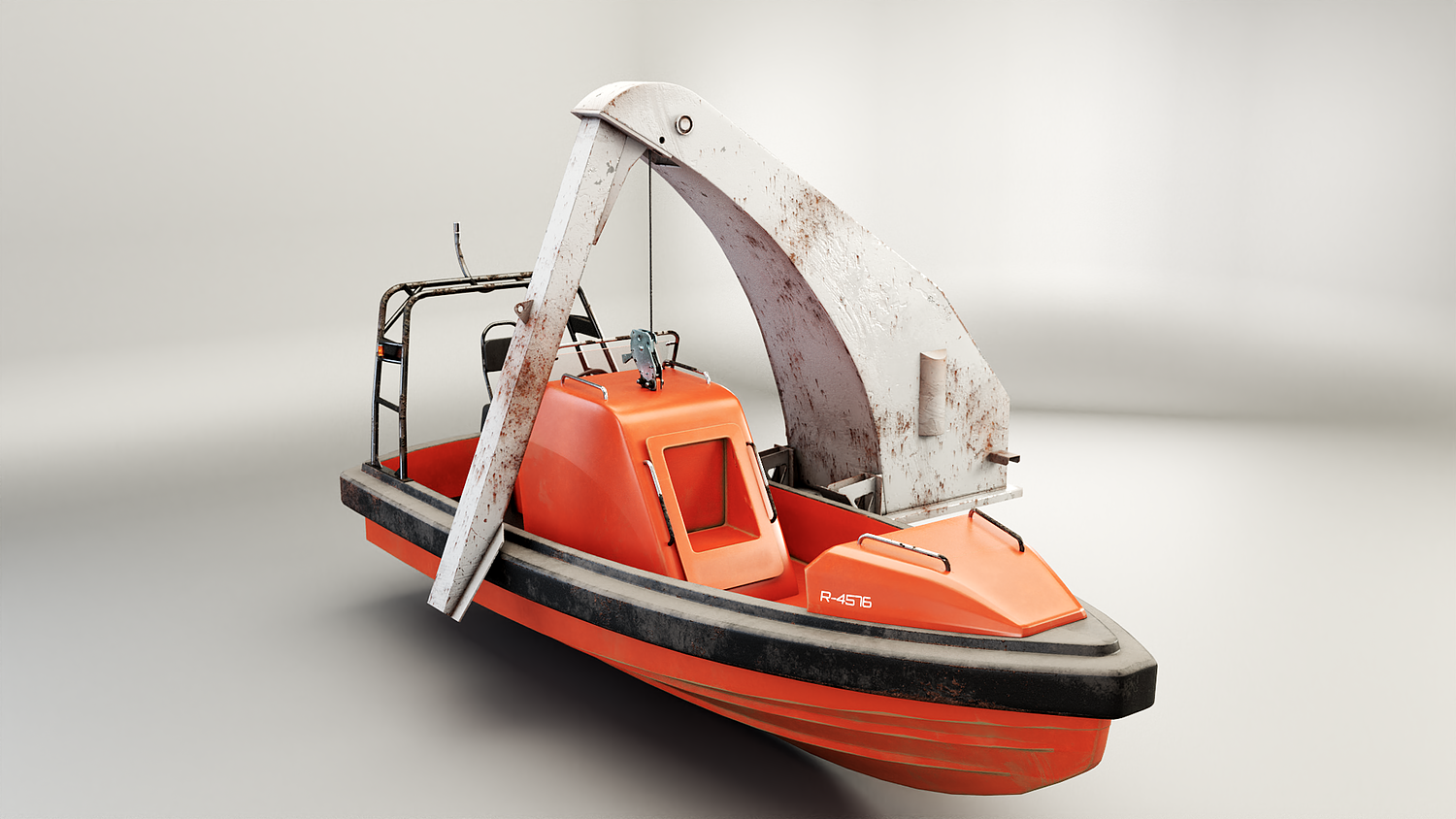 Rescue Boat with Davit Crane Used and Rusted