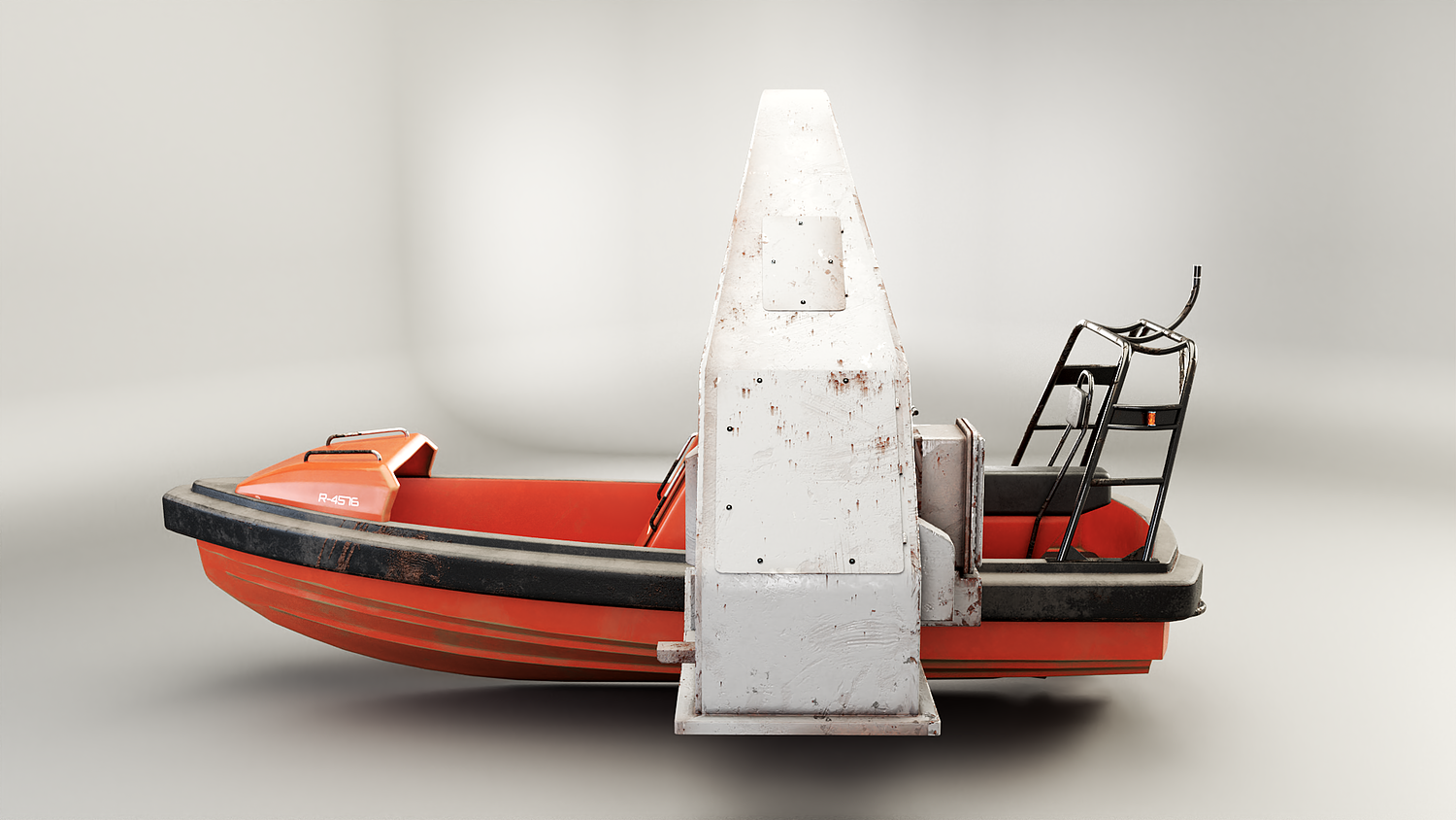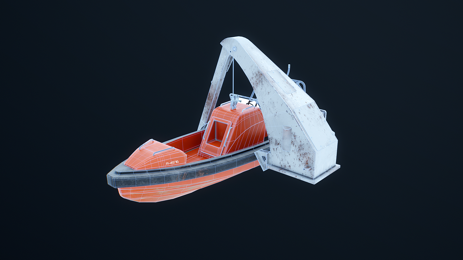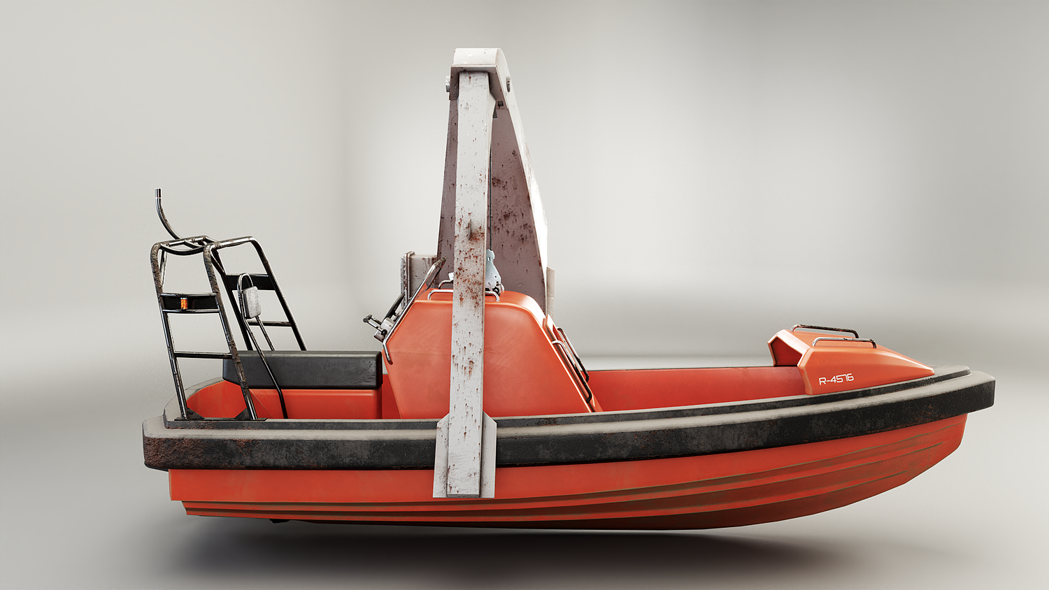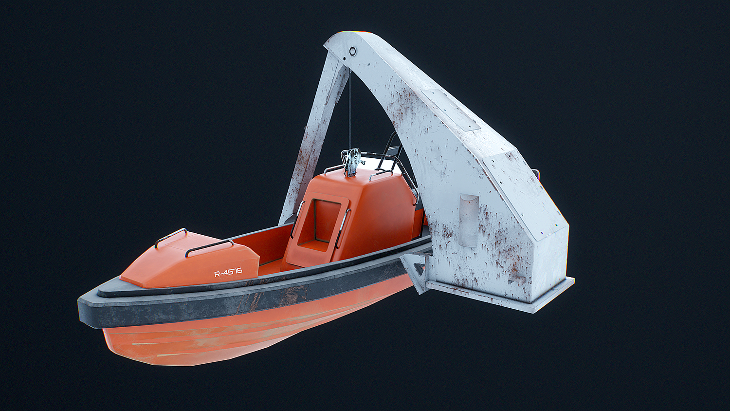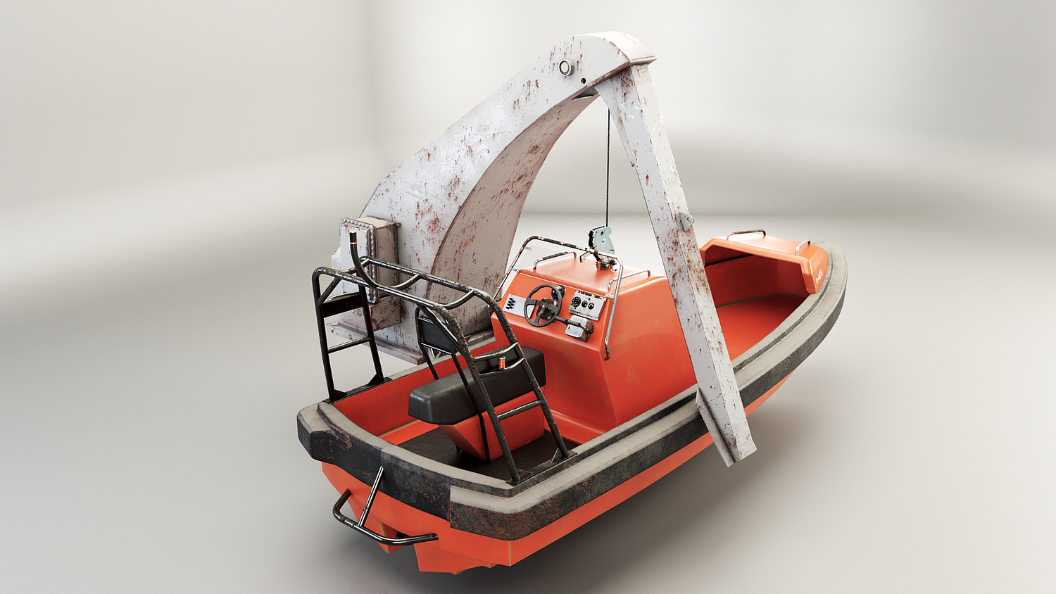 Rescue Boat with Davit Crane Used and Rusted
