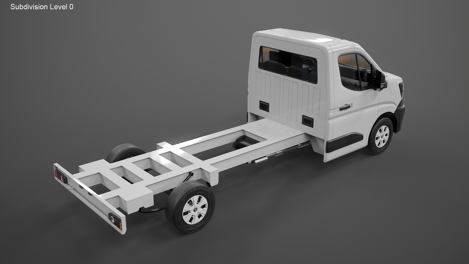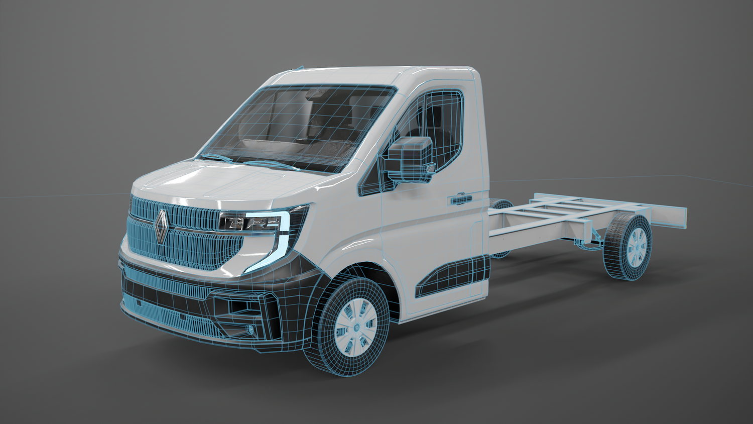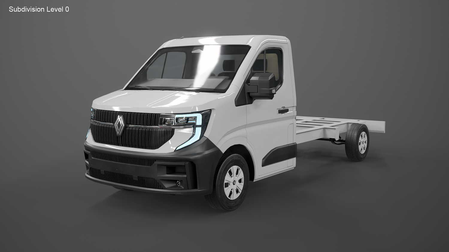 High-quality Renault Master 2025 chassis cab 3D model with PBR materials and clean topology. Accurate exterior with detailed lights, mirrors, and bodywork. Ideal for automotive visualization, rendering, or game use. Includes non-overlapping UVs and realistic textures for metal, plastic, and glass. Scaled to real-world dimensions.